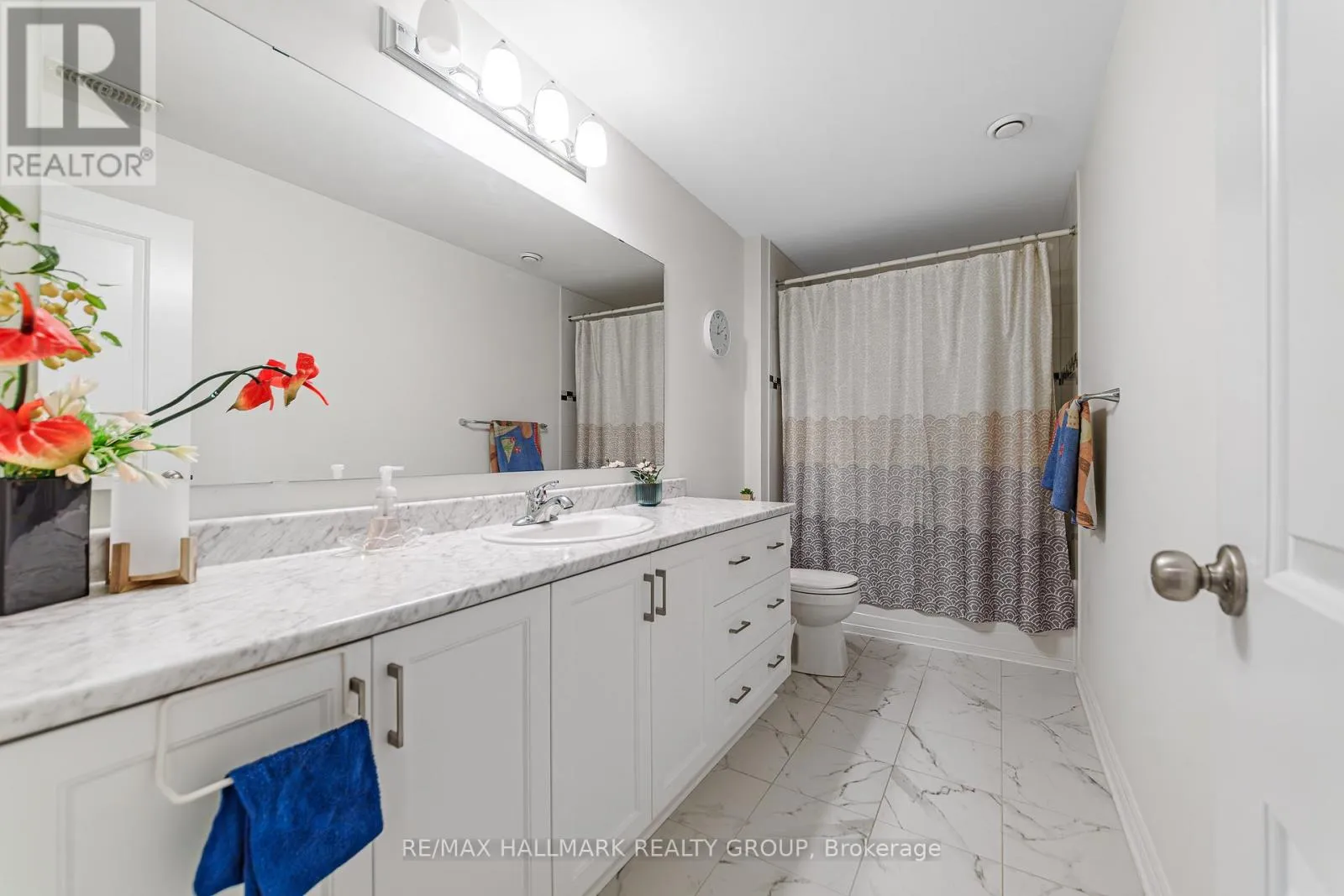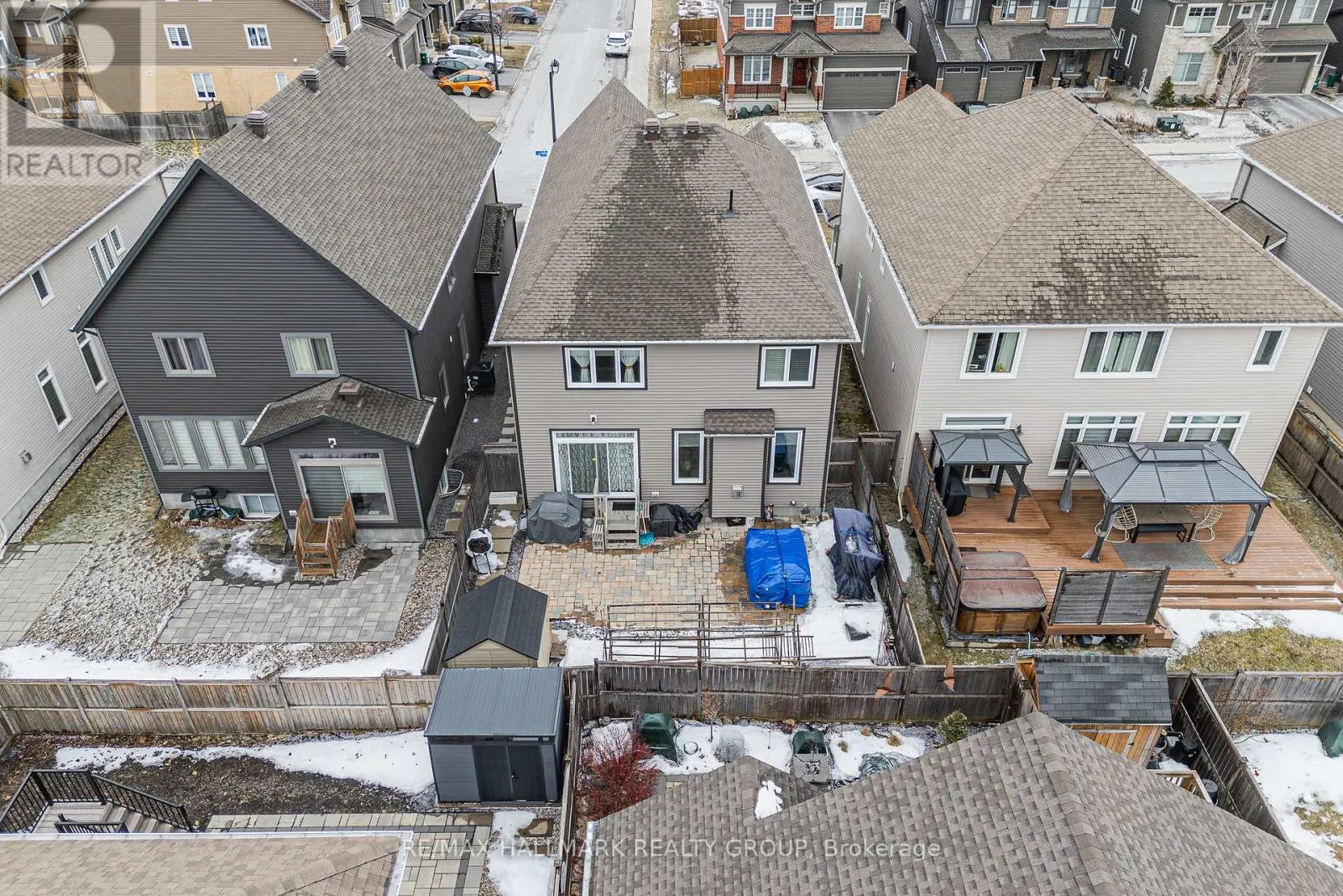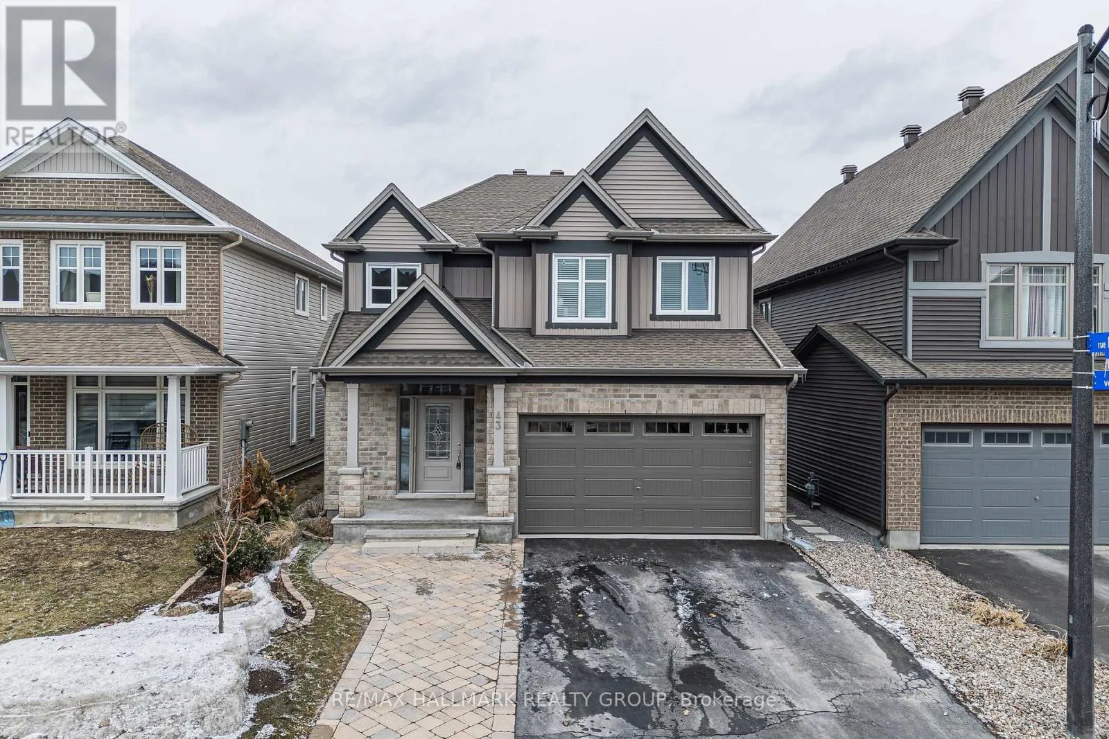Cross Streets: Warmstone. ** Directions: Palladium to Huntmar Dr, Right on Maple Grove, Left on Warmstone, Right on Cento. Beautiful Tartan, Westport Model family home in the heart of Poole Creek Village, neighbourhood of Stittsville. This stunning 4 plus bedroom home is in turnkey condition boasting ample upgrades throughout the 3200 square feet. Bright & spacious, classic & neutral finishes have been selected such as hardwood flooring on main floor, white shaker cabinets along with white subway tiles, light & airy quartz countertops in the kitchen and plush Berber carpeting throughout upper level. The large gourmet kitchen is perfect for meeting the demands of daily life as well as entertaining, seating up to 5 people at the island. Plus features convenient open concept living while being connected to the living room. Dining room is separate which provides a cozy and private space for family dinners or celebrations. Upstairs level features 2 ensuite bathrooms plus 1 main bathroom along with a dedicated laundry room which is currently being used as a bedroom. Primary bedroom is a large sanctuary retreat featuring a spa-like ensuite bathroom with double sinks, ample storage space and room to lounge between the shower and soaker tub. The basement serves a gym, rec room, bedroom space along with a full bathroom. Lends itself to being the perfect guest suite or in-law suite with full privacy. Exterior has an upgraded portion of driveway with patio paver stone which also extends throughout the whole backyard. Low maintenance summer retreat space! Close to 417, schools & amenities! (id:27476)