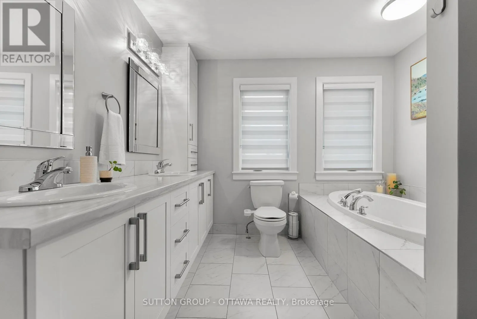 Greenbank South of Strandherd: Cross Bridge. Straight Through Round-About. Past Fire Hall. 1st Right on Egret. Welcome to 571 Egret Way, a beautifully upgraded luxurious 5-bedroom (4+1), 4-bathroom detached family home located in the desirable Half Moon Bay community of Barrhaven.This thoughtfully designed home offers spacious and elegant living spaces ideal for modern family life and entertaining. The main level features a bright open-concept layout anchored by a stunning chef-inspired kitchen with an oversized island, quality cabinetry, and stainless steel appliances, seamlessly connected to the expansive family room with gas fireplace. A formal dining room provides the perfect setting for hosting family gatherings and special occasions, while a dedicated main-floor home office offers an ideal space for working from home.The second level features four well-appointed bedrooms, including the impressive primary suite with walk-in closet and a luxurious 5-piece en-suite. A full bathroom and convenient second-floor laundry room complete this level. The professionally designed and finished basement with 9-foot ceilings adds exceptional living space and includes a fifth bedroom, full 4-piece bathroom, a spacious media room, and a recreation area currently used as a home gym, offering excellent flexibility for family living or guests.With approximately $200,000 in upgrades throughout the home, this beautifully maintained property offers both style and functionality in one of Barrhaven's most sought-after neighbourhoods. Conveniently located near parks, schools, shopping, restaurants, and transit, this home provides the perfect balance of comfort, space, and community living. ***Basement was professionally finished in 2024 for approximately $65,000. ***Please view video for virtual tour.**** (id:27476)