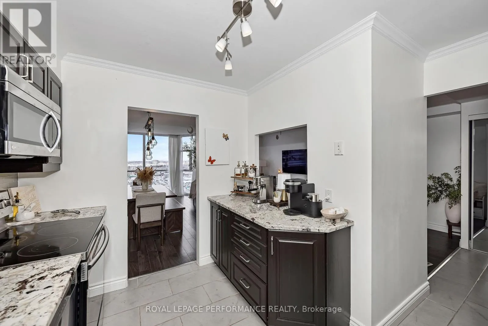 Cross Streets: Bank Street and Albion Road. ** Directions: Bank Street, right onto Albion Road, right onto Briddle Path Dr and then right on Carousel Crescent. Amazing Location! This beautiful and spacious 2 bed, 2 bath unit is move in ready!! The Atrium 1 is located in a quiet, mature neighbourhood close to transit, shopping and easy access to the airport. Renovated kitchen with ample cupboard space, stainless appliances, granite tops and pot lighting! Panoramic windows flood the unit with natural light and offer sweeping views of the city. The large primary bedroom boasts a renovated 3pc ensuite with glass shower and granite counters along with his/hers mirrored closets. Sizeable 2nd bedroom serviced by a 4pc, fully reno'd main bathroom, also with granite vanity. In unit laundry with new dryer. Amenities include outdoor pool, sauna, squash courts and gym. This unit also comes with a STORAGE LOCKER AND COVERED PARKING. (id:27476)