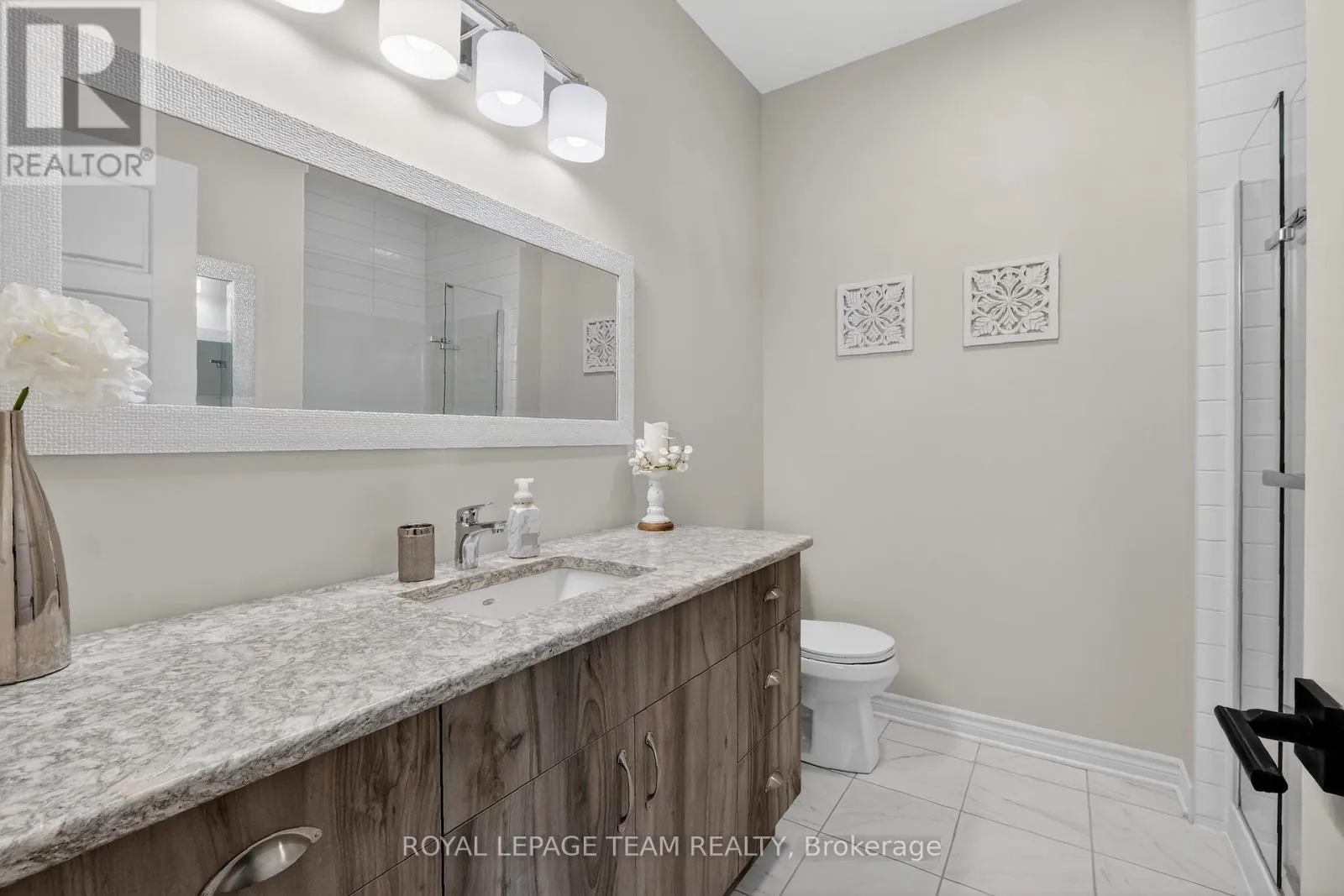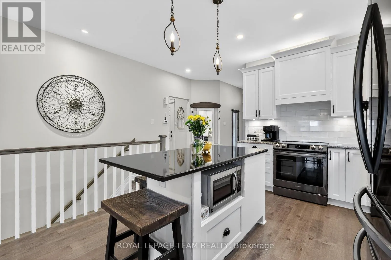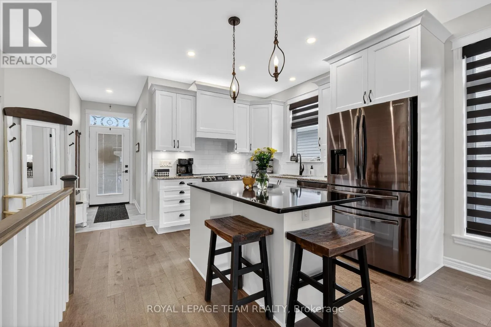 Cross Streets: Fernbank Road and Edenwylde Drive. ** Directions: South on Stittsville Main Street to Left on Fernbank Road, Right on Edenwylde Drive, Right on Maygrass Way and Right on Kayenta Street. 98 Kayenta Street. Tamarack Homes 'Dove' model. Premium end unit with 'lookout' basement and tasteful upgrades added at the time of construction. Southern exposure is flooded with natural light. Maintenance free exterior with full rear yard deck, lighting and covered gazebo. (artificial grass for puppy in side yard with access gate to fully fenced yard) Open concept main level with upgraded railing, wide plank engineered flooring, Granite kitchen counters plus Black Quartz island with pendant lighting and a breakfast bar. LED pot lighting added. Fridge has both water & ice. Living room fireplace is electric. Patio doors lead to the rear yard deck with gas BBQ connection. Main floor study located at the front door. Main level powder room. Main level laundry closet connections for stacked units. (full basement laundry room with built-in cabinetry and tile floor. Primary bedroom has engineered hardwood flooring, pendant lighting, ceiling fan, walk-in closet and overlooks the rear yard. Luxury ensuite has been upgraded to a walk-in shower with glass door, tile flooring and a large vanity with granite counter top. 2nd bedroom in lower level with look out egress window and walk-in closet. Full bathroom with a bathtub, upgraded counter top and vessel sink. Builder finished recroom with pot lighting and 2nd egress window. Over $40K in upgrades. (id:27476)