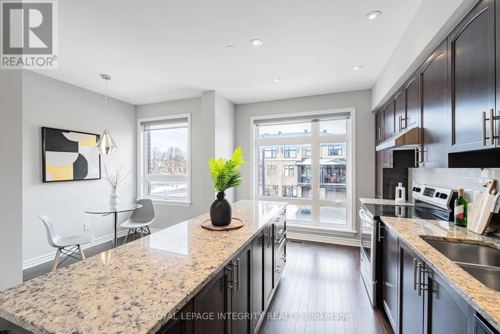 Cross Streets: Between Tralee RD and Wild Senna Way. ** Directions: Woodroffe Ave to Longfields Dr to Tralee Rd to Wild Senna Way. Welcome to this stylish executive 3-storey townhome built by Richcraft Homes in the vibrant Barrhaven community! Offering over 1,825 sq. ft. of thoughtfully designed, move-in-ready living space, this home combines modern finishes, functional layouts, and exceptional versatility.Featuring 9-ft ceilings on the ground and second floors, fresh paint throughout, and hardwood flooring on all levels including new Engineer hardwood on the third floor. This home provides a bright, elegant, and carpet-free environment (excluding stairs).The versatile ground floor includes a spacious office and sitting area with large windows and a separate entrance with direct access to Longfields Drive, ideal for a home-based business, studio, gym, or adaptable secondary unit. The second level is the heart of the home, featuring an open-concept layout filled with natural light and newly installed pot lights throughout. The modern kitchen boasts quartz countertops, stainless steel appliances, ample cabinetry, and an island, flowing seamlessly into the expansive living and dining areas. Step out onto the oversized private balcony, perfect for entertaining or relaxing outdoors. Upstairs, the third floor offers three well-sized bedrooms and two full bathrooms, including a comfortable primary suite with a walk-in closet and ensuite. Additional bedrooms are perfect for family, guests, or a home office. Convenient lower-level storage adds practicality. Located close to Barrhaven Marketplace, schools, parks, bike trails, and public transit, this home delivers the perfect balance of urban convenience and suburban comfort. Move-in ready and ideal for first-time buyers, young professionals, growing families, or investors. (id:27476)
