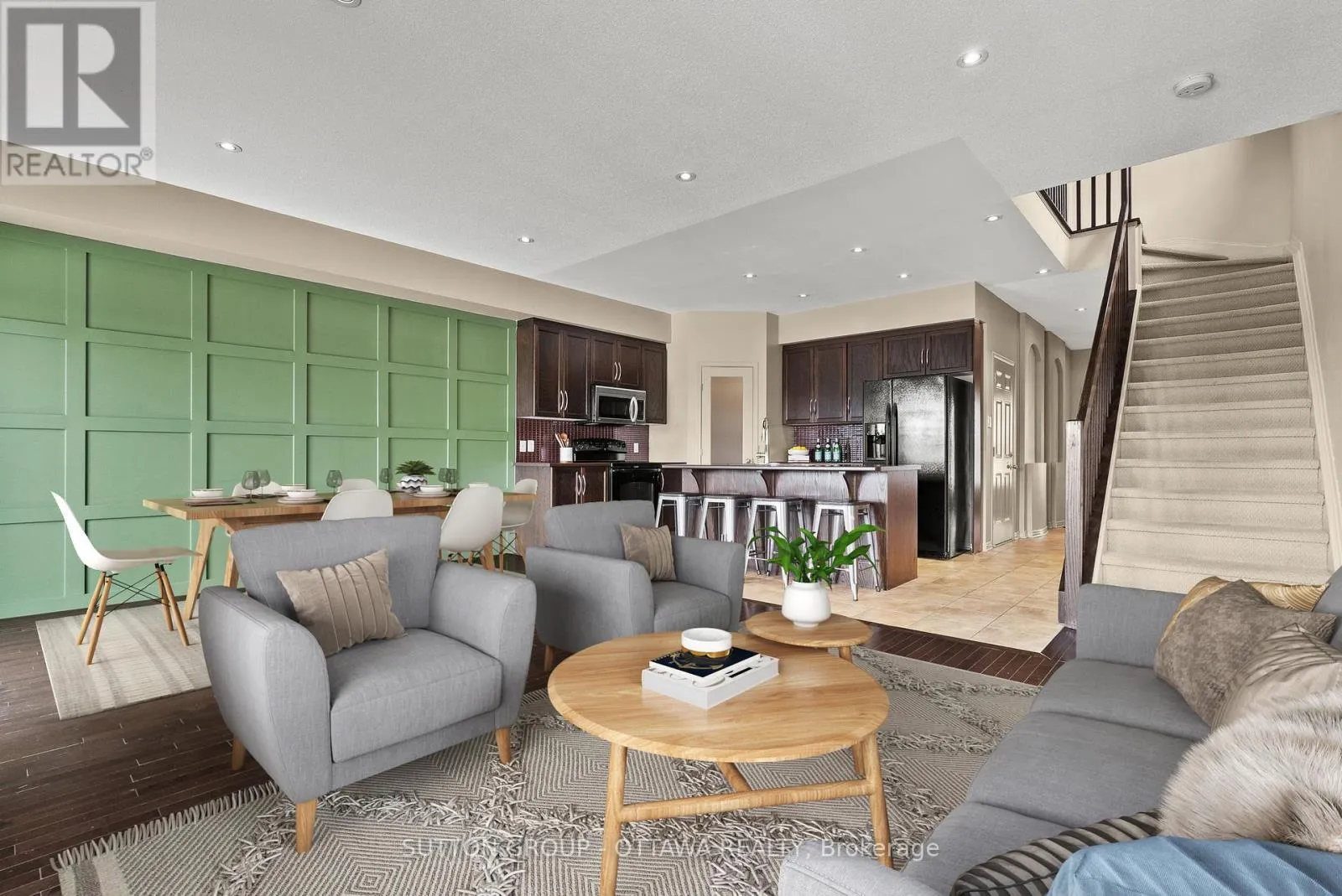 Cross Streets: Trim Road & Pinnacle Street. ** Directions: Trim Road to Pinnacle Street to Fieldfair Way. END UNIT IN THE HEART OF ORLEANS OFFERING EXCEPTIONAL VALUE! Once a Cardel model home, this 2 bedroom, 3 bathroom (2 ensuites!) home is sure to please! The main level boasts 9' ceilings, pot lights throughout, hardwood flooring, and an open concept floor plan. As you step inside, the foyer with custom bench & hooks welcomes you. The spacious kitchen with walk-in pantry and huge island (easily seats 4) is perfect for meal prep and for entertaining! A sleek feature wall is the backdrop to the dining and living areas, overlooking the backyard. Upstairs, the two impressive bedrooms can both be called "primary" suites, each featuring their own private ensuite bathroom and walk-in closet. Head downstairs to catch a movie or send the kids to play in the partially finished rec room (concrete floor has been painted to create a "finished look" - leave it the way it is or add your own flooring!). Enjoy warm summer days BBQing in the backyard or gathering with friends on the spacious patio under the custom pergola. Bonus: Driveway fits 2 cars (in addition to the garage)! This home is conveniently located close to public transit, parks, schools, shops, dining and more! Book a showing today! Note: some photos are virtually staged. Visit link for more photos! (id:27476)