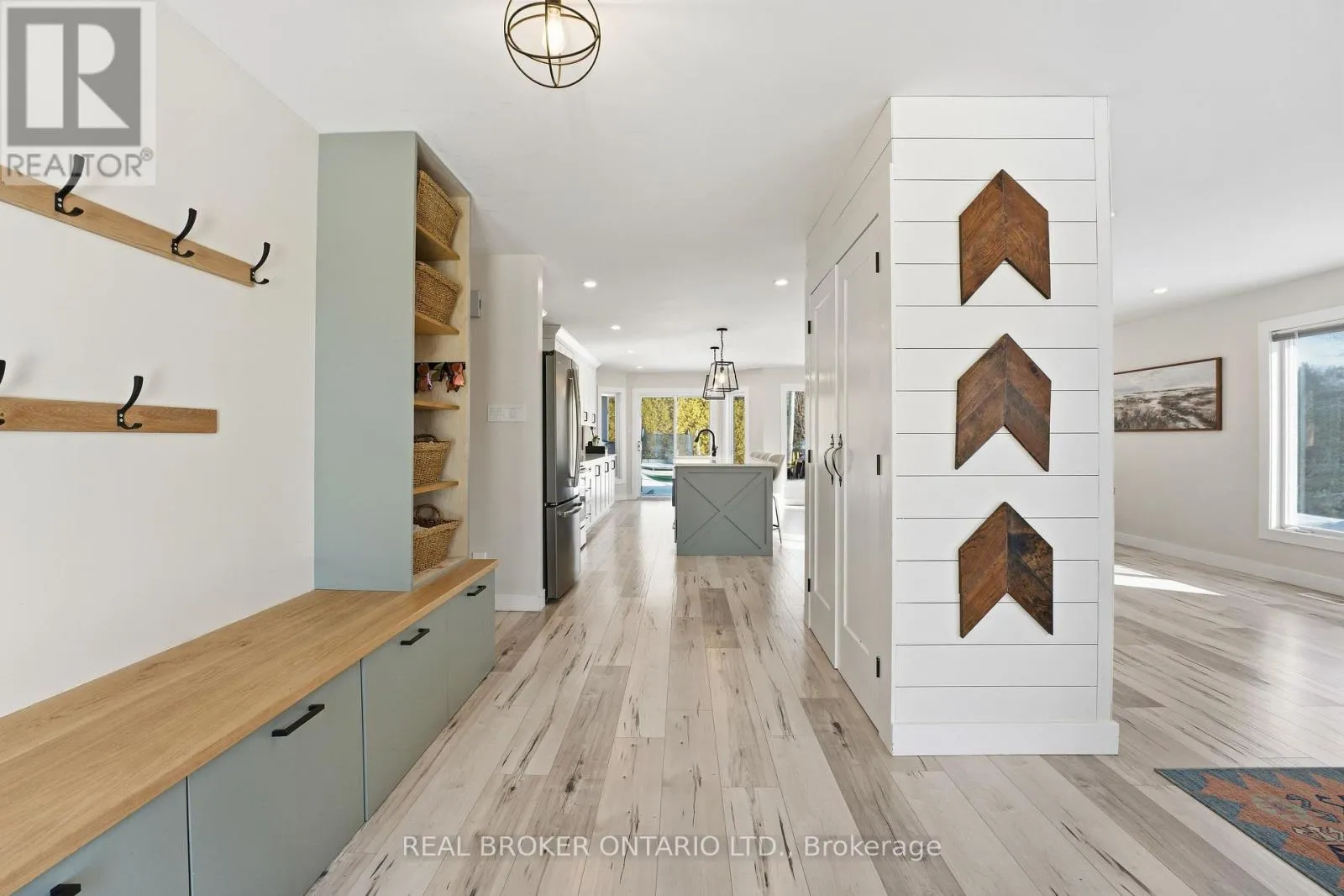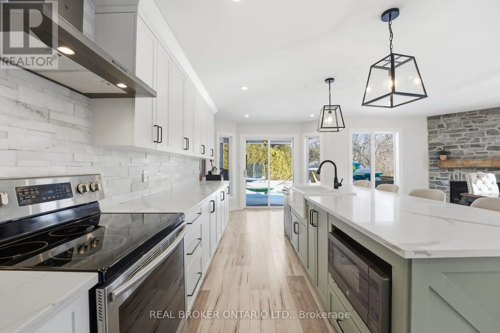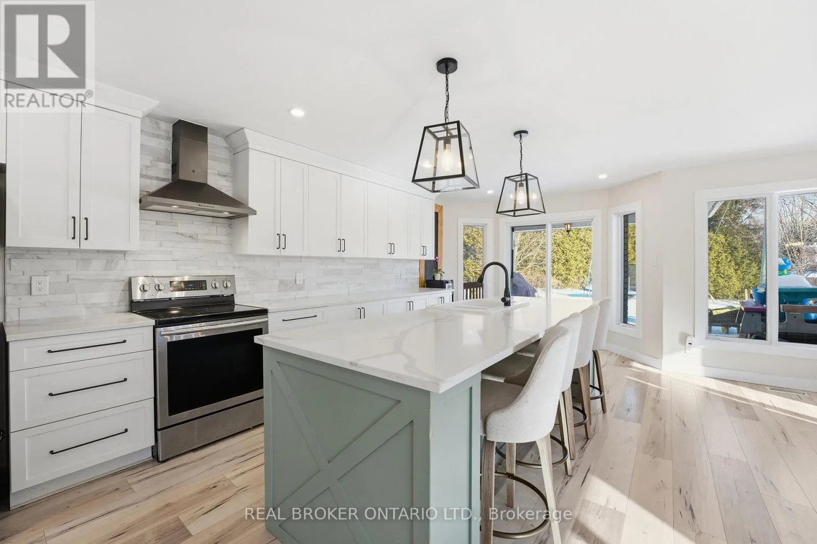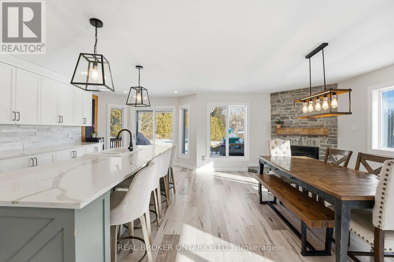 Cross Streets: Sutherland Drive & Rideau Valley Drive North. ** Directions: Head north on ON-416 N. Take exit 49 for Roger Stevens Dr. Roger Stevens/North Gower/Osgoode. Turn right onto Roger Stevens Dr/Ottawa Regional Rd 6. Turn left onto Rideau Valley Dr N/Ottawa 13 (signs for Ottawa Road 13). Turn right onto Sutherland Dr. Welcome to an exceptional country property just 2 minutes from the heart of Manotick: offering not only a beautifully renovated bungalow, but an incredible 25' x 40' insulated detached shop with its own 200-amp service and large propane heater ready for connection, hydro meter and 10' x 10' door, this space is ideal for car enthusiasts, contractors, hobbyists, or anyone looking to operate a home-based business with privacy and flexibility. The separate setup allows you to work from home without sacrificing your personal space: a rare and valuable opportunity. The stunning 4 bdrm home is set on approximately 1.3+ acres near the Rideau River and the Carleton Golf & Yacht Club, it offers a gorgeous main level AND a stunning in-law suite with a walkout- perfectly suited for families, multigenerational living, or income potential. On the main level you'll find a warm, open-concept living and dining area anchored by a striking stone gas fireplace. The renovated kitchen (2018) is both functional and beautiful, featuring stainless steel appliances, quartz countertops, extended cabinetry, and a generous island with breakfast seating. The spacious primary suite includes a 3-piece ensuite, two additional bedrooms and a full bath complete the main level. The fully finished walk-out basement provides a separate living space with its own renovated kitchen (granite counters), bedroom, office, and full bath - ideal for extended family, guests, or rental potential - with direct access to a private patio. Outside, enjoy expansive yard space, a large deck, a stone patio with firepit, and mature privacy: all just minutes to Manotick Village and only 3 minutes to Highway 416. Close to parks, schools, shops, restaurants, golf, and two marinas, this location offers the perfect blend of country living and village convenience . A rare opportunity to own a move-in ready bungalow with acreage, versatility, and exceptional workspace in one of Ottawa's most desirable communities. (id:27476)