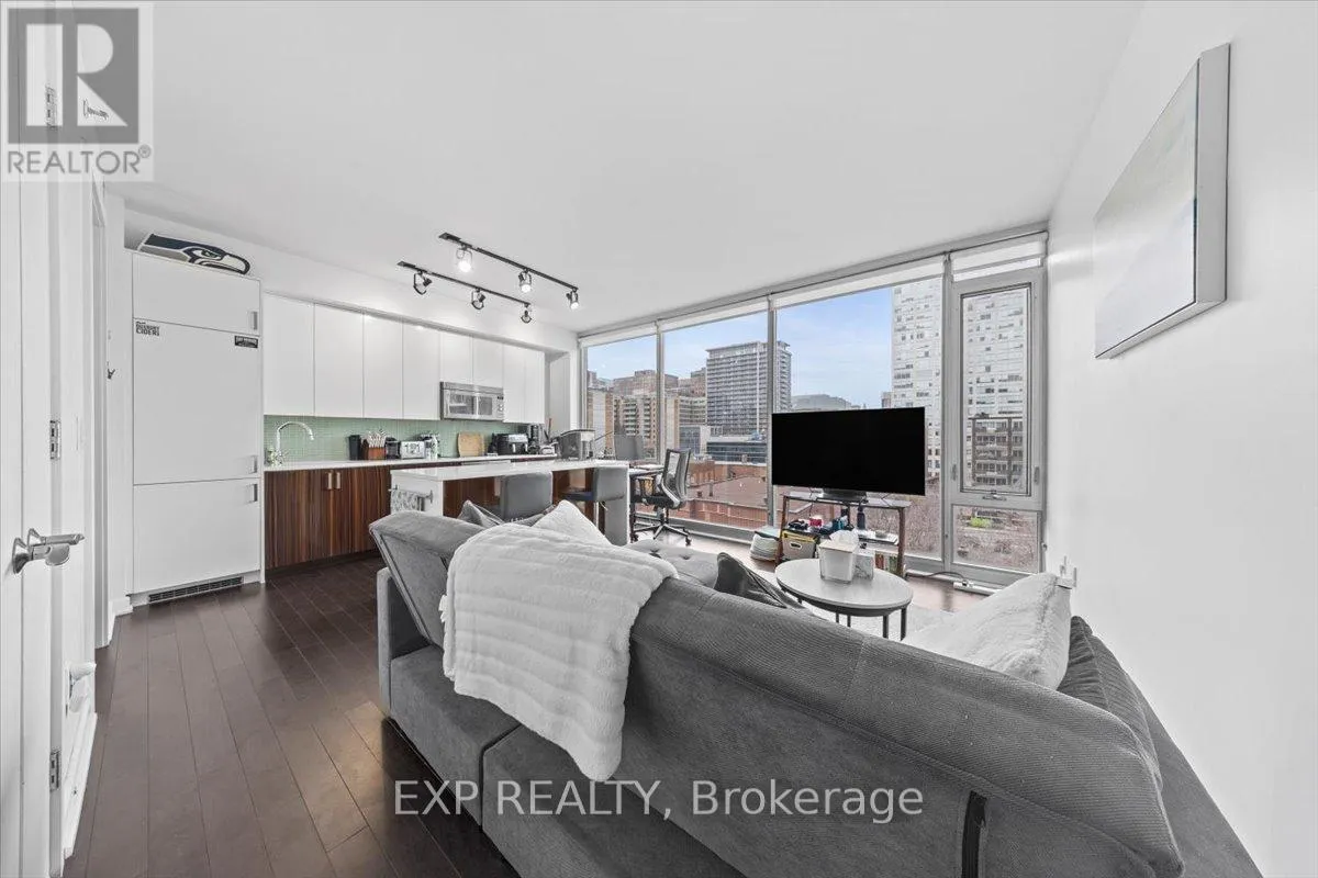 Cross Streets: O'Connor and Bank. ** Directions: Lisgar Between Bank and O'Connor. Experience sophisticated downtown living at SoHo Lisgar, one of Centretown's most desirable condominium residences. This stylish 1-bedroom suite delivers a perfect mix of contemporary design, efficient layout, and unbeatable urban convenience. Inside, the bright open-concept living space is framed by floor-to-ceiling windows, filling the unit with natural light and offering lively city views. The sleek European-style kitchen is designed with both form and function in mind, featuring integrated appliances, quartz countertops, modern cabinetry, and a clean, contemporary backsplash. The living and dining areas connect seamlessly, creating an inviting space ideal for everyday living or hosting guests. The generous bedroom provides a comfortable retreat with excellent storage, while the modern bathroom showcases spa-inspired finishes and a glass shower. In-suite laundry adds everyday convenience to this thoughtfully designed home. Residents enjoy access to exceptional hotel-inspired amenities, including a rooftop terrace with panoramic views, outdoor pool with cabanas, fitness centre, sauna, private theatre room, business centre, and 24-hour concierge service. Located steps from everything downtown Ottawa has to offer, you can easily walk to Elgin Street restaurants, cafés, boutiques, the ByWard Market, Parliament Hill, and the Rideau Canal. With excellent transit options and nearby LRT access, getting around the city is effortless. Ideal for professionals, first-time buyers, or investors, this condo offers a modern, low-maintenance lifestyle in one of Ottawa's most vibrant and walkable neighbourhoods. (id:27476)