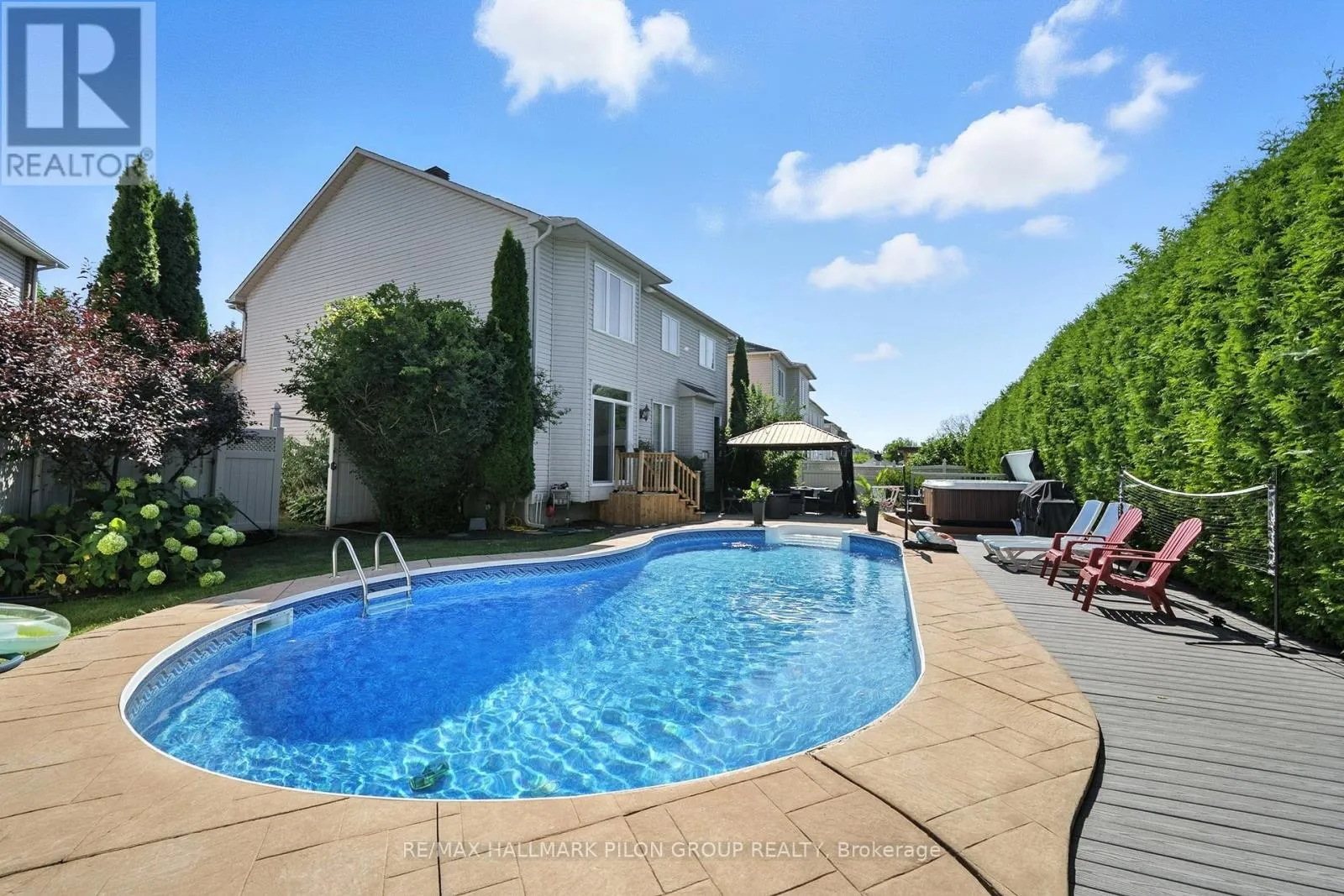 Cross Streets: Aquaview Dr /Clermont Cr. ** Directions: South on Portobello Blvd, West on Aquaview Dr, to Clermont Cr. Welcome to 2234 Clermont Cr, a rare opportunity on a premium pie shaped lot in Avalon East. This beautifully maintained 4 bed, 4 bath home offers a private backyard oasis with heated saltwater pool, hot tub, pergola lounge & NO REAR NEIGHBOURS. Situated on a quiet crescent, this home is perfectly positioned for family living. Just steps to Aquaview Park with its splash pad, playground, green space & outdoor rink in the winter, and backing onto a walking/biking path.The backyard is a true standout. A tall manicured hedge spans the rear of the property, creating exceptional privacy. The 18' x 36' heated saltwater pool is surrounded by stamped concrete patios and multiple seating areas, ideal for entertaining. The hot tub offers year round enjoyment, while the pergola lounge and 10' x 12' gazebo with lighting & screens provide comfortable spaces to relax. PVC decking along the hedge adds additional usable outdoor space.Inside, the home welcomes you with a spacious foyer and a striking curved staircase. The main level offers a bright open concept living and dining area, along with a rear family room overlooking the yard with a gas fireplace featuring a stone surround and wood mantle. The kitchen has been updated with quartz countertops, refreshed cabinetry, new flooring, stainless steel appliances, and a large extended island w/breakfast bar seating, along with a bright eating area. Upstairs, hardwood flooring runs throughout all bedrooms. The spacious primary includes a walk in closet and 4pc ensuite. Three additional beds, full bath, & convenient 2nd level laundry complete the space.The finished LL offers a large rec room, dedicated gym area w/luxury vinyl flooring, computer nook, full bath, & ample storage. Roof 2015. Many updates throughout, full list available. Located in a highly desirable community known for its family friendly atmosphere, parks, schools, walking trails, & access to shopping and everyday amenities. (id:27476)