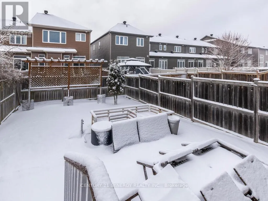 Cross Streets: Fernbank. ** Directions: Fernbank Or Eagleson to Romina. Gorgeous End-Unit Town With So many Updates with-in last 5 years. Spacious Tile Foyer, with Access to Garage and 2-pc Bath. Hardwood Throughout Main level, Separate Dining Room with upgraded light Fixture. Living Room is very bright and Spacious with Electric Wall Fireplace, Back Wall is Windows that allows for Abundance of Natural lighting. Open Kitchen with Eating area. Kitchen is Bright white cabinetry including built-in Pantry with Shelving, new Quartz Countertops New backsplash and fixtures. Tile flooring. Also on main a walk-in pantry has been added under stairway, excellent use of space. Upper Level has 3 Large bedrooms and a new full luxurious bath complete with stand alone tub walk-in shower stunning finish. The master has a wall of closets and cathedral ceiling with new Fixture.. The flooring has all been replace with luxury Laminate on 2nd level. Lower level with new flooring is an ideal space for family time, also brightened by windows above. Furnace replace this year. Freshly painted throughout. 5 Appliances includes new S/S fridge and Hood Fan. New Fixtures throughout. Fenced yard with Privacy Trellis, Patio has been enlarged and landscaping complete. Located in a most walkable area with Walmart, Superstore, Parks and Recreation and Transportation at your door (id:27476)