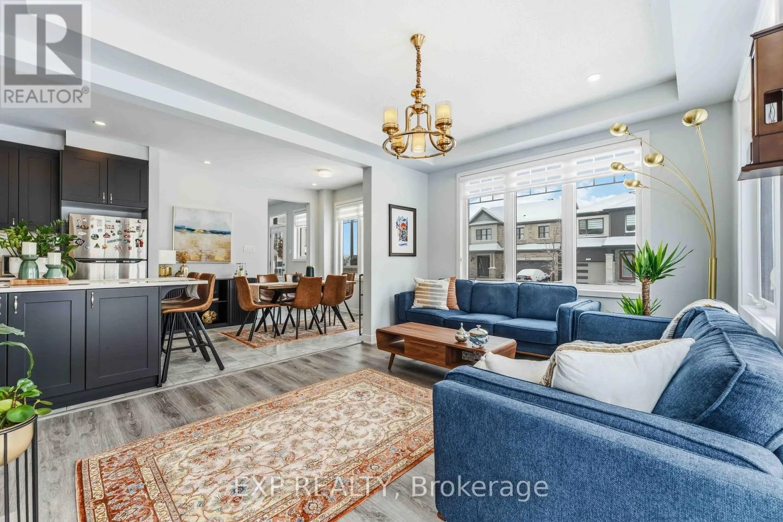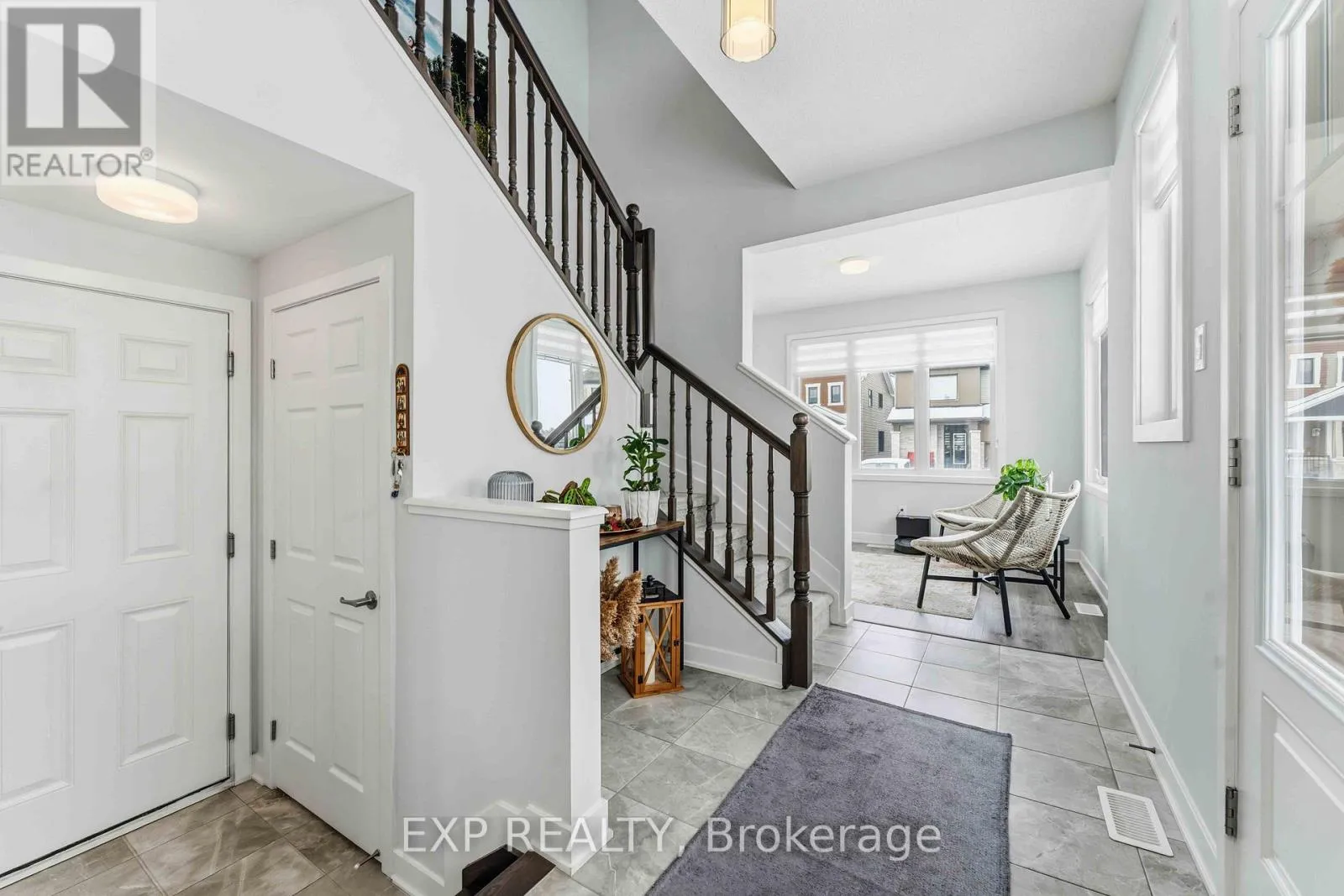Old Richmond Rd and Perth St/Ottawa Regional Rd 10 to Filly Terrace Welcome Home. A beautifully upgraded 3-bedroom, 2.5-bath Mattamy end-unit, corner townhome on large premium lot in the desirable community of Richmond. This home offers extra windows, abundant natural light, and stylish modern finishes throughout. The bright foyer opens to an impressive open-concept main floor featuring 9-foot ceilings, elegant vinyl flooring, and pot lights. Enjoy a spacious family room and dining area perfect for entertaining, plus a versatile separate living room or home office and convenient powder room. The modern kitchen and pantry is designed for both functionality and style; it showcases a crisp white backsplash, stainless steel appliances, ample cabinetry and generous counter space. Upstairs, the primary bedroom retreat features a walk-in closet and private ensuite bathroom. Two additional well-sized bedrooms, a full bathroom, and second-floor laundry complete the upper level. Located on a premium end-unit lot, this home offers the perfect blend of comfort, style, and convenience in a growing family-friendly community. It feels brand new. You will be impressed! (id:27476)