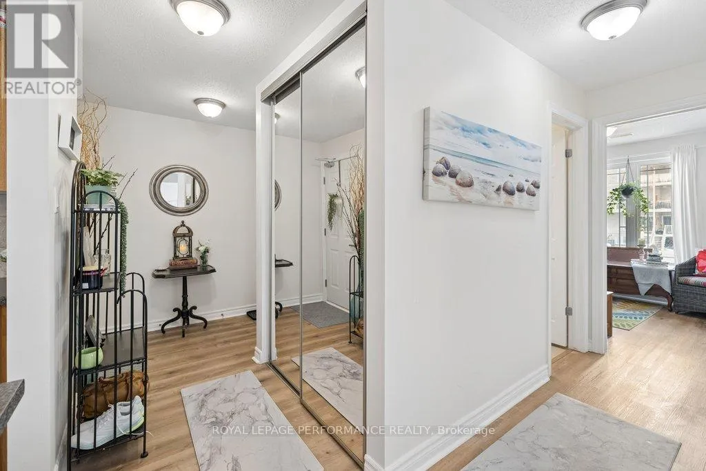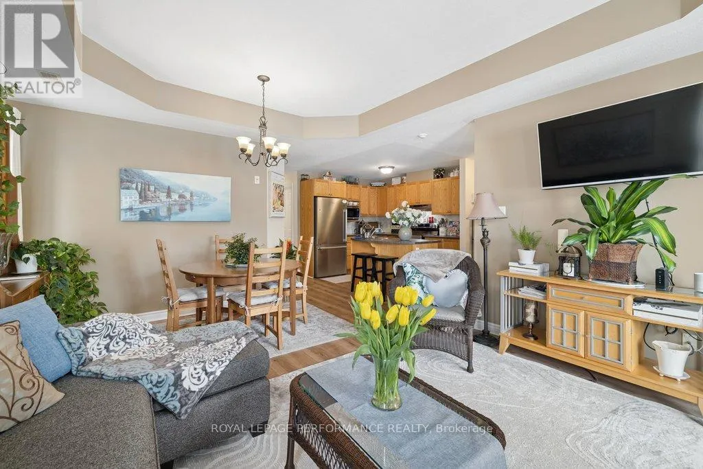 Cross Streets: Baseline/Centrepointe. ** Directions: Baseline Rd., South onto Centrepointe Dr, Right onto Paseo Pvt, turn left and see Building 304. Visitor parking directly on left side and building on the right. Welcome to 304 Paseo Private, a stunning end/corner-unit condo offering modern updates, accessibility, and an unbeatable location. This Minto Brio model boasts 1,100 sq. ft. of bright and airy living space, with natural light pouring in from multiple windows. The home has been thoughtfully upgraded, including new luxury vinyl plank flooring (2023), brand-new kitchen appliances (fridge, Wi-Fi-enabled Samsung stove, Samsung dishwasher, Nutone hood fan, and microwave), and a complete interior repaint in September 2023. The living room features a stylish tray ceiling that adds an elegant touch, while the open-concept layout is perfect for entertaining or relaxing. Accessibility is prioritized with an added ramp to the outside door and a chairlift option for indoor mobility, making this home an excellent choice for all lifestyles. Functionality and convenience define this condo, offering 2 bedrooms + den and 2 bathrooms with plenty of storage, including a double front closet, linen closets, and spacious bedroom closets. Enjoy your morning coffee or unwind on your private balcony, a peaceful retreat without side neighbours for added privacy. Your designated parking spot (#234) is directly in front of the unit for ultimate convenience. Located minutes from major amenities like College Square, Baseline Station, the future LRT, and Algonquin College, this home is ideal for professionals, down-sizers, or anyone seeking a low-maintenance lifestyle in a highly sought-after neighbourhood. (id:27476)
