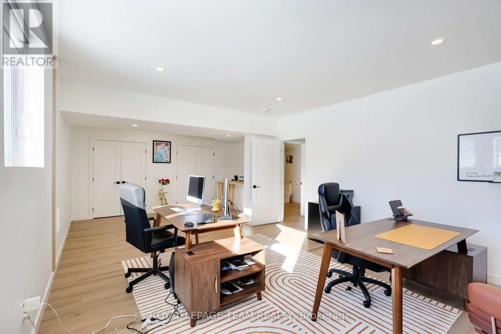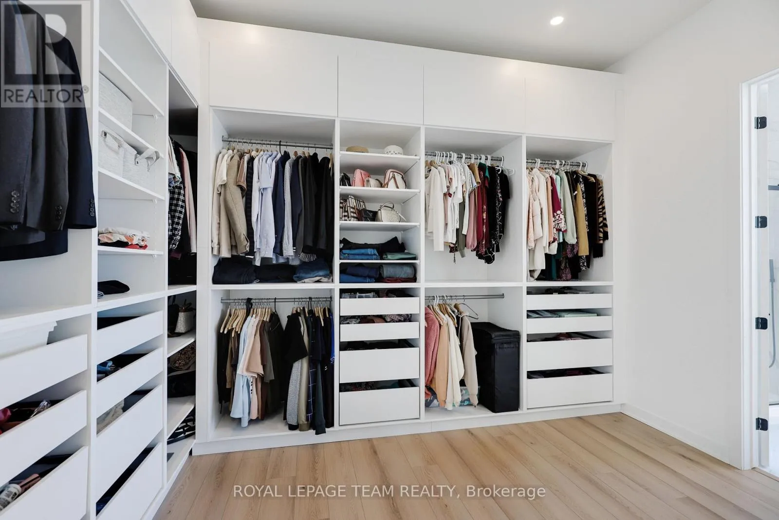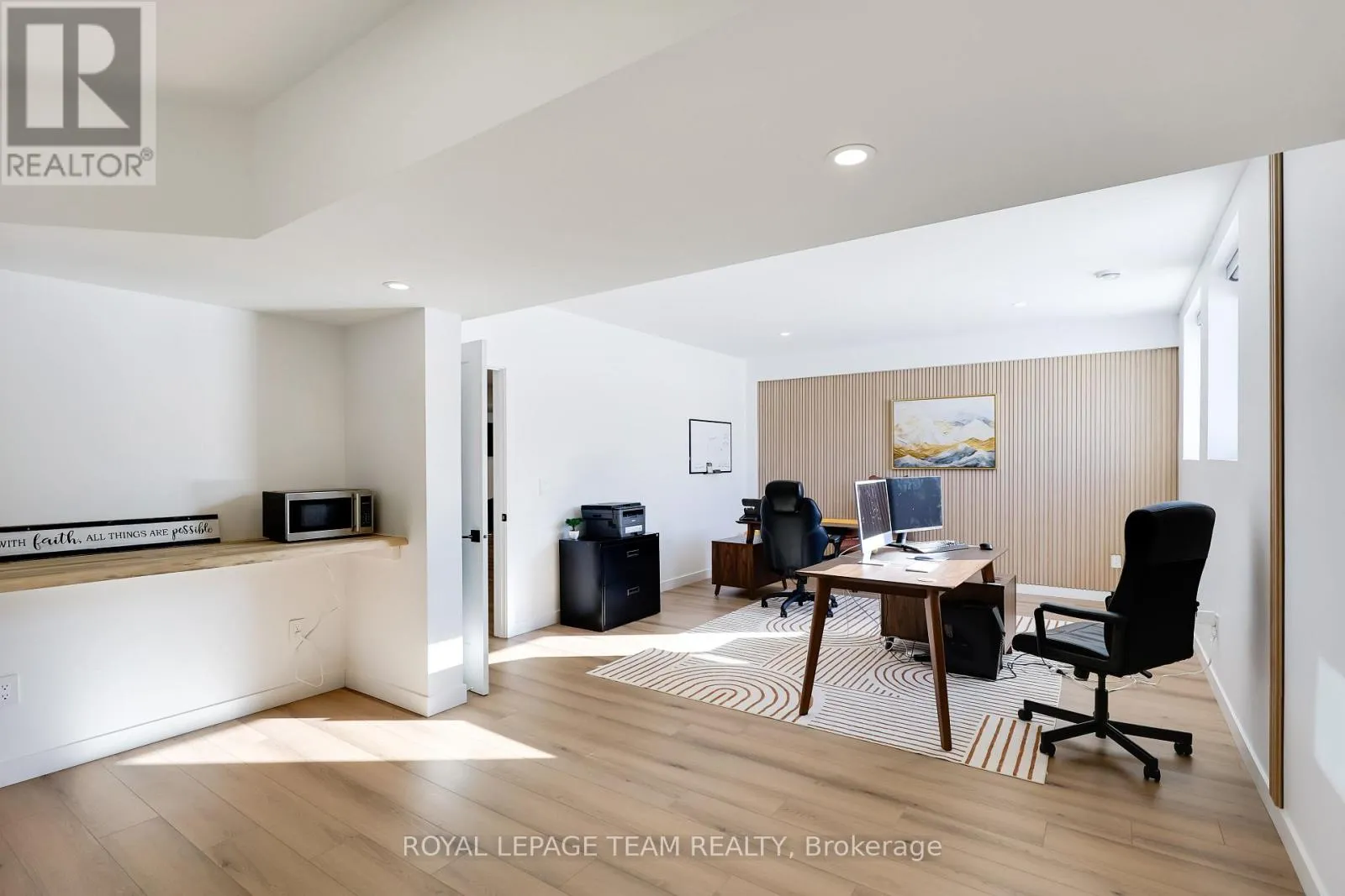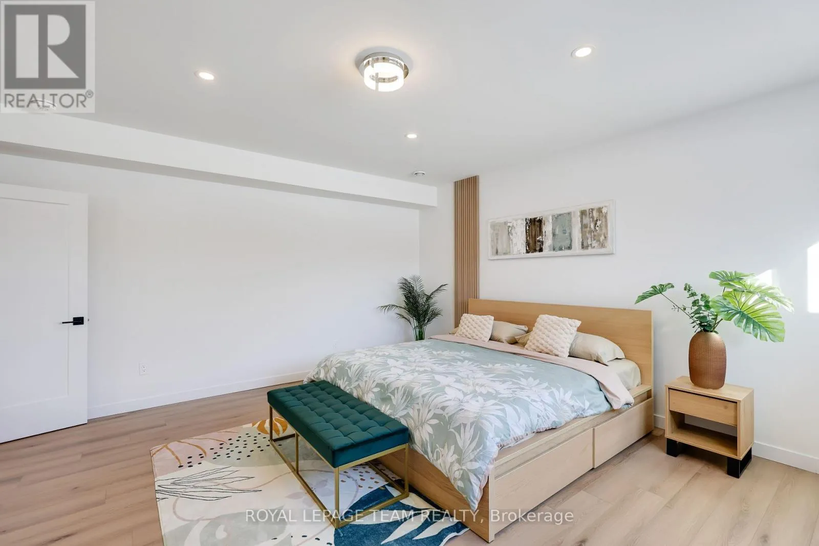 Cross Streets: Marchurst Rd and Synergy Way. ** Directions: Head Southwest on March Road, turn right onto Marchurst Rd, then turn left onto Synergy Way, turn left to stay on Synergy Way, the home will be on the left. This custom-built luxury bungalow offers over 5600 sq ft of total finished living space, set on a rare estate-sized lot of over 2 acres in an upscale, low-density community. Built in 2023, the home combines modern design with exceptional space and privacy, while remaining conveniently located near major amenities and Ottawa's high-tech employment hub. The thoughtfully designed layout includes 5 bedrooms and 4 bathrooms, with 3 bedrooms on the main level and 2 bedrooms in the lower level, ideal for multi-generational living, flexible family needs, or home office use. Ceiling heights reach up to 15 ft in the foyer and living room, with 10 ft ceilings across the main level, complemented by large black-framed double-pane windows that flood the home with natural light and enhance its architectural presence. The open-concept living area flows seamlessly into a modern kitchen featuring a waterfall quartz island, full-height quartz backsplash, custom soft-close cabinetry, and a premium appliance package. The primary suite offers a private retreat with a spa-inspired ensuite, including a freestanding soaking tub, glass-enclosed rain shower with body jets, and a custom walk-in closet. The lower level extends the living space with a spacious recreation area, electric fireplace (included), dedicated home gym, additional bedrooms, and a full bathroom finished to the same high standard as the main floor. Outdoors, the property features professionally landscaped grounds, interlock patios and walkways, a covered terrace, custom pergola, mature trees, multi-zone irrigation, and architectural exterior lighting. Additional highlights include a 4-car attached garage with epoxy flooring, extensive parking, smart home technology, comprehensive LED lighting, full security system, and electric fireplaces on both levels. This move-in-ready bungalow presents a rare opportunity to enjoy space, privacy, and modern luxury in one of the area's most desirable communities. (id:27476)