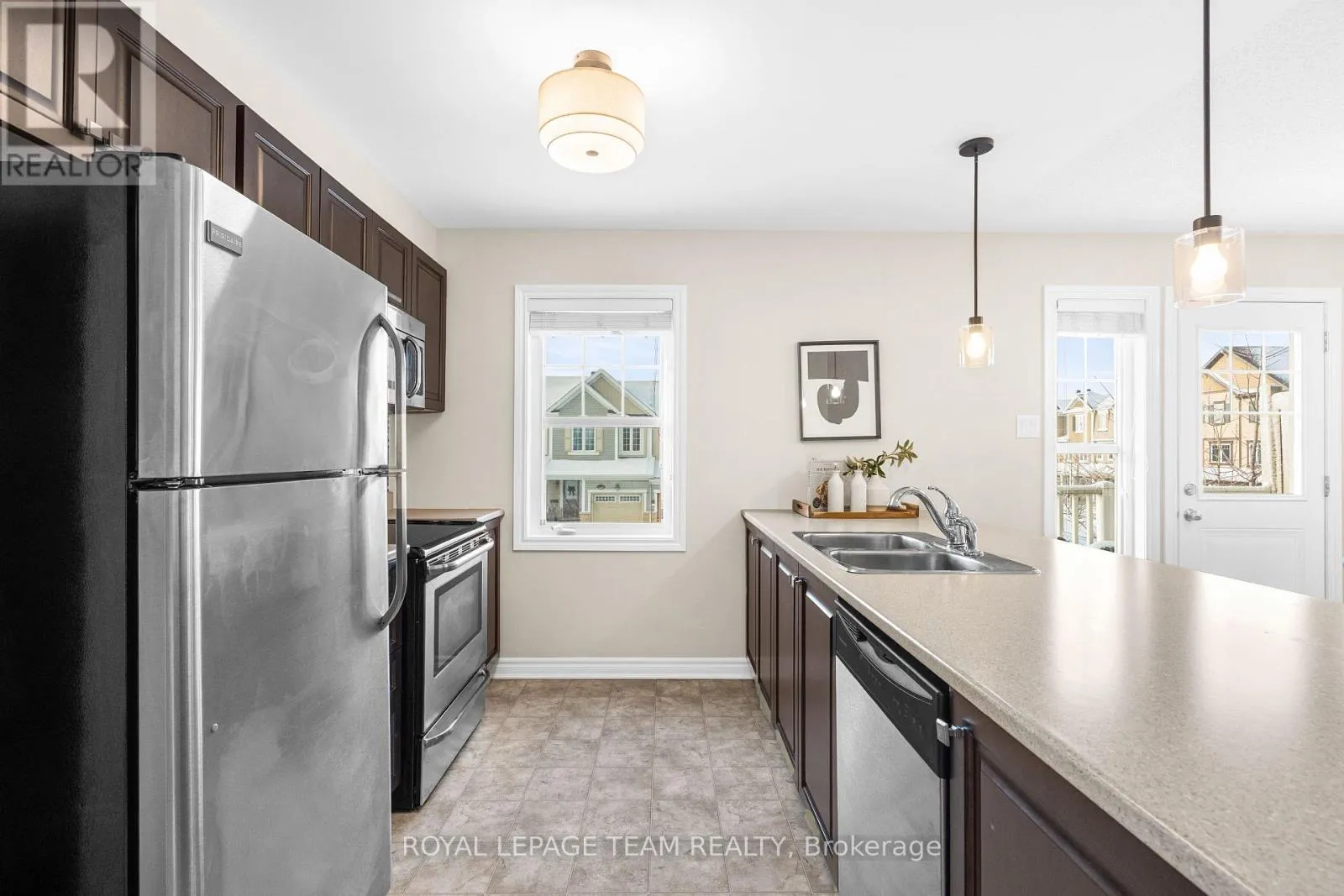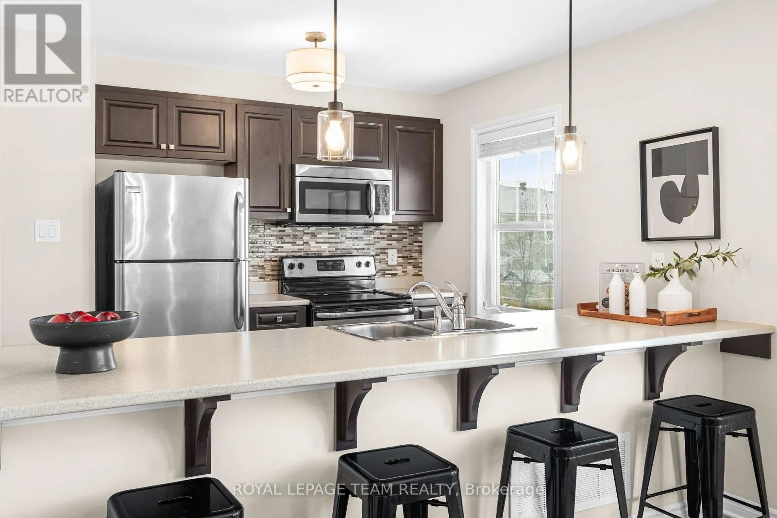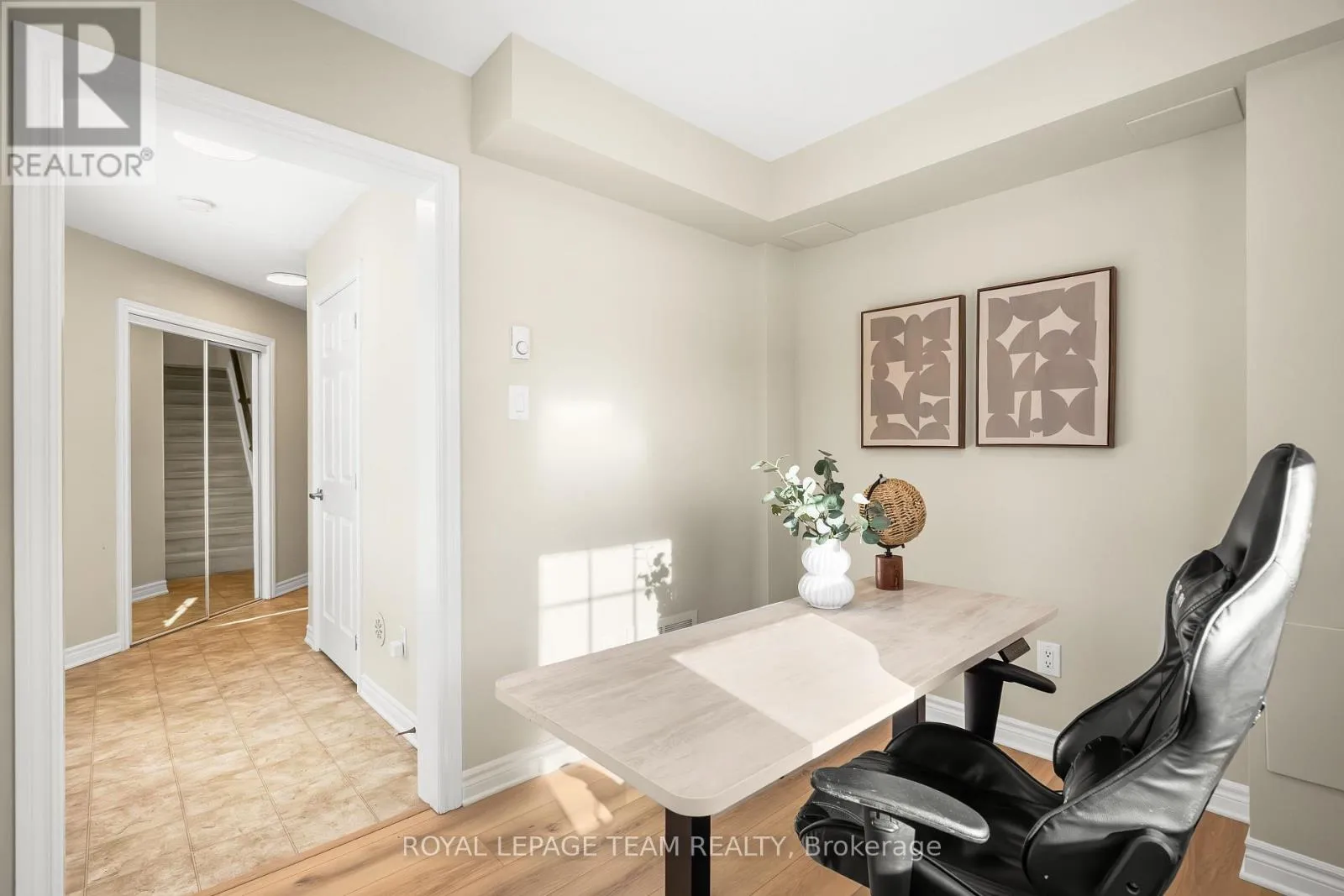 Cross Streets: Campobello Dr & Grenadine St. ** Directions: Take Maple Grove Rd west to Grenadine St. Beautifully maintained and well-appointed 3-storey end-unit townhome offering 2 bedrooms and 2.5 bathrooms. Welcomed by a charming front porch, the main level features a versatile office space - perfect for working from home - along with convenient laundry space.The second level boasts a bright, open living space designed for both comfort and entertaining. The modern kitchen is equipped with stainless steel appliances, a large island, and flows seamlessly into the dining area with access to a private balcony. A spacious living room and a convenient powder room complete this level.The upper floor offers a thoughtfully designed layout with a generous primary bedroom featuring a walk-in closet and a private 3-piece ensuite. An additional well-sized bedroom and a full bathroom complete the level. Recent updates (2026) include furnace servicing, new flooring and carpets, professional painting throughout, and updated lighting. Ideally located close to schools and parks, this property is perfect for professionals, small families, or investors alike. (id:27476)