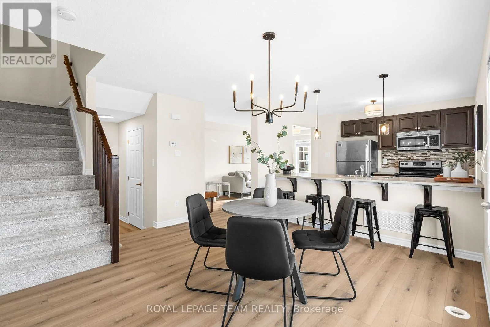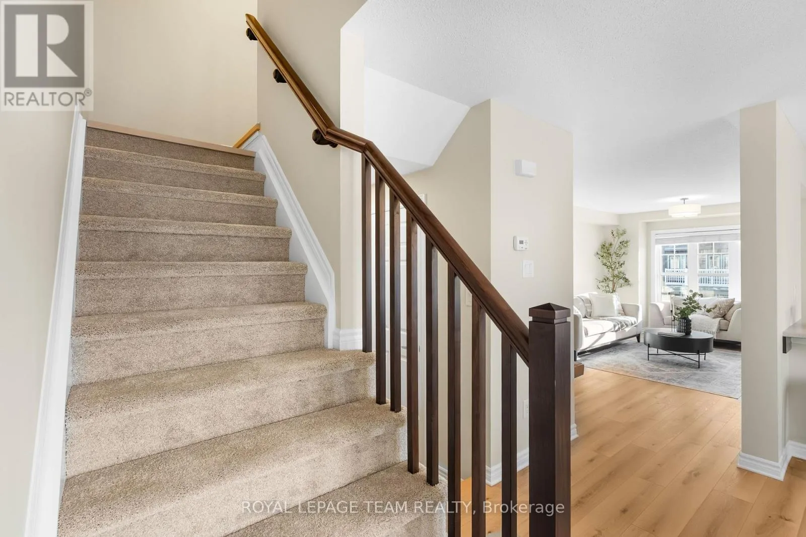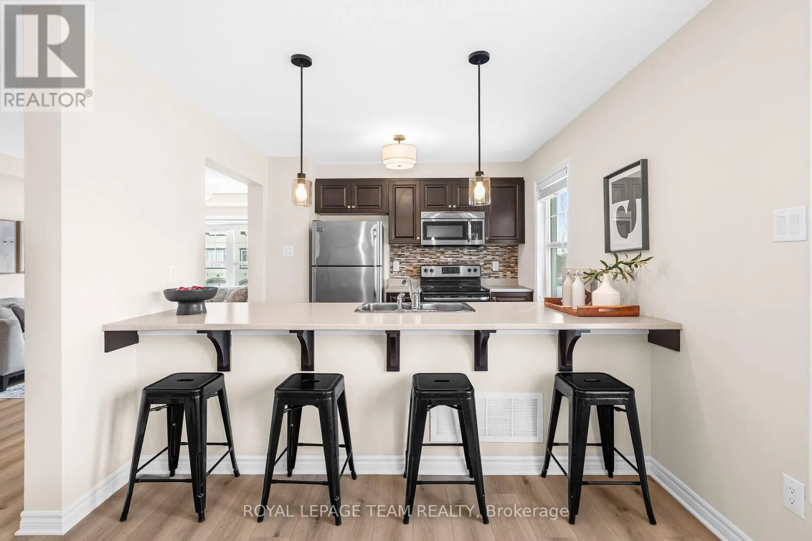 Cross Streets: Campobello Dr & Grenadine St. ** Directions: Take Maple Grove Rd west to Grenadine St. Beautifully maintained and well-appointed 3-storey end-unit townhome offering 2 bedrooms and 2.5 bathrooms. Welcomed by a charming front porch, the main level features a versatile office space - perfect for working from home - along with convenient laundry space.The second level boasts a bright, open living space designed for both comfort and entertaining. The modern kitchen is equipped with stainless steel appliances, a large island, and flows seamlessly into the dining area with access to a private balcony. A spacious living room and a convenient powder room complete this level.The upper floor offers a thoughtfully designed layout with a generous primary bedroom featuring a walk-in closet and a private 3-piece ensuite. An additional well-sized bedroom and a full bathroom complete the level. Recent updates (2026) include furnace servicing, new flooring and carpets, professional painting throughout, and updated lighting. Ideally located close to schools and parks, this property is perfect for professionals, small families, or investors alike. (id:27476)