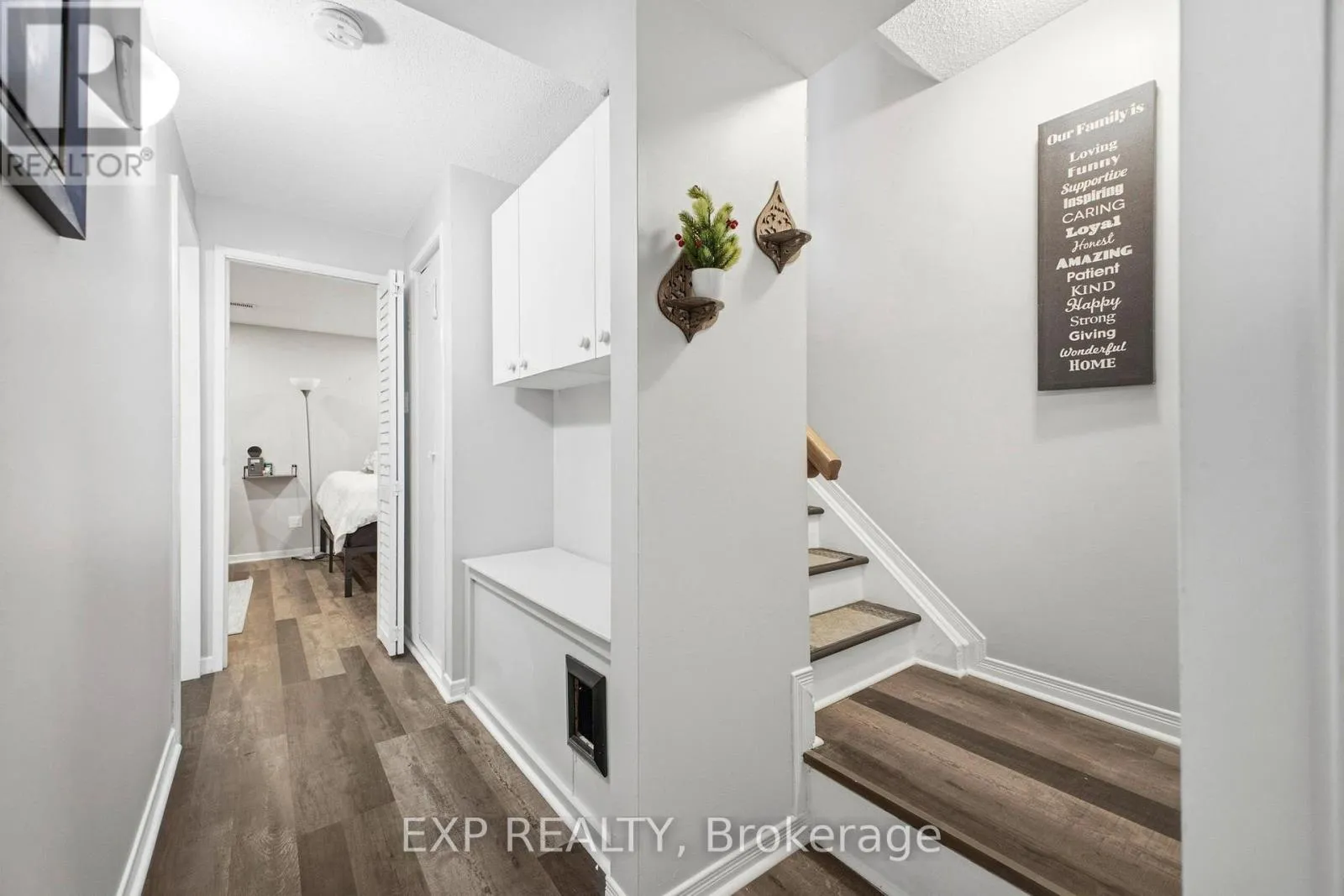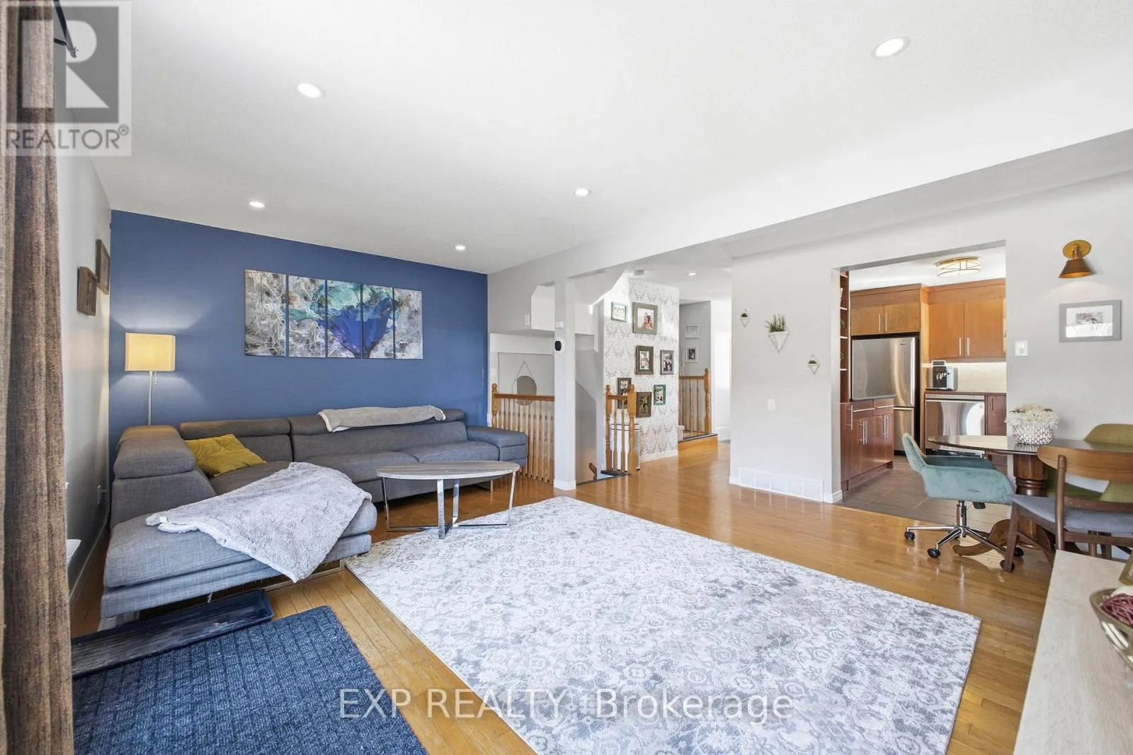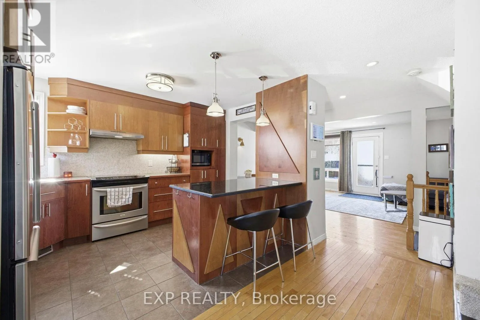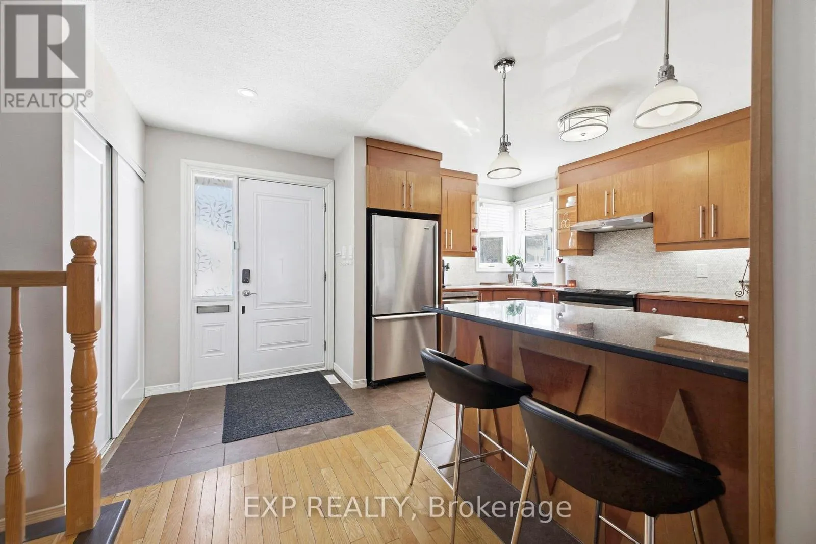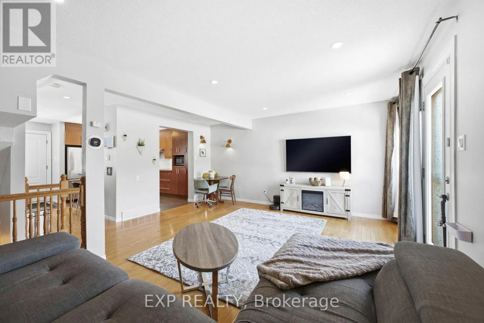 Cross Streets: Chimo and McClure. ** Directions: Katimavik to Chimo to McClintock. Wonderful updated End Unit Townhome, in a great location in Katimavik. Walking distance to schools, shopping, parks, amenities, and excellent transit service. This 3 bedroom home has an Open Concept Renovated Kitchen with loads of cabinet space, beautiful backsplash, and corner windows allowing for beautiful bright light. The Breakfast bar island has a Granite Countertop, and opens to the Dining area with overhead chandelier lighting. The bright and open Living Room has Patio door access to the fully fenced backyard. Great living space for entertaining, featuring hardwood flooring and pot lighting throughout. On the second level the Large Primary Bedroom has a wall of closets, and two bright new sliding windows and the Spacious 2nd and 3rd bedrooms are perfect for extra family members. Upstairs also includes the 4 piece main bath with updated vanity sink and new tub surround. The Fully Finished Basement is a great area for a bedroom, family room, home office or entertainment area, and also includes an updated 3 piece bathroom with shower. Private fenced backyard with patio and shed, backing onto green space. Over $30K in Electrical Upgrades, including New Panel, LED lighting, Commercial Wiring, and Generator Panel with Outdoor Inlet. With New backyard patio landscaping, updated bathrooms, New Interior Doors, New windows including basement egress windows, new Siding and all new insulation in attic, this on is sure to impress. This unit also boasts the only private driveway on the entire street, making it easy to park. Don't miss out! (id:27476)