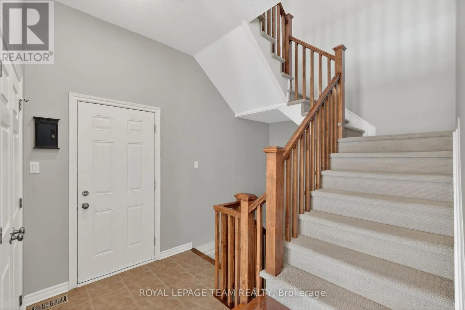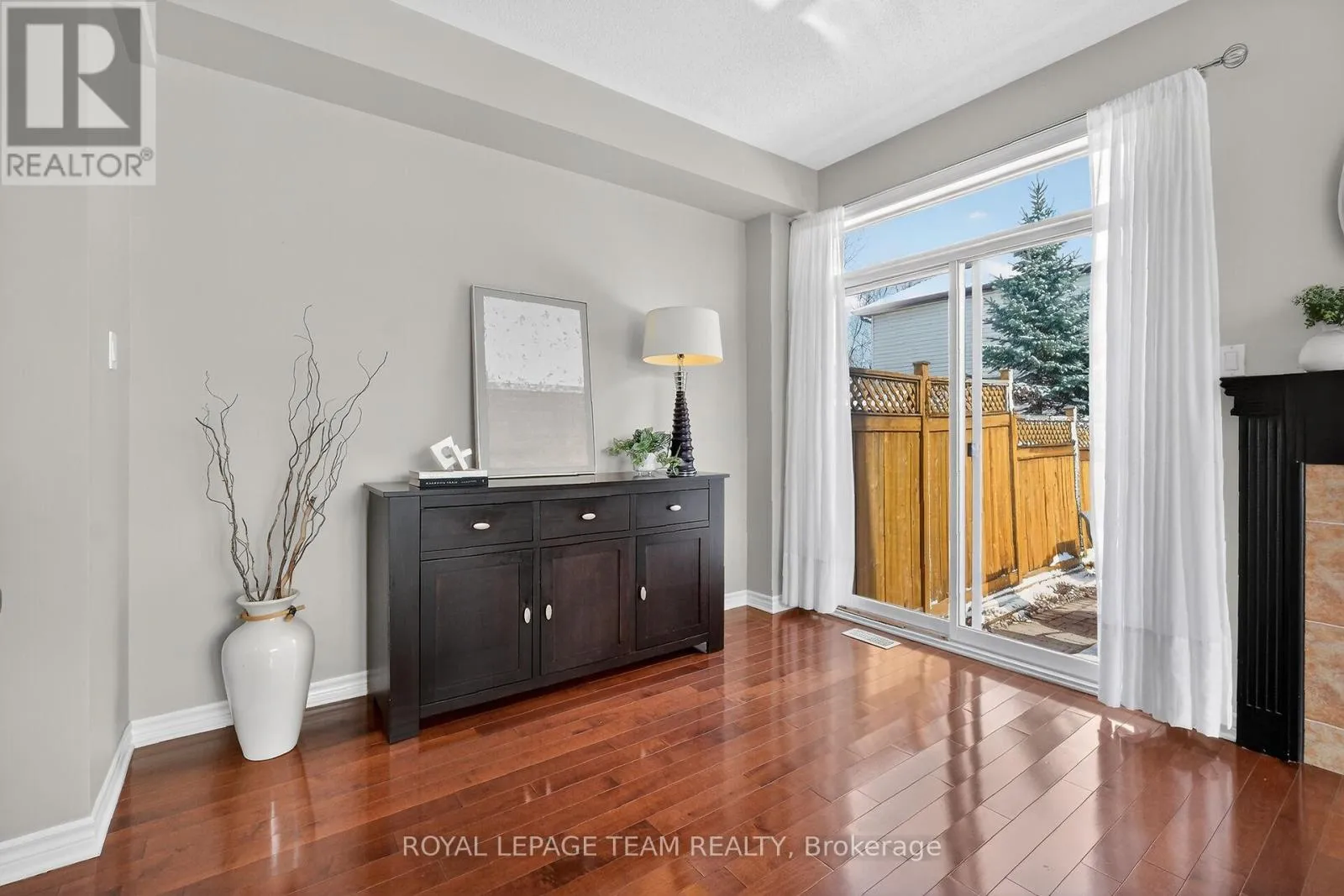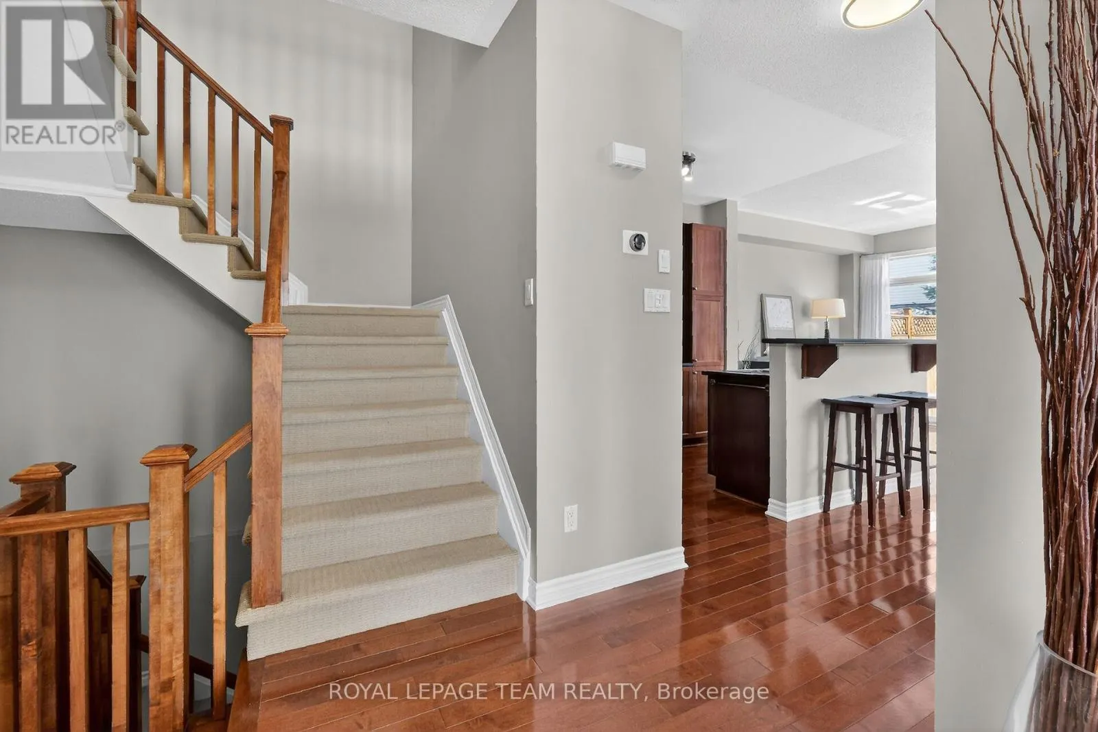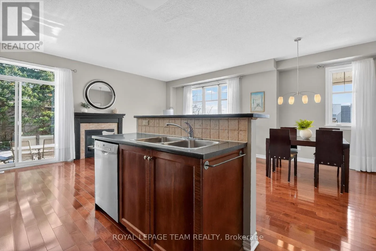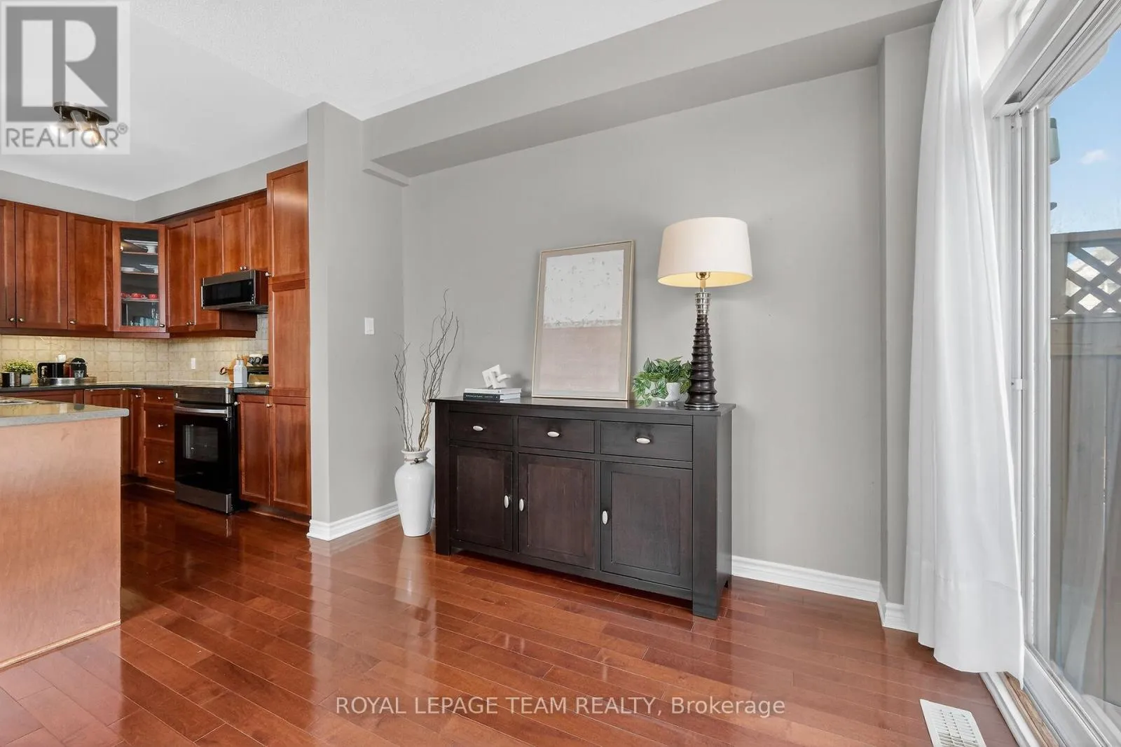 Cross Streets: Leitrim and Kelly Farm. ** Directions: Leitrim Rd to Kelly Farm, left onto Shepody Circle. Welcome to this beautifully maintained and thoughtfully designed townhome, offering an ideal blend of comfort, style, and functionality. End unit townhome featuring a double car garage, this home provides both convenience and exceptional living space for modern families. Step inside to a bright and inviting main floor, highlighted by 9-foot ceilings and rich hardwood flooring throughout. The elegant living room is centered around a natural gas fireplace, creating a warm and welcoming atmosphere perfect for both everyday living and entertaining. The adjoining dining area flows seamlessly into the stunning kitchen with shaker-style cabinetry in a striking wood tone extending to the ceiling, and separate island. Patio doors lead to a fully fenced backyard oasis, surrounded by mature trees for added privacy. Enjoy outdoor living with an interlock patio and interlock walkway. Upstairs, offers a versatile loft space, perfect for a home office, reading nook, or additional family area. The spacious primary bedroom retreat features a walk-in closet and a well appointed 4 piece ensuite bathroom with soaker tub and walk in shower. Two additional generously sized bedrooms and the convenience of second-level laundry and family bathroom complete this level. The fully finished lower level expands your living space with a cozy family room featuring a floor-to-ceiling stone electric fireplace, creating a perfect setting for movie nights or quiet evenings at home. This level also includes a utility room with ample storage, ensuring everything has its place. This home is truly move-in ready and meticulously maintained, with a new roof installed in 2025 for added peace of mind. Close to amenities and walking distance to schools. Note: Driveway fits 4 vehicles plus 2 garage spaces. 3875 sqft Irregular lot (id:27476)