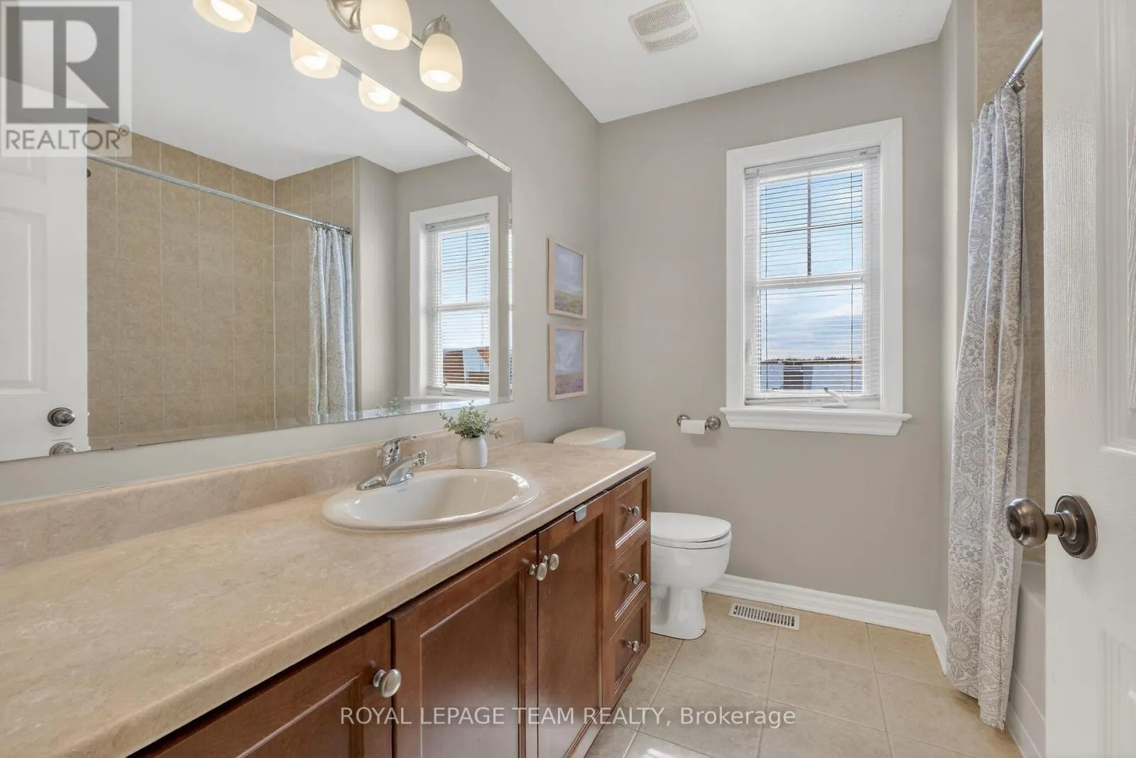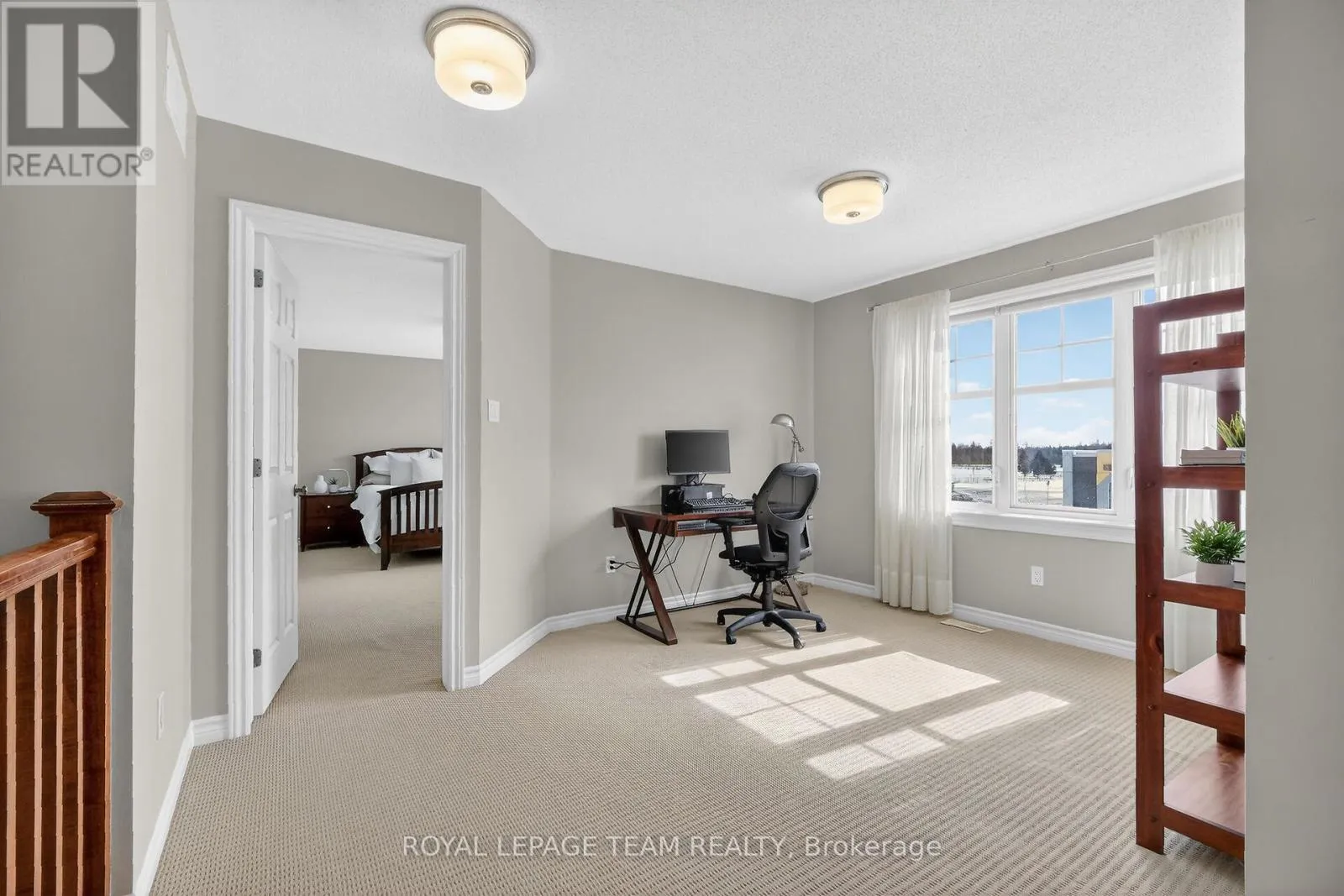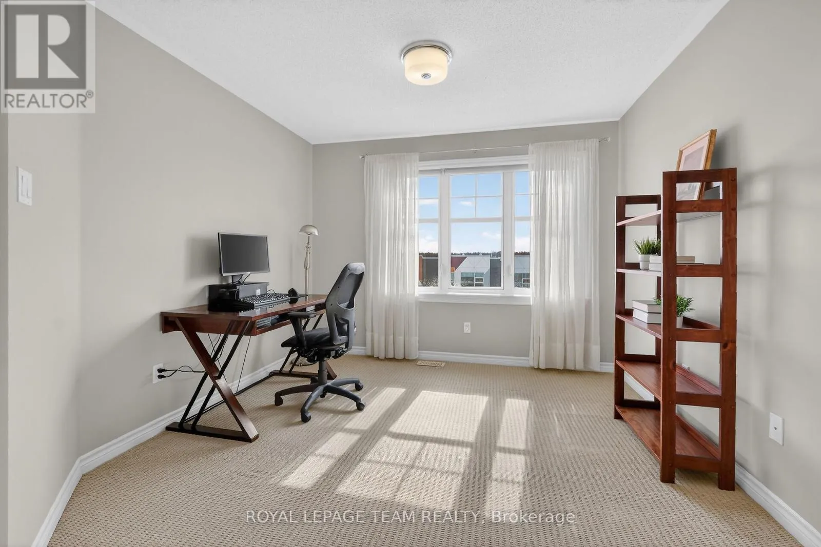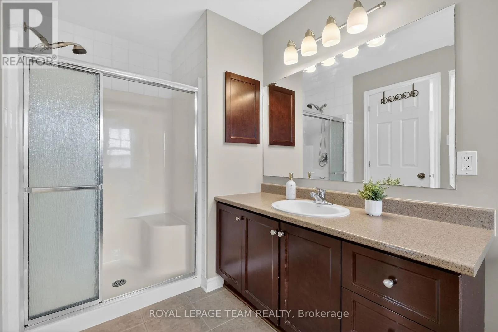 Cross Streets: Leitrim and Kelly Farm. ** Directions: Leitrim Rd to Kelly Farm, left onto Shepody Circle. Welcome to this beautifully maintained and thoughtfully designed townhome, offering an ideal blend of comfort, style, and functionality. End unit townhome featuring a double car garage, this home provides both convenience and exceptional living space for modern families. Step inside to a bright and inviting main floor, highlighted by 9-foot ceilings and rich hardwood flooring throughout. The elegant living room is centered around a natural gas fireplace, creating a warm and welcoming atmosphere perfect for both everyday living and entertaining. The adjoining dining area flows seamlessly into the stunning kitchen with shaker-style cabinetry in a striking wood tone extending to the ceiling, and separate island. Patio doors lead to a fully fenced backyard oasis, surrounded by mature trees for added privacy. Enjoy outdoor living with an interlock patio and interlock walkway. Upstairs, offers a versatile loft space, perfect for a home office, reading nook, or additional family area. The spacious primary bedroom retreat features a walk-in closet and a well appointed 4 piece ensuite bathroom with soaker tub and walk in shower. Two additional generously sized bedrooms and the convenience of second-level laundry and family bathroom complete this level. The fully finished lower level expands your living space with a cozy family room featuring a floor-to-ceiling stone electric fireplace, creating a perfect setting for movie nights or quiet evenings at home. This level also includes a utility room with ample storage, ensuring everything has its place. This home is truly move-in ready and meticulously maintained, with a new roof installed in 2025 for added peace of mind. Close to amenities and walking distance to schools. Note: Driveway fits 4 vehicles plus 2 garage spaces. 3875 sqft Irregular lot (id:27476)