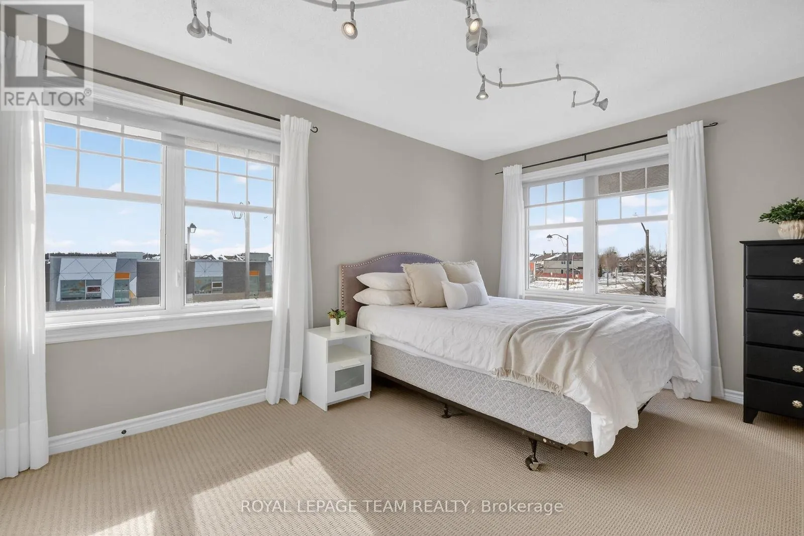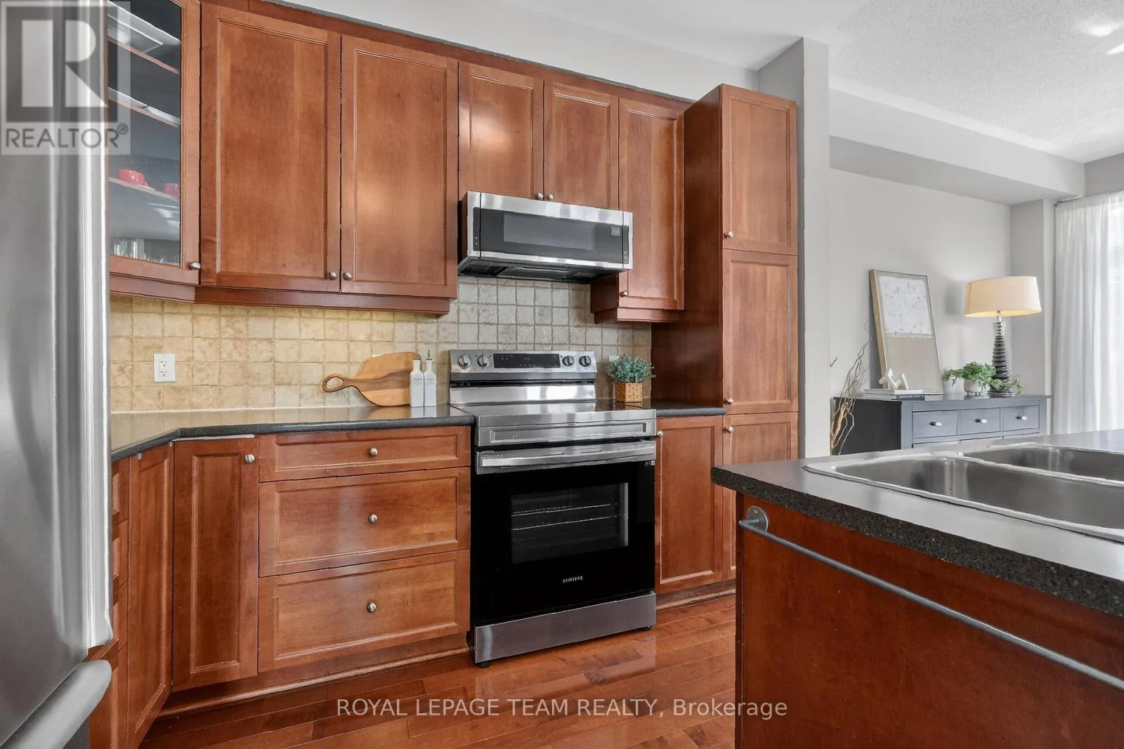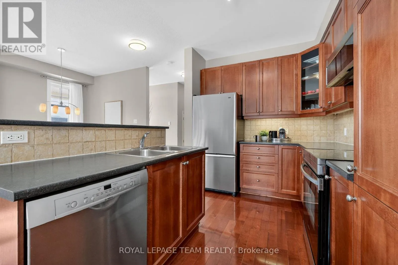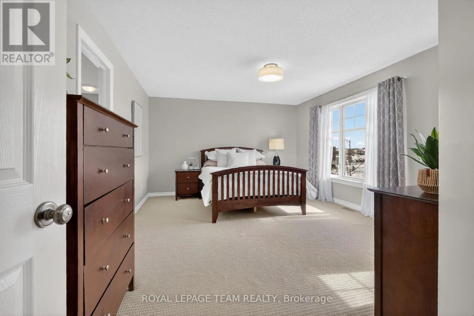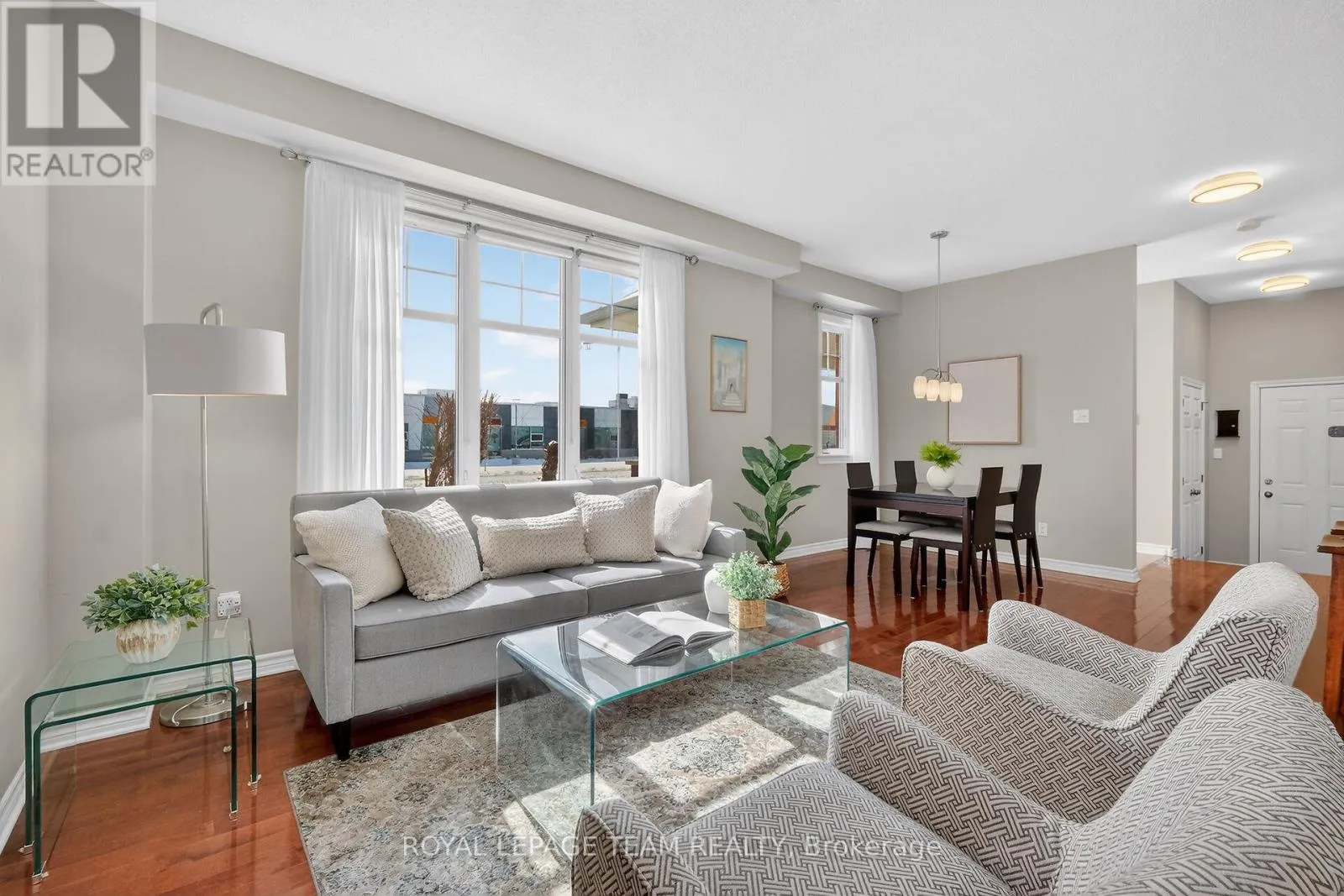 Cross Streets: Leitrim and Kelly Farm. ** Directions: Leitrim Rd to Kelly Farm, left onto Shepody Circle. Welcome to this beautifully maintained and thoughtfully designed townhome, offering an ideal blend of comfort, style, and functionality. End unit townhome featuring a double car garage, this home provides both convenience and exceptional living space for modern families. Step inside to a bright and inviting main floor, highlighted by 9-foot ceilings and rich hardwood flooring throughout. The elegant living room is centered around a natural gas fireplace, creating a warm and welcoming atmosphere perfect for both everyday living and entertaining. The adjoining dining area flows seamlessly into the stunning kitchen with shaker-style cabinetry in a striking wood tone extending to the ceiling, and separate island. Patio doors lead to a fully fenced backyard oasis, surrounded by mature trees for added privacy. Enjoy outdoor living with an interlock patio and interlock walkway. Upstairs, offers a versatile loft space, perfect for a home office, reading nook, or additional family area. The spacious primary bedroom retreat features a walk-in closet and a well appointed 4 piece ensuite bathroom with soaker tub and walk in shower. Two additional generously sized bedrooms and the convenience of second-level laundry and family bathroom complete this level. The fully finished lower level expands your living space with a cozy family room featuring a floor-to-ceiling stone electric fireplace, creating a perfect setting for movie nights or quiet evenings at home. This level also includes a utility room with ample storage, ensuring everything has its place. This home is truly move-in ready and meticulously maintained, with a new roof installed in 2025 for added peace of mind. Close to amenities and walking distance to schools. Note: Driveway fits 4 vehicles plus 2 garage spaces. 3875 sqft Irregular lot (id:27476)