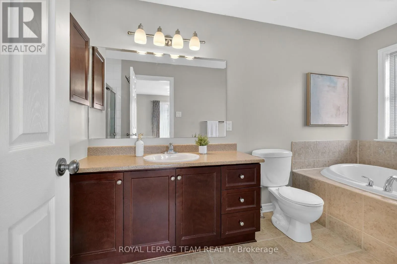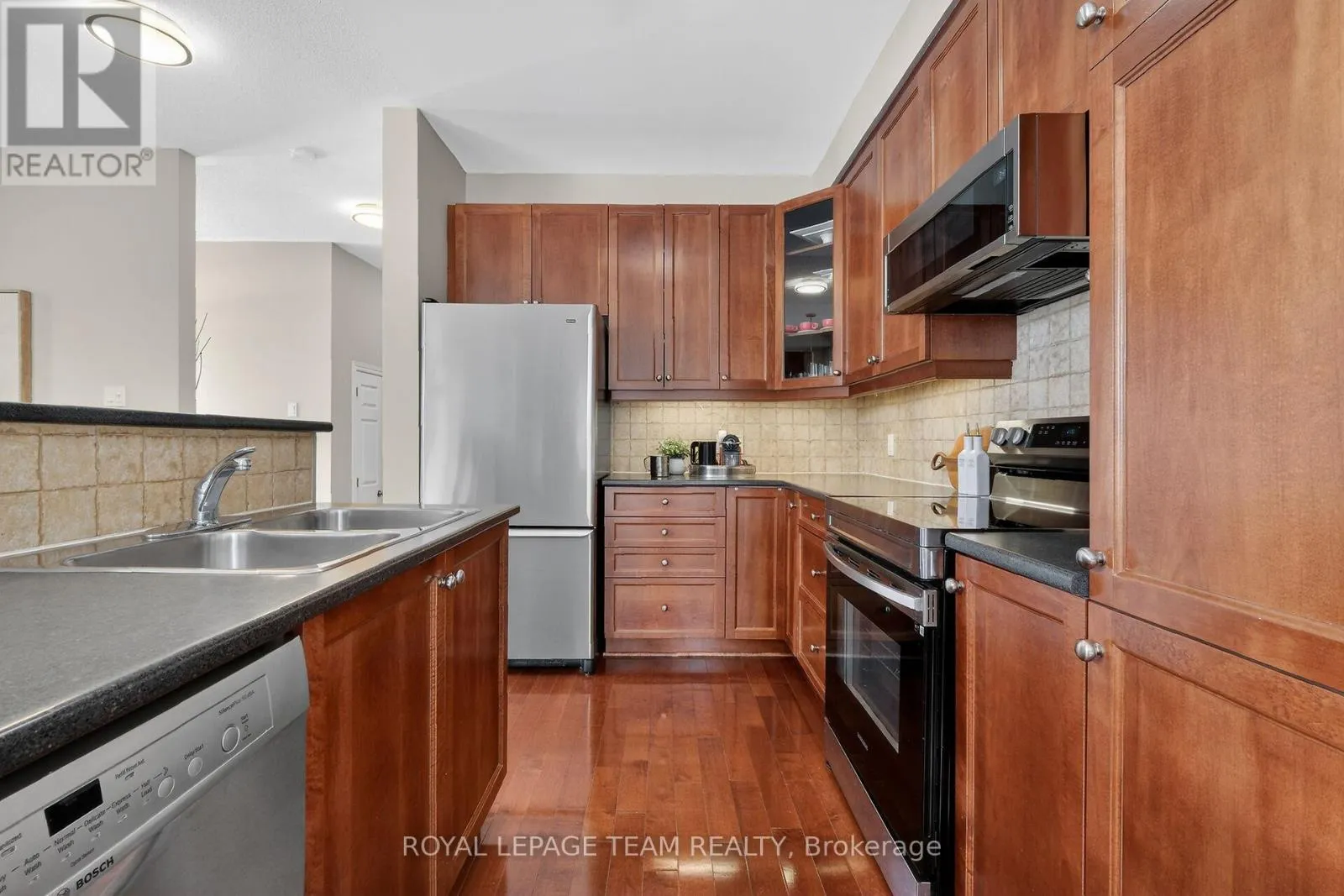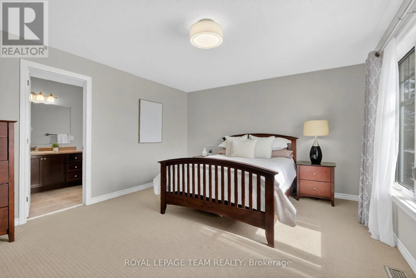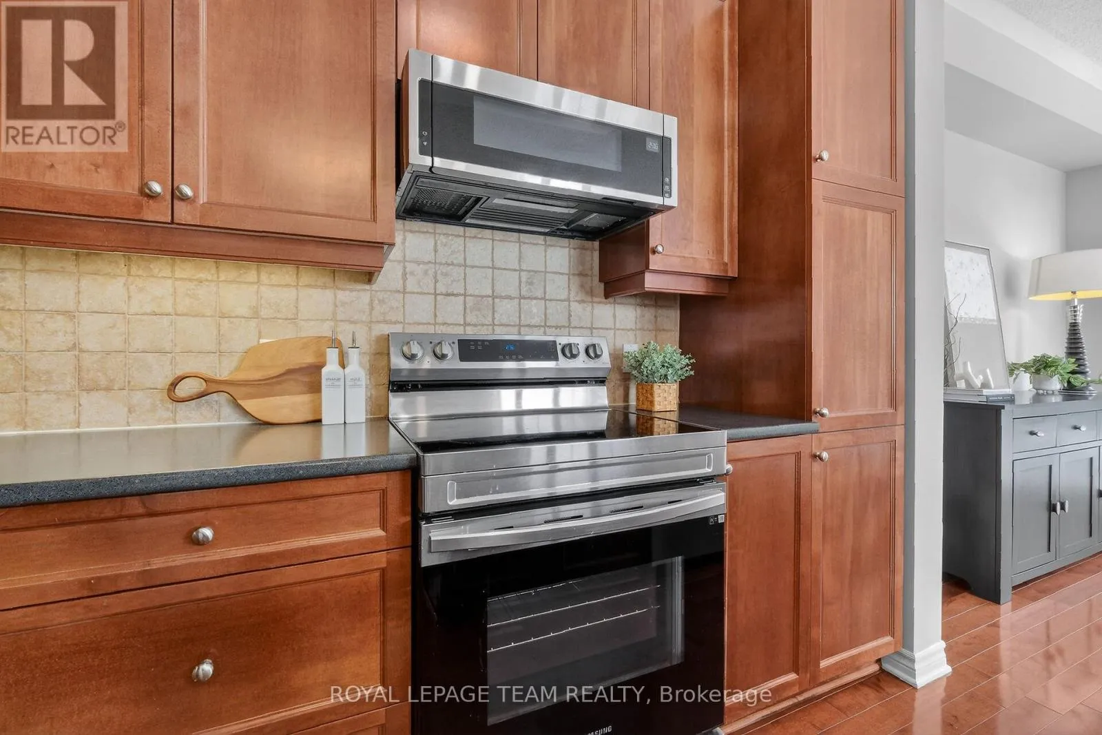 Cross Streets: Leitrim and Kelly Farm. ** Directions: Leitrim Rd to Kelly Farm, left onto Shepody Circle. Welcome to this beautifully maintained and thoughtfully designed townhome, offering an ideal blend of comfort, style, and functionality. End unit townhome featuring a double car garage, this home provides both convenience and exceptional living space for modern families. Step inside to a bright and inviting main floor, highlighted by 9-foot ceilings and rich hardwood flooring throughout. The elegant living room is centered around a natural gas fireplace, creating a warm and welcoming atmosphere perfect for both everyday living and entertaining. The adjoining dining area flows seamlessly into the stunning kitchen with shaker-style cabinetry in a striking wood tone extending to the ceiling, and separate island. Patio doors lead to a fully fenced backyard oasis, surrounded by mature trees for added privacy. Enjoy outdoor living with an interlock patio and interlock walkway. Upstairs, offers a versatile loft space, perfect for a home office, reading nook, or additional family area. The spacious primary bedroom retreat features a walk-in closet and a well appointed 4 piece ensuite bathroom with soaker tub and walk in shower. Two additional generously sized bedrooms and the convenience of second-level laundry and family bathroom complete this level. The fully finished lower level expands your living space with a cozy family room featuring a floor-to-ceiling stone electric fireplace, creating a perfect setting for movie nights or quiet evenings at home. This level also includes a utility room with ample storage, ensuring everything has its place. This home is truly move-in ready and meticulously maintained, with a new roof installed in 2025 for added peace of mind. Close to amenities and walking distance to schools. Note: Driveway fits 4 vehicles plus 2 garage spaces. 3875 sqft Irregular lot (id:27476)