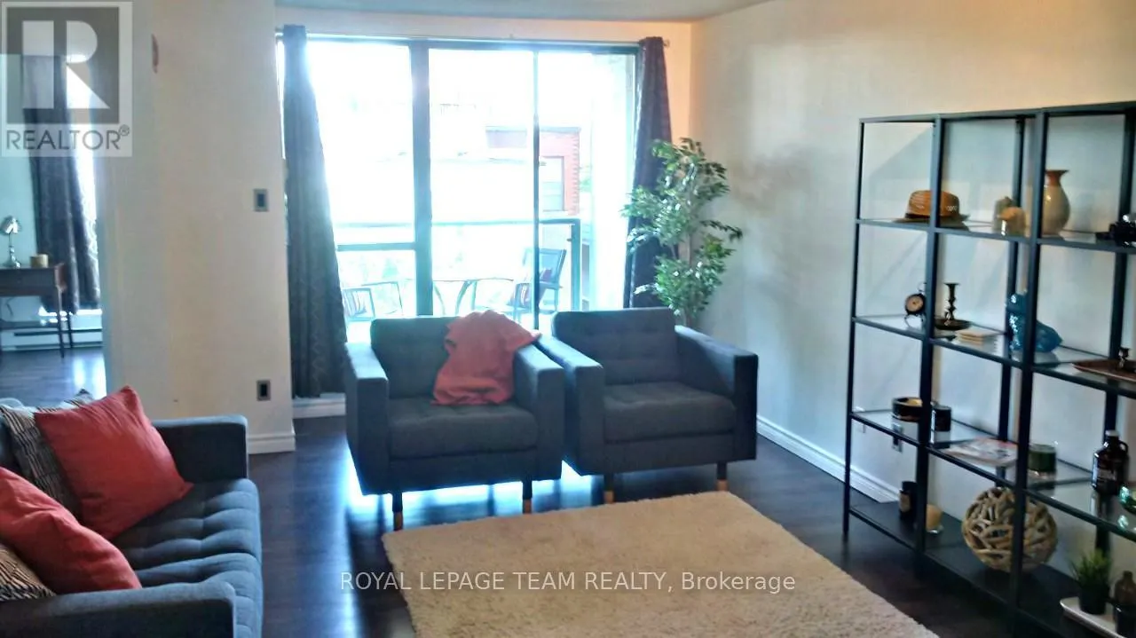 Cross Streets: Sussex Dr & Murray St. ** Directions: Head north on Sussex Dr, right on Murray St. Park on street (metered). Enjoy living in the trendy, historic and vibrant ByWard Market neighbourhood steps to restaurants, shops and cafes, Global Affairs Canada, Parliament, NAC, uOttawa, Ntl Gallery, numerous parks, walking/bike trails and the Ottawa River. Gallery Court Condos provide you with an urban lifestyle right at your door. All is within walking distance... Chic and stylish, this 1-bdr condo lets you entertain in style. Combined lvr/dnr with tall windows/patio doors lead to your private balcony overlooking the Basilica. Kitchen features 4 stainless steel appliances. Bathroom includes stylish vessel sink and storage vanity. In-unit front load laundry. Good size bedroom boasts a double size closet, corner windows and has plenty of room for a home office. Beautiful, easy maintenance dark floors throughout. 1 locker & 1 parking in underground garage for mid-size vehicle included. Great value! (id:27476)