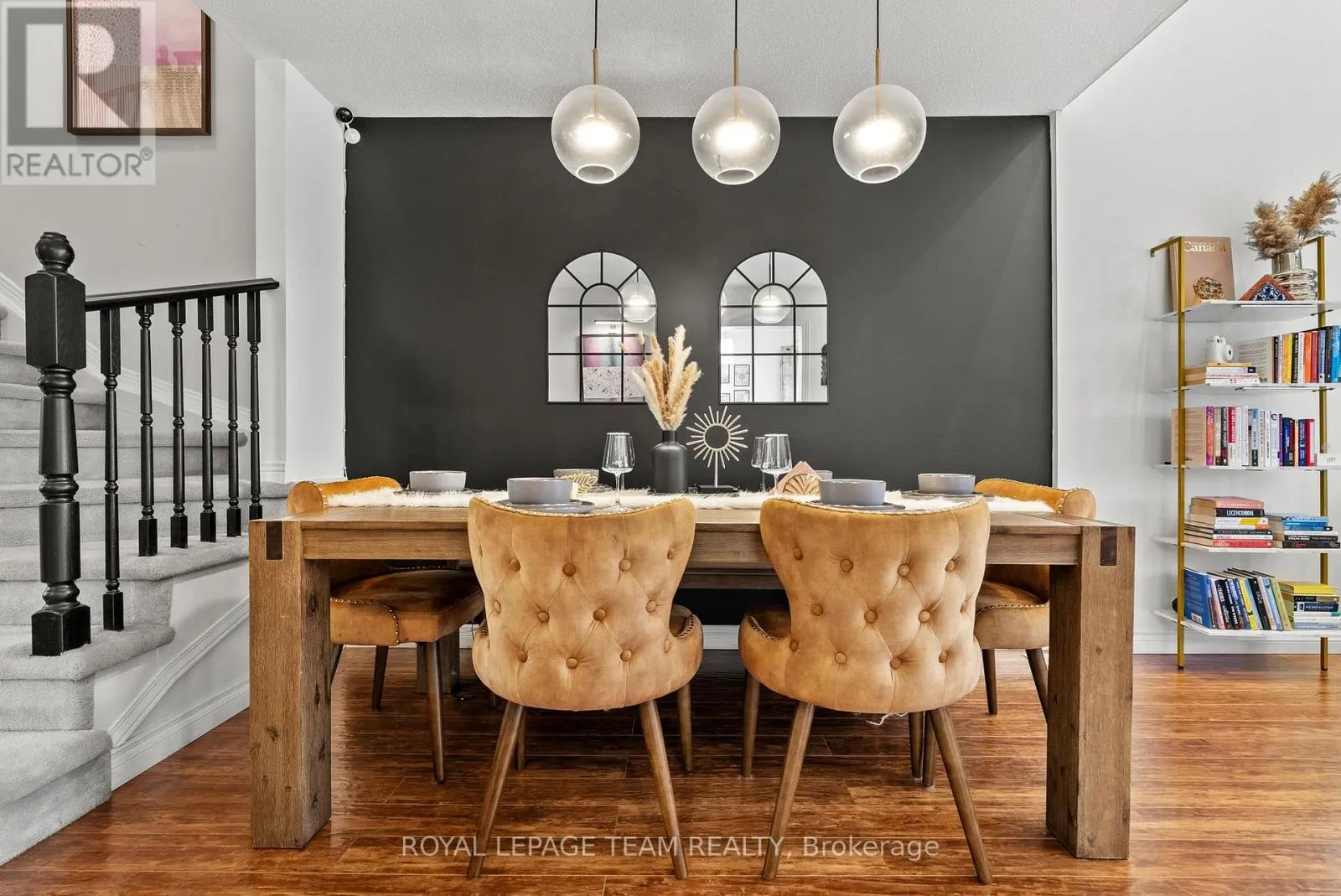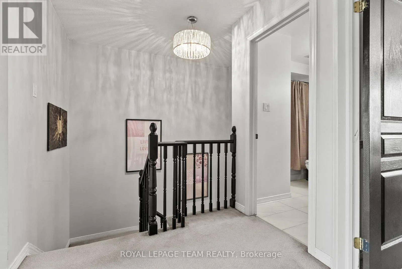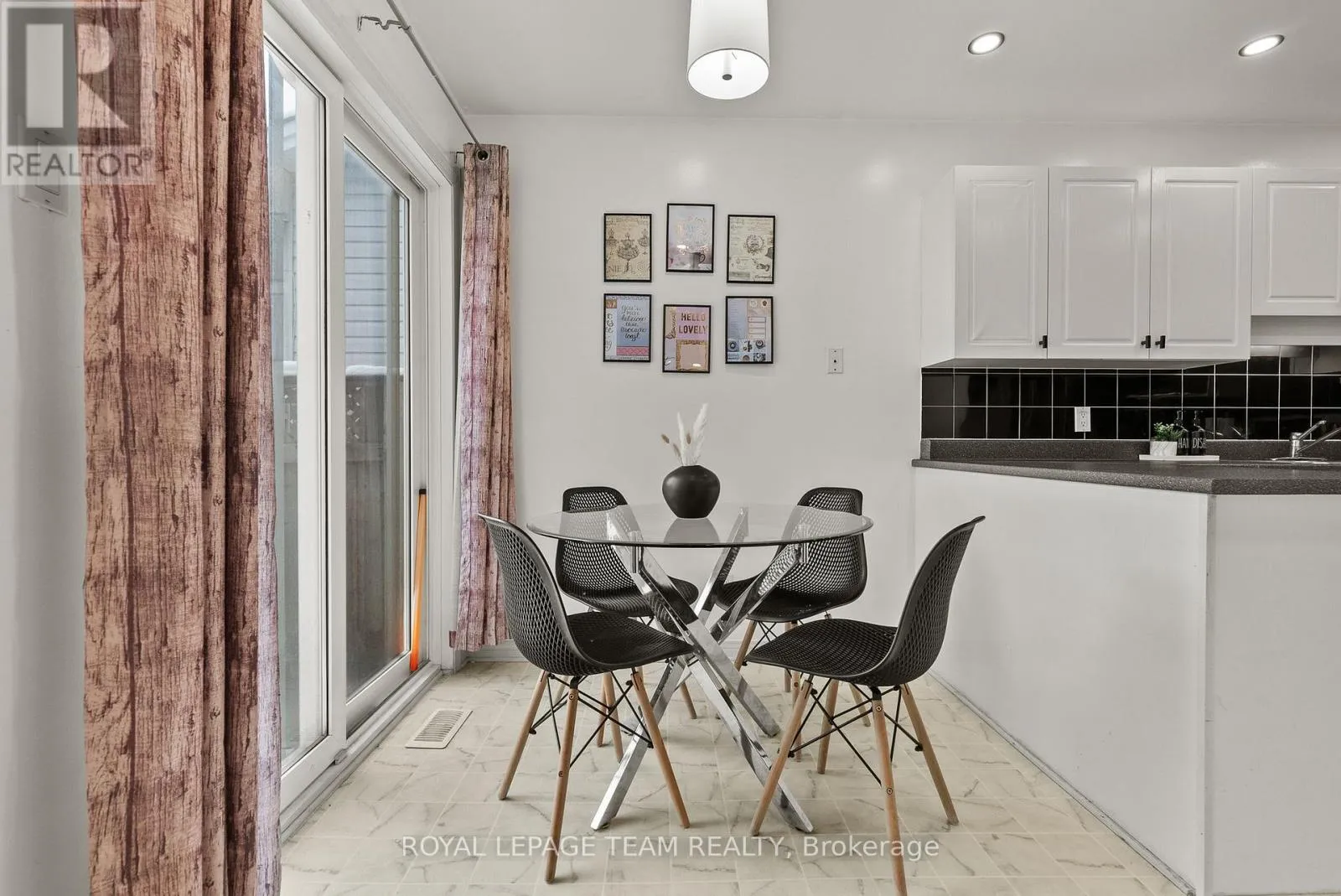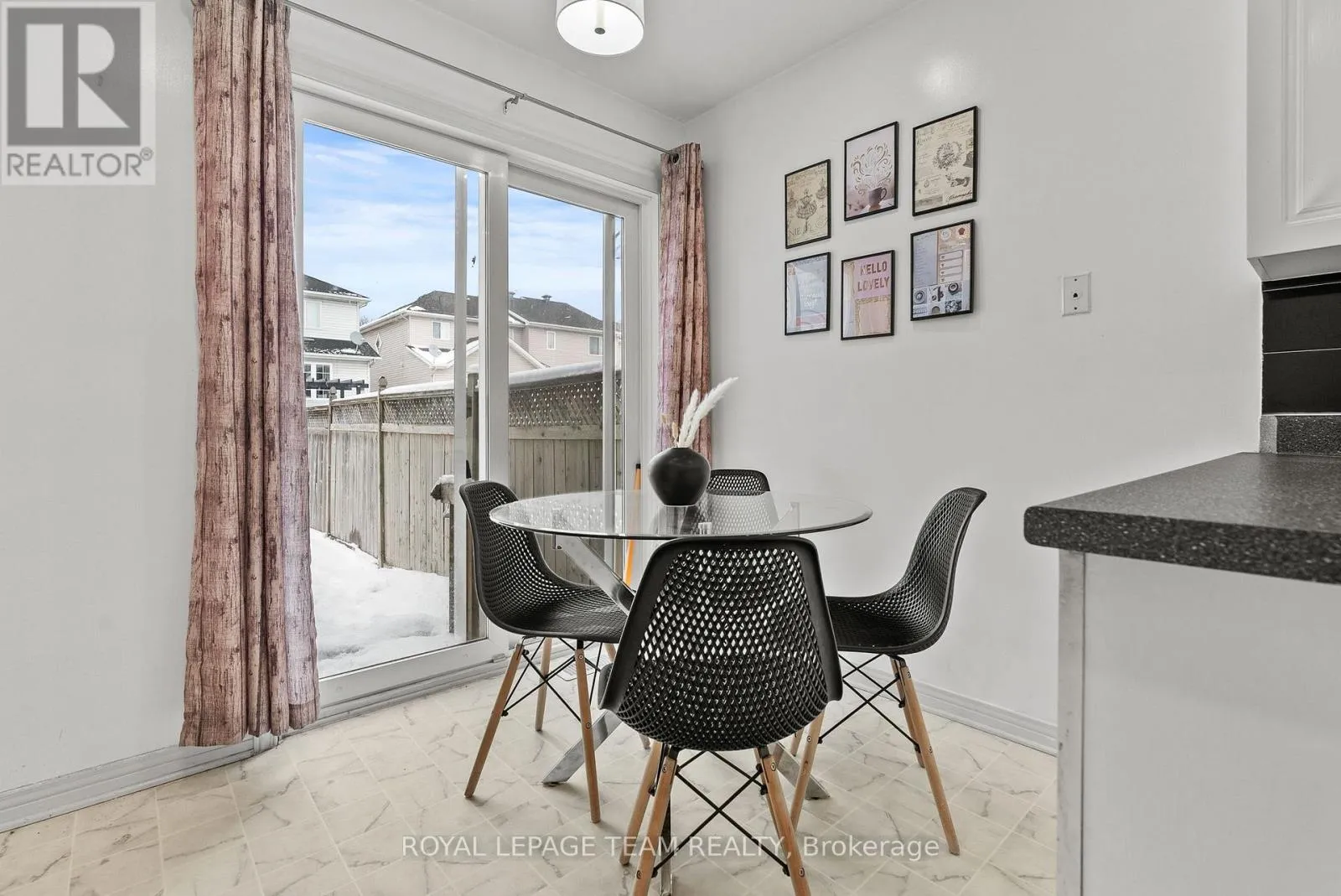 Eagleson Rd south - LEFT onto Bridgestone- RIGHT onto Milner Downs Welcome to this beautifully maintained and tastefully updated freehold townhome in a highly sought-after, family-friendly neighbourhood. This charming Urbandale-built home features a unique layout with soaring ~15 ft vaulted ceilings in the living room, creating a bright and airy space that stands out from typical townhomes. The main level offers a spacious eat-in kitchen, perfect for everyday living and entertaining, along with a warm and inviting living area. Upstairs, you'll find three generously sized bedrooms and a well-appointed main bathroom. The finished basement provides valuable additional living space and includes a full bathroom-ideal for a recreation room, home office, or guest suite. Over the past few years, the home has been thoughtfully refreshed with numerous updates including modern lighting, pot lights, fresh paint, and updated bathroom finishes, making it truly move-in ready. Major updates such as roof (2016) and furnace & A/C (2016) provide added peace of mind. Enjoy the deep lot with a low-maintenance backyard, complete with updated fencing and a deck-perfect for relaxing or entertaining. Conveniently located close to parks, schools (English & French), shopping, and everyday amenities. A fantastic opportunity for first-time buyers, young families, or investors-book your private showing today! (id:27476)