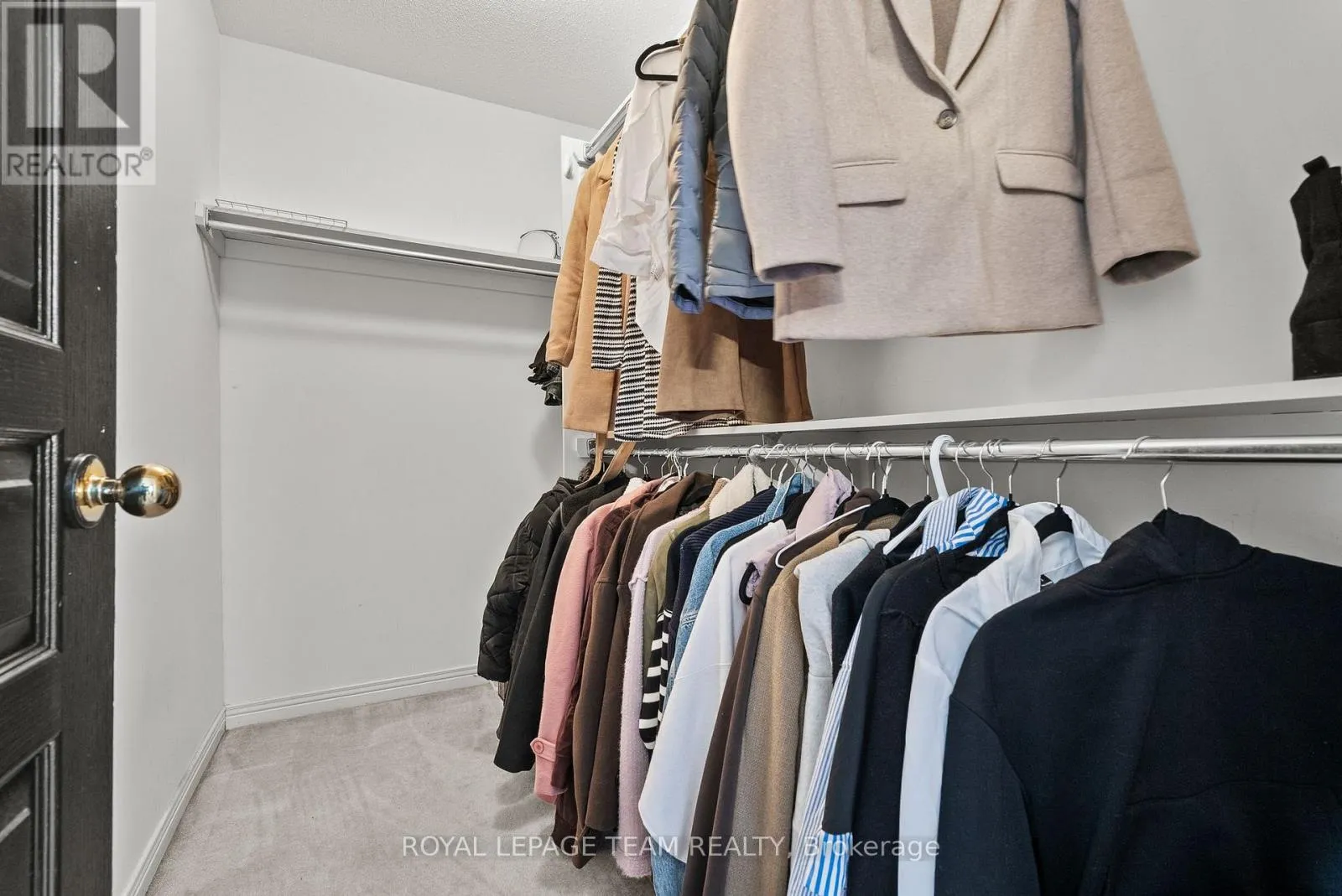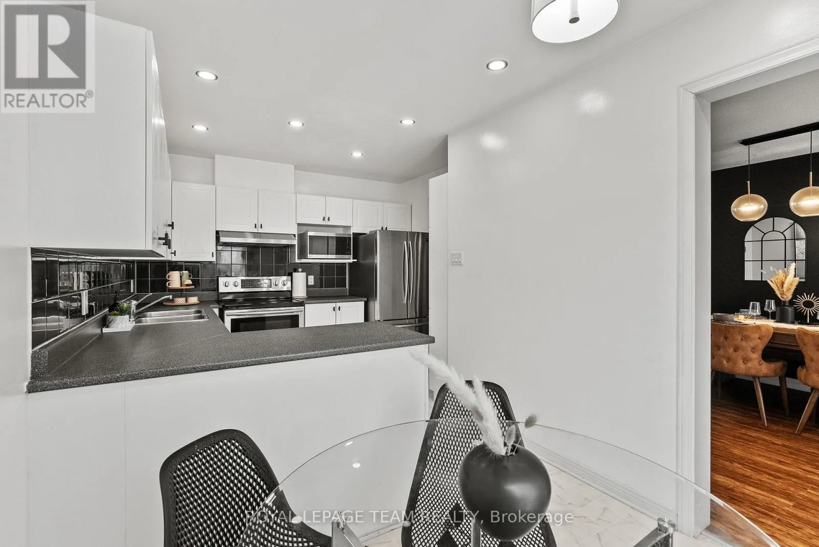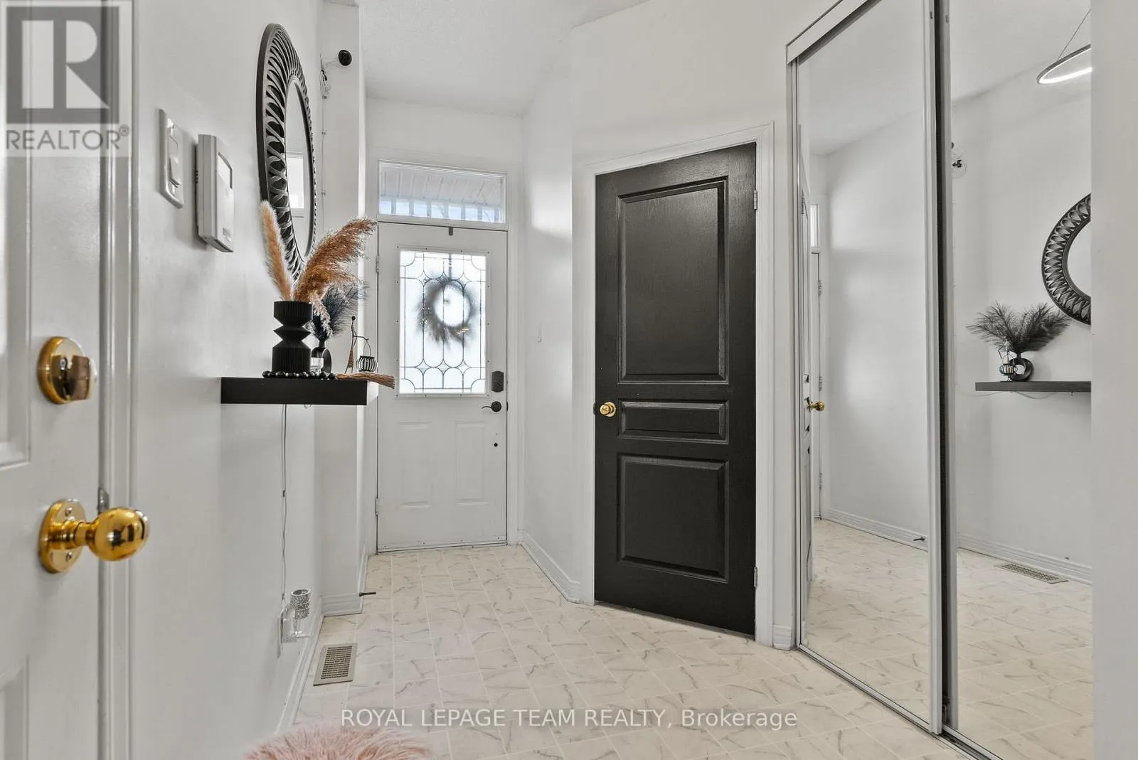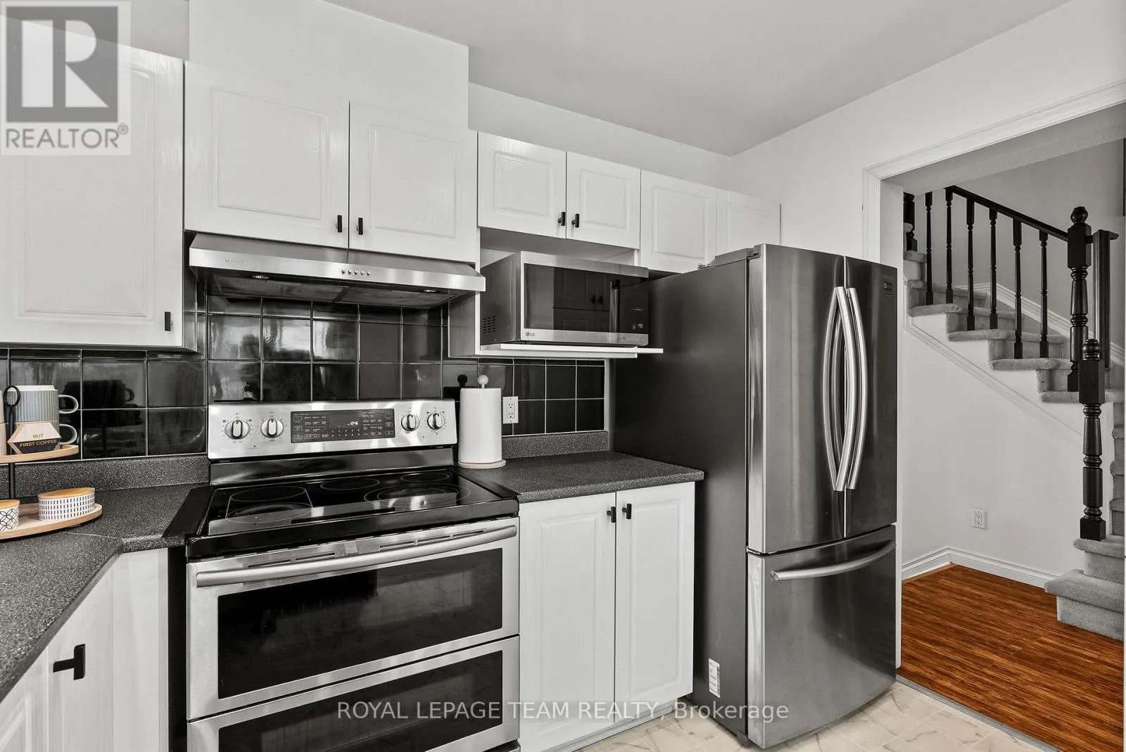 Eagleson Rd south - LEFT onto Bridgestone- RIGHT onto Milner Downs Welcome to this beautifully maintained and tastefully updated freehold townhome in a highly sought-after, family-friendly neighbourhood. This charming Urbandale-built home features a unique layout with soaring ~15 ft vaulted ceilings in the living room, creating a bright and airy space that stands out from typical townhomes. The main level offers a spacious eat-in kitchen, perfect for everyday living and entertaining, along with a warm and inviting living area. Upstairs, you'll find three generously sized bedrooms and a well-appointed main bathroom. The finished basement provides valuable additional living space and includes a full bathroom-ideal for a recreation room, home office, or guest suite. Over the past few years, the home has been thoughtfully refreshed with numerous updates including modern lighting, pot lights, fresh paint, and updated bathroom finishes, making it truly move-in ready. Major updates such as roof (2016) and furnace & A/C (2016) provide added peace of mind. Enjoy the deep lot with a low-maintenance backyard, complete with updated fencing and a deck-perfect for relaxing or entertaining. Conveniently located close to parks, schools (English & French), shopping, and everyday amenities. A fantastic opportunity for first-time buyers, young families, or investors-book your private showing today! (id:27476)
