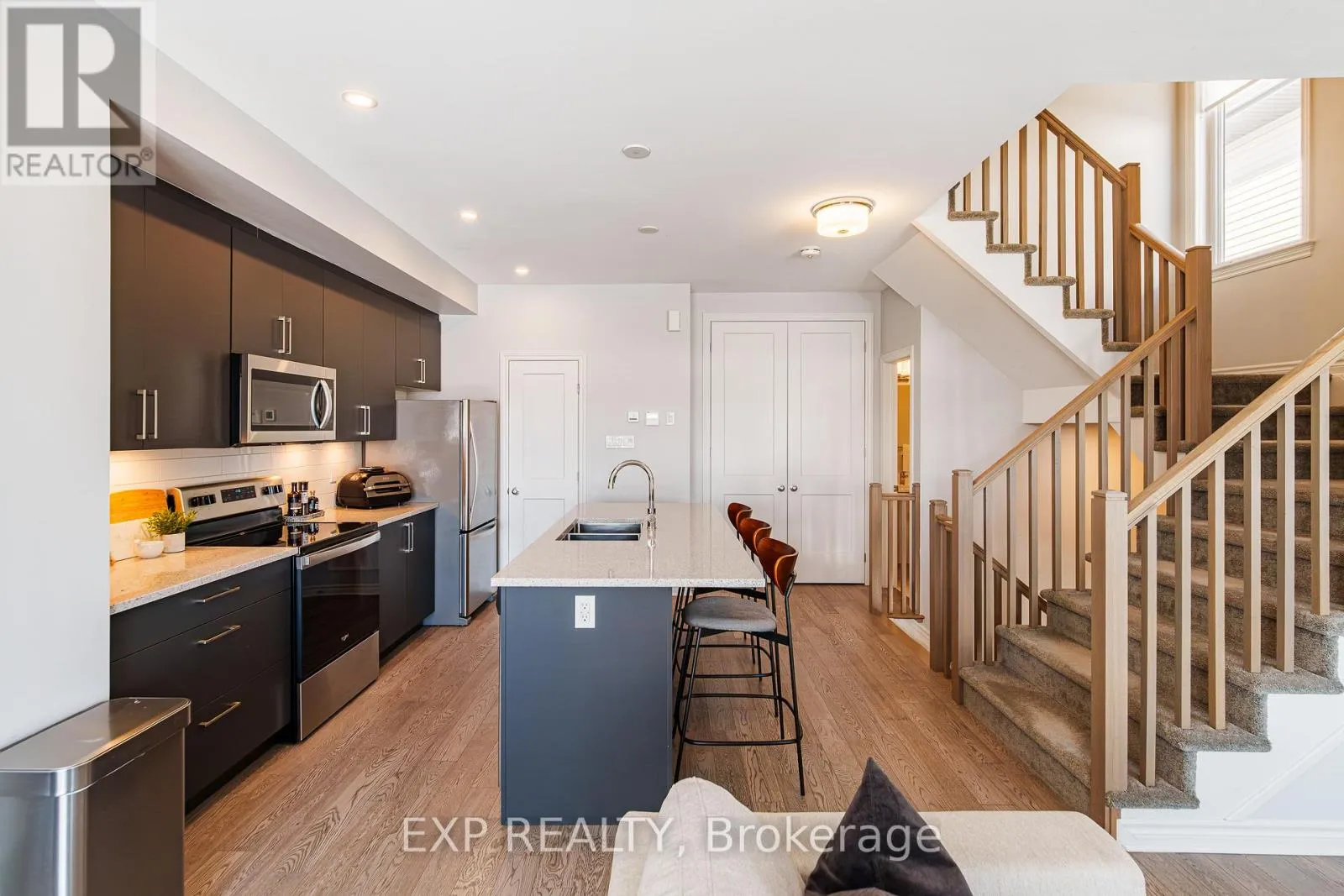 Cambrian road, left on Grand Canal, left on Egret way, left on Pastel way. House will be on right side. Welcome to 215 Pastel Way, a stunning end-unit townhome located in the highly sought-after, family-friendly community of Half Moon Bay in Barrhaven. Known for its parks, top-rated schools, walking trails, and growing list of nearby amenities, this neighbourhood offers the perfect blend of convenience and community living. Just minutes to Strandherd Drive, shopping centers, restaurants, grocery stores, transit, and everything Barrhaven has to offer.This beautifully upgraded end-corner unit offers enhanced privacy and an abundance of natural light, creating a bright and inviting atmosphere throughout. Full of premium upgrades, the home showcases, quartz countertops, and a full suite of modern appliances, smart home features add an extra layer of comfort, efficiency, and everyday convenience.The open-concept main living space is designed for both functionality and entertaining, featuring large windows and direct access to a spacious balcony-perfect for morning coffee or summer BBQs.Upstairs, you'll find a well-appointed primary bedroom complete with a walk-in closet and a spa-inspired ensuite featuring a sleek, oversized shower. A second bedroom offers flexibility for guests, a home office, or a growing family.The home also includes a deep garage, driveway parking for two vehicles, and additional storage space in the basement-providing practicality to match its style.A move-in ready home in one of Barrhaven's most desirable communities-ideal for first-time buyers, professionals, or investors looking for quality, location, and long-term value. (id:27476)