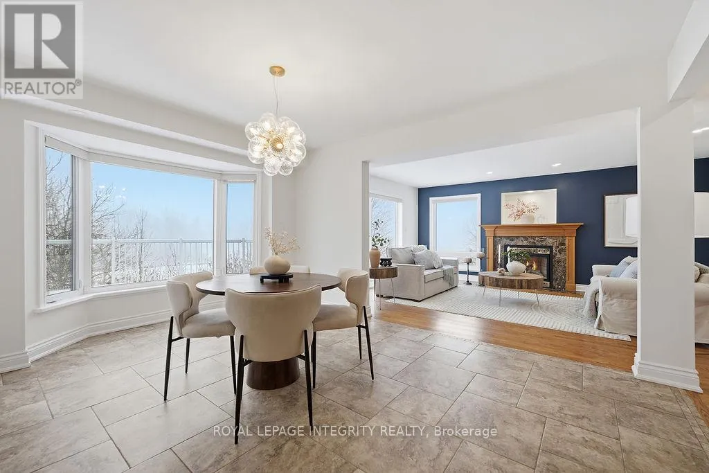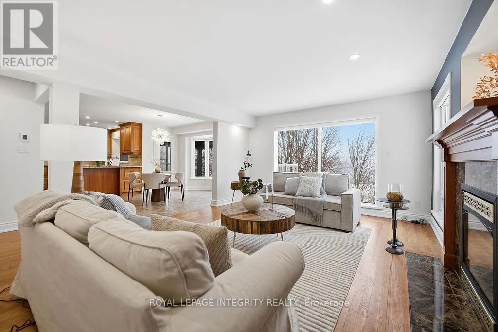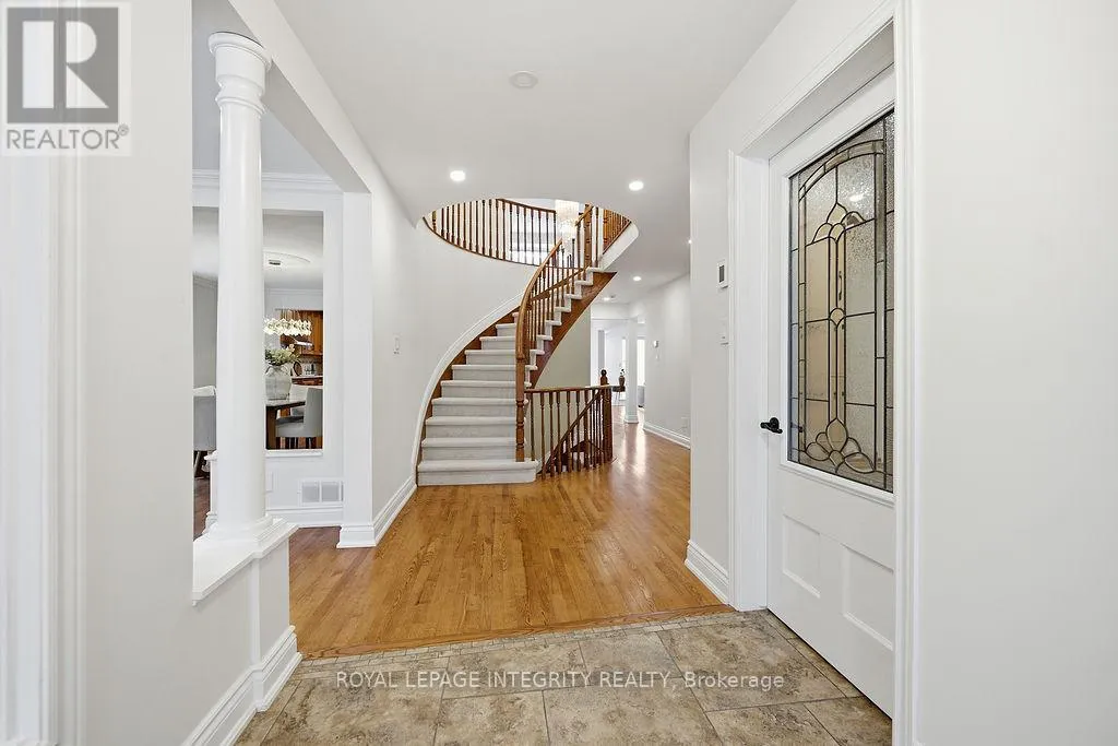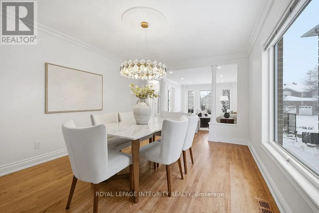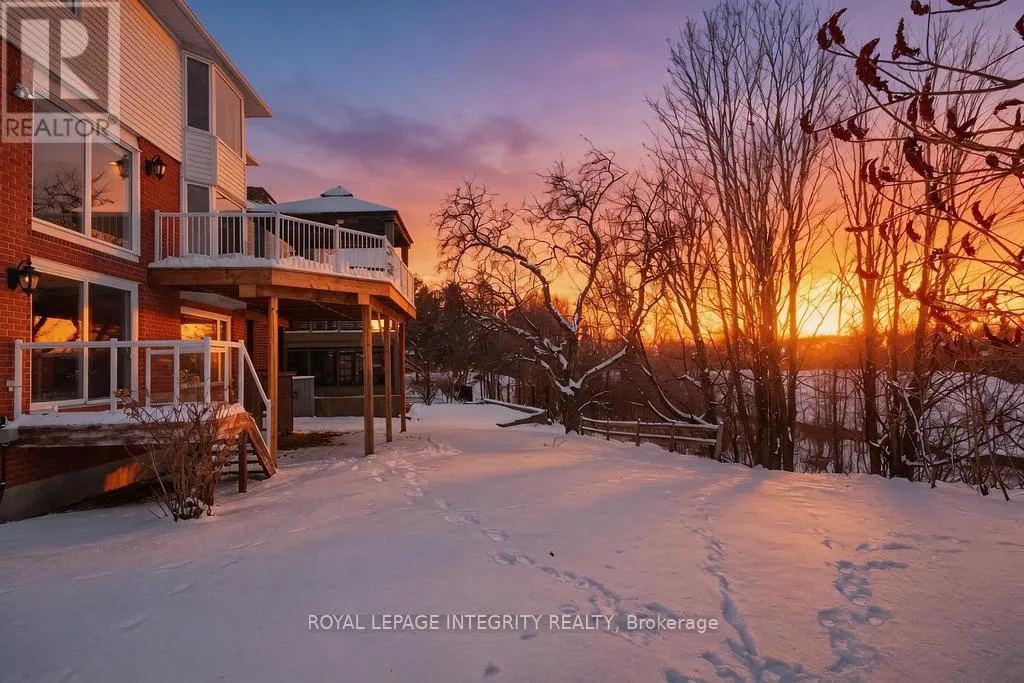 Knudson Dr to Sherk Cr. Rosenfeld Cr runs off of Sherk Cr. Perched on an ELEVATED Premium Pie Lot in the heart of Kanata Lakes, this magnificent property offers an Eagle-Eye view with 180-Degree vistas of rolling greenery and serenity. Spanning over 4,500 sqft of meticulously maintained living space, this home exudes timeless elegance, offers NO REAR NEIGHBORS & WALK-OUT Basement & West-facing oasis. It boasts 5 bdrms & 5 baths including 2 EN-SUITES & Floor-to-Ceiling windows; breathtaking natural views from the massive deck and integrated to the kitchen, nook, family room and the primary ensuite. The grand foyer is anchored by a dramatic 3-Story OPEN Spiral Staircase with a stately timeless Crystal Centerpiece, brilliantly lit by expansive Skylight. The main level showcases Solid Oak HW floors and 2026 designer palettes throughout, illuminated by 2026 Signature lighting, includes an upscale Crystal Chandelier & a contemporary Glass Piece The executive Office boasts bespoke Cherry wood built-ins, the family room is enveloped by serene forest view with a chic gold-inlay fireplace. The chef's kitchen is a masterpiece of custom Cherry cabinetry, granite surfaces, and high-end SS appliances. The primary retreat features a reading nook and a massive 5-pc ensuite, both framed by sweeping views. BRAND NEW Plush Carpeting spans the entire upper level and bsmt, adding an undeniable "Quiet Luxury." The Walk-Out bsmt offers an open plan with a Stone-Accent Fireplace and provides easy potential for a 6th bedroom and full bath conversion for multi-generational use. Significant upgrades since 2010 include Energy Efficiency ATTIC & SIDING & EXTERIOR Wall Insulation, Insulated Garage; Smooth Ceilings throughout (except bdrms); Radiant Heated Flooring in the foyer and kitchen; a Solar Panel System and 4- car laneway. Excellent 200-amp electrical panel Foundation. Situated within a Top-Tier School zone, steps from elite trails, parks, and high-end shopping. This is a One-Of-A-Kind sanctuary crafted for the most sophisticated lifestyle. (id:27476)