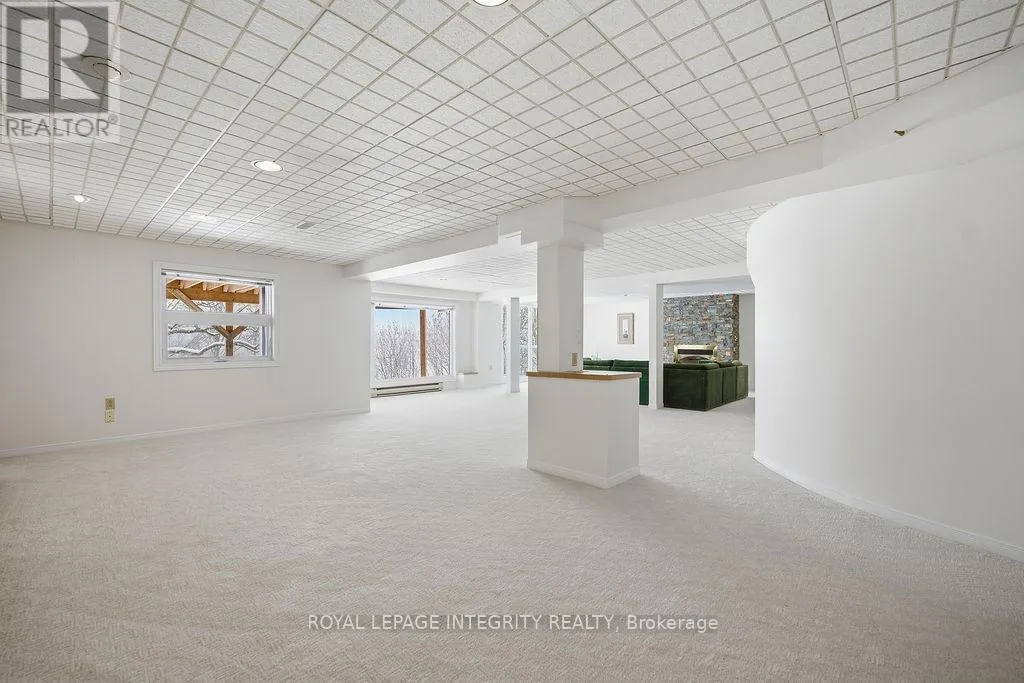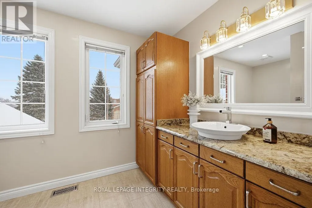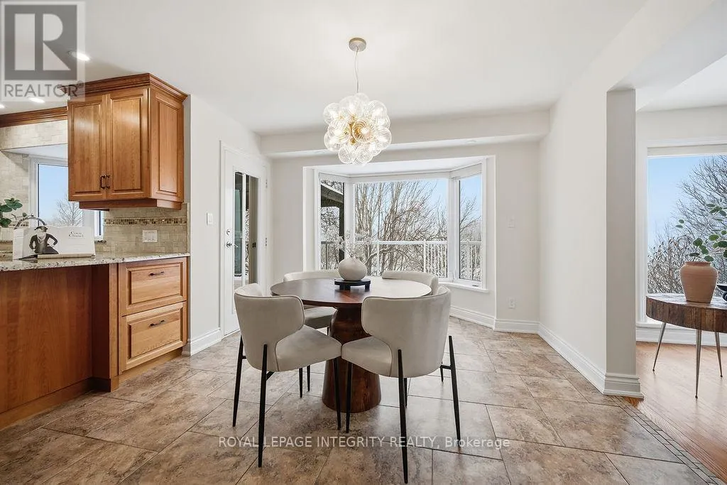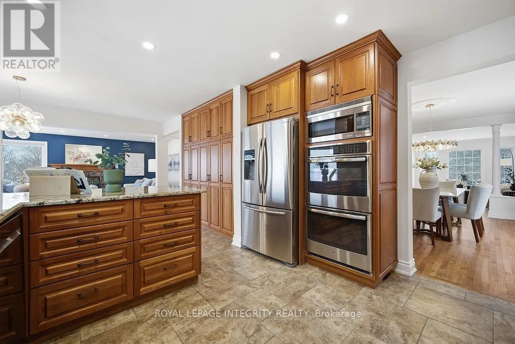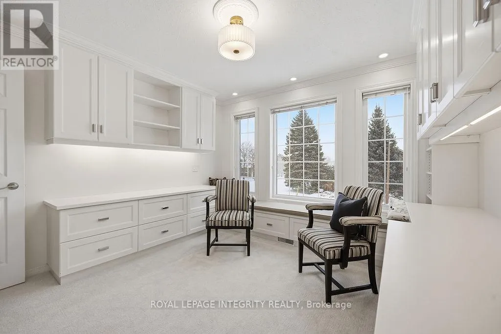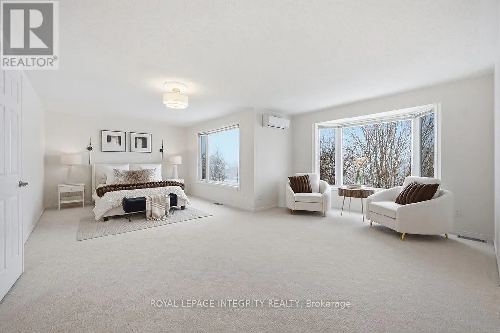 Knudson Dr to Sherk Cr. Rosenfeld Cr runs off of Sherk Cr. Perched on an ELEVATED Premium Pie Lot in the heart of Kanata Lakes, this magnificent property offers an Eagle-Eye view with 180-Degree vistas of rolling greenery and serenity. Spanning over 4,500 sqft of meticulously maintained living space, this home exudes timeless elegance, offers NO REAR NEIGHBORS & WALK-OUT Basement & West-facing oasis. It boasts 5 bdrms & 5 baths including 2 EN-SUITES & Floor-to-Ceiling windows; breathtaking natural views from the massive deck and integrated to the kitchen, nook, family room and the primary ensuite. The grand foyer is anchored by a dramatic 3-Story OPEN Spiral Staircase with a stately timeless Crystal Centerpiece, brilliantly lit by expansive Skylight. The main level showcases Solid Oak HW floors and 2026 designer palettes throughout, illuminated by 2026 Signature lighting, includes an upscale Crystal Chandelier & a contemporary Glass Piece The executive Office boasts bespoke Cherry wood built-ins, the family room is enveloped by serene forest view with a chic gold-inlay fireplace. The chef's kitchen is a masterpiece of custom Cherry cabinetry, granite surfaces, and high-end SS appliances. The primary retreat features a reading nook and a massive 5-pc ensuite, both framed by sweeping views. BRAND NEW Plush Carpeting spans the entire upper level and bsmt, adding an undeniable "Quiet Luxury." The Walk-Out bsmt offers an open plan with a Stone-Accent Fireplace and provides easy potential for a 6th bedroom and full bath conversion for multi-generational use. Significant upgrades since 2010 include Energy Efficiency ATTIC & SIDING & EXTERIOR Wall Insulation, Insulated Garage; Smooth Ceilings throughout (except bdrms); Radiant Heated Flooring in the foyer and kitchen; a Solar Panel System and 4- car laneway. Excellent 200-amp electrical panel Foundation. Situated within a Top-Tier School zone, steps from elite trails, parks, and high-end shopping. This is a One-Of-A-Kind sanctuary crafted for the most sophisticated lifestyle. (id:27476)