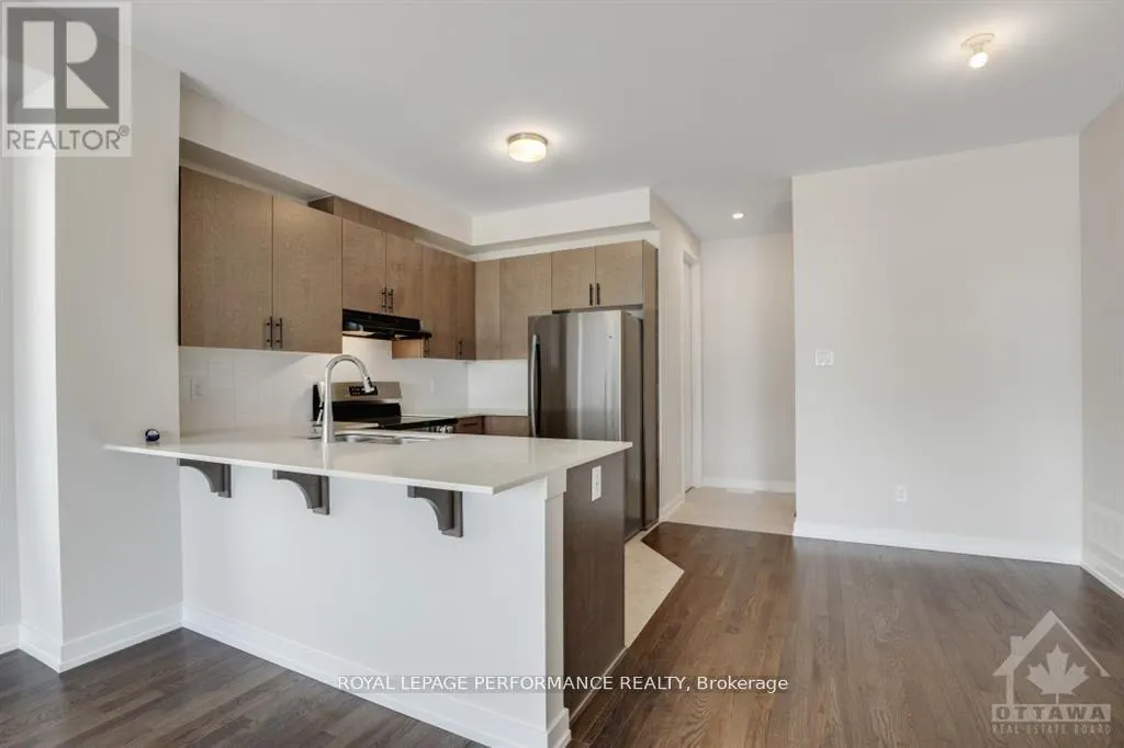 Heading west down Perth turn right onto Oldenburg Avenue Flooring: Carpet over hardwood on main living areas, hardwood in dining and living spaces, ceramic in bathrooms, and tile accents in kitchen. Step into luxury with this stunning 2024 build, complete with all available builder upgrades. The open-concept main floor features 9-ft ceilings, a bright living and dining area, and a gourmet kitchen with generous cabinets, granite countertops, a tile backsplash, stainless steel appliances, and a breakfast bar. Upstairs, enjoy a spacious loft, a balcony, an ensuite with a walk-in shower, convenient laundry, a second full bath, and two large secondary bedrooms. The finished basement provides ample space for entertainment and storage.Practicality meets convenience with an attached double car garage-no snow removal before your commute! Located near Independent Grocers, Tim Hortons, Subway, pharmacies, banks, restaurants, shops, and gas stations. Just 15 minutes west of Barrhaven's Costco and 8-10 minutes south of Kanata for additional shopping and amenities. (id:27476)
