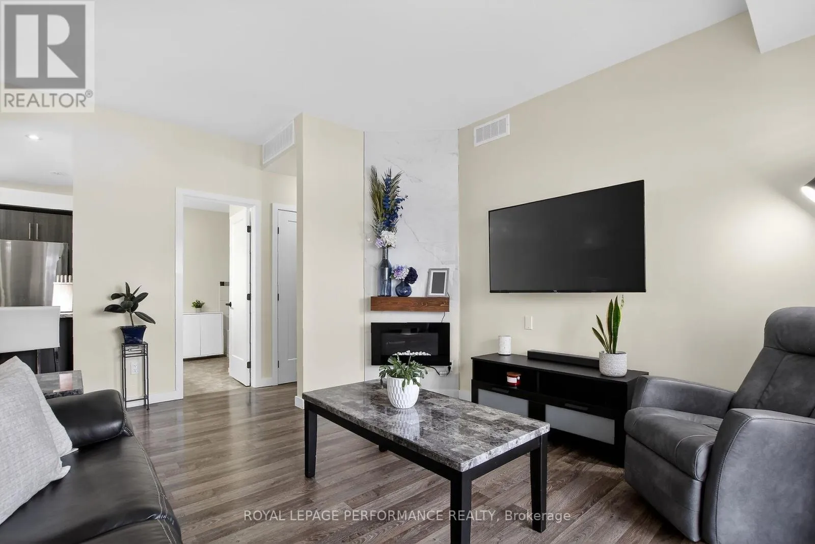 Cross Streets: Fraser Fields way & Strandherd. ** Directions: Strandherd to Fraser Fields Way, right onto Harthill Way. Welcome to this beautifully updated 2-bedroom, 1-bathroom condo, perfect for first-time buyers, downsizers, or investors looking for MAINTENANCE-FREE living with LOW CONDO FEES. This bright and inviting unit features modern finishes throughout, including granite countertops, upgraded flooring, contemporary doors and fixtures, and a stylish electric fireplace feature wall. The unit has a functional layout designed for comfortable living and a move-in-ready feel, with spacious bedrooms that provide plenty of room to relax and unwind. Located in a highly desirable area at the end of a cul-de-sac, you'll appreciate the convenience of nearby amenities, shopping, transit, and green spaces - all just minutes away. This property offers exceptional value and affordability without compromising on location or quality. Don't miss your opportunity to own this turnkey condo in a fantastic neighbourhood just minutes from the highway. (id:27476)