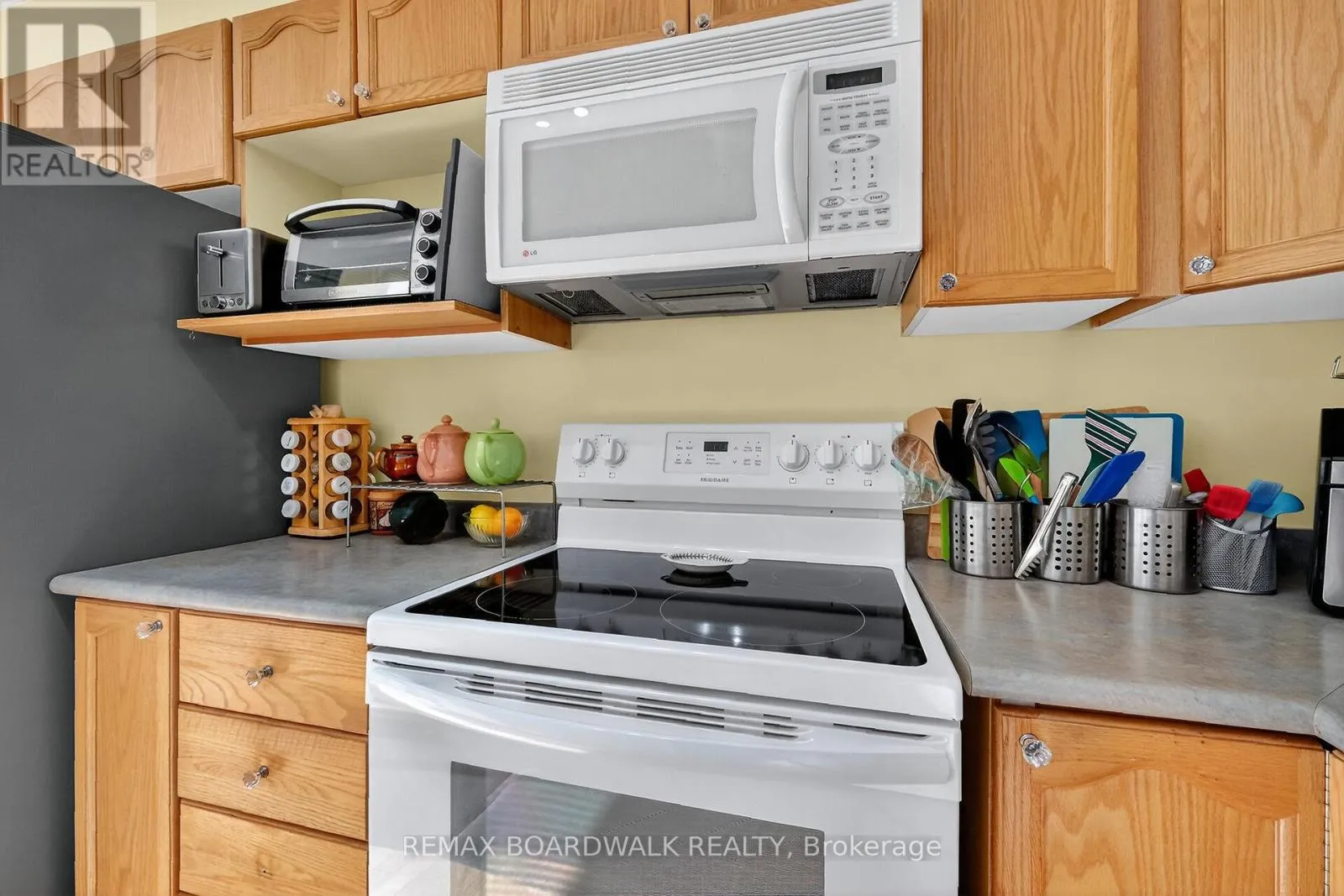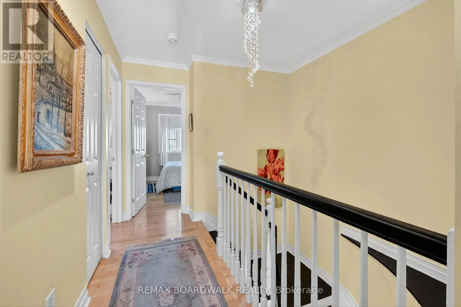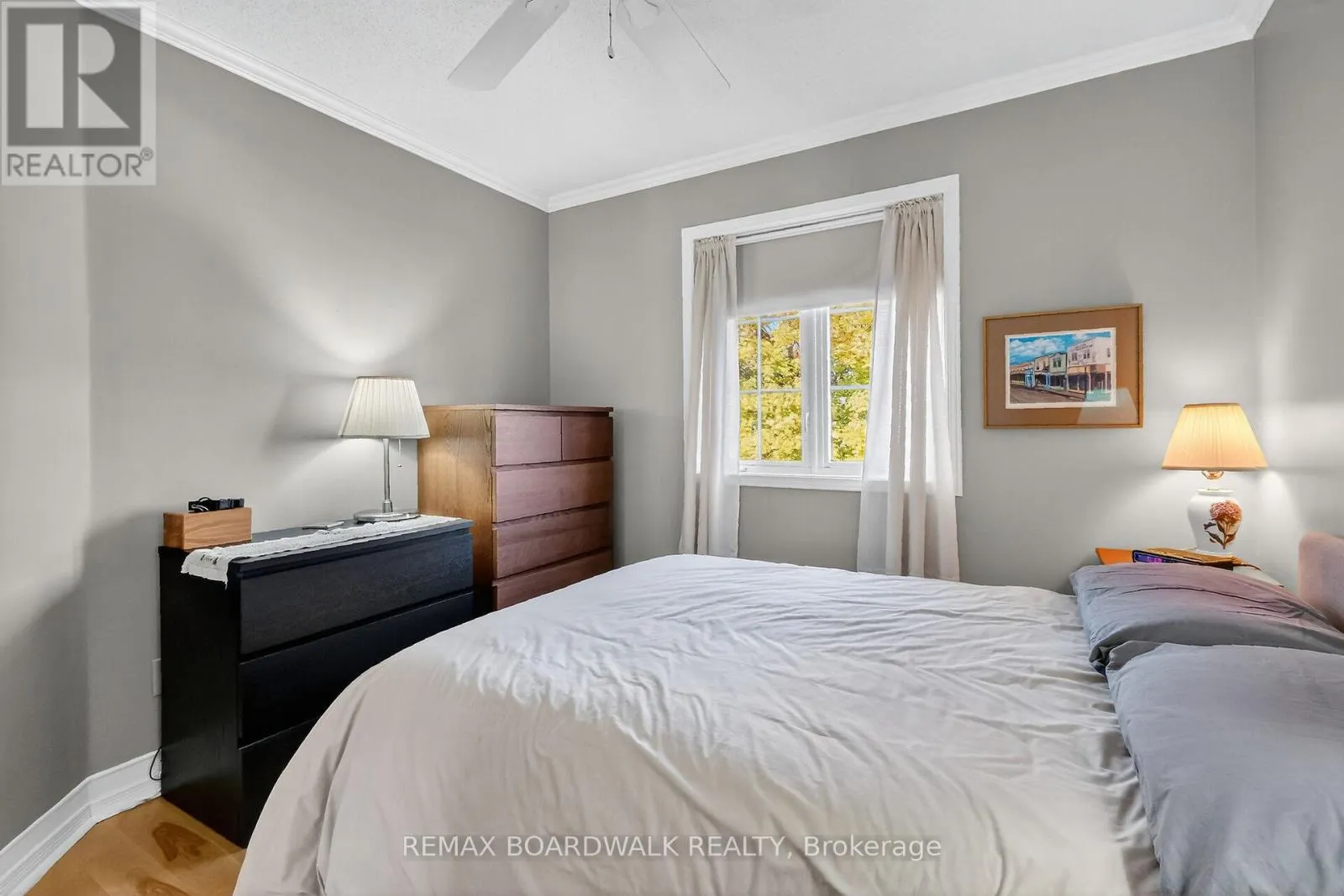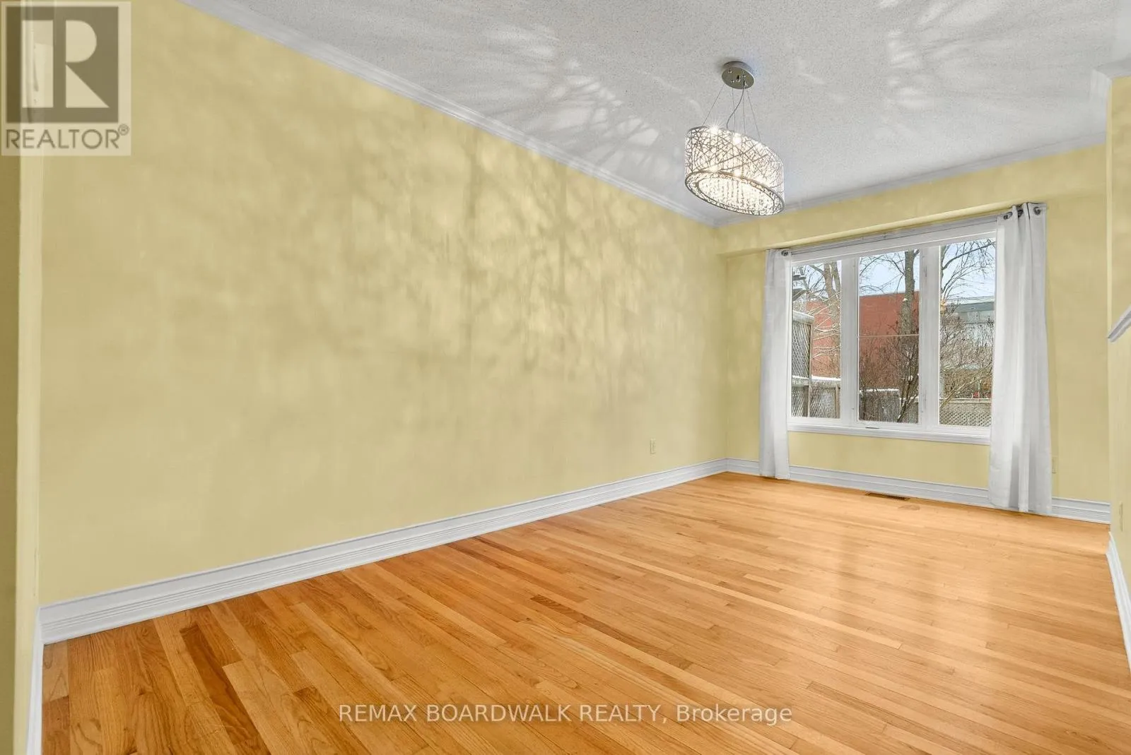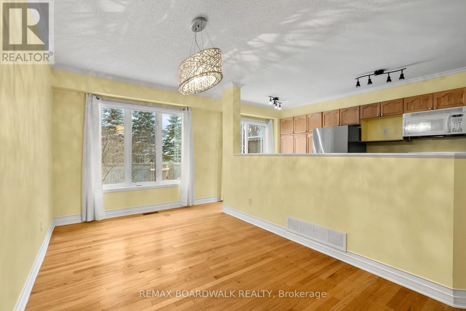 Cross Streets: Montreal Road and Rue de L'Eglise. ** Directions: This 1 street enclave is located just off Montreal Road and Rue de L'Eglise. Easy access to transit and shopping. Lovely townhome situated on a quiet crescent surrounded by young families. This well-maintained property backs onto the park and recreation area of the St. Laurent Complex with no rear neighbours and full southern exposure. Enjoy direct access to green space and community amenities including a pool, library, skating rink, gyms, and more. Pride of ownership shows throughout. The original owners made thoughtful modifications at construction, adding extra space to the dining and kitchen areas. Hardwood flooring runs throughout the main and upper levels. The main bathroom features a beautiful skylight, bringing in plenty of natural light. Step outside to a private, low-maintenance backyard with lovely landscaping and open views - the perfect spot to relax or entertain. The unfinished basement is framed and ready to be completed as a future family room. A bright, cheerful home in a great community close to parks, schools, and transit. (id:27476)