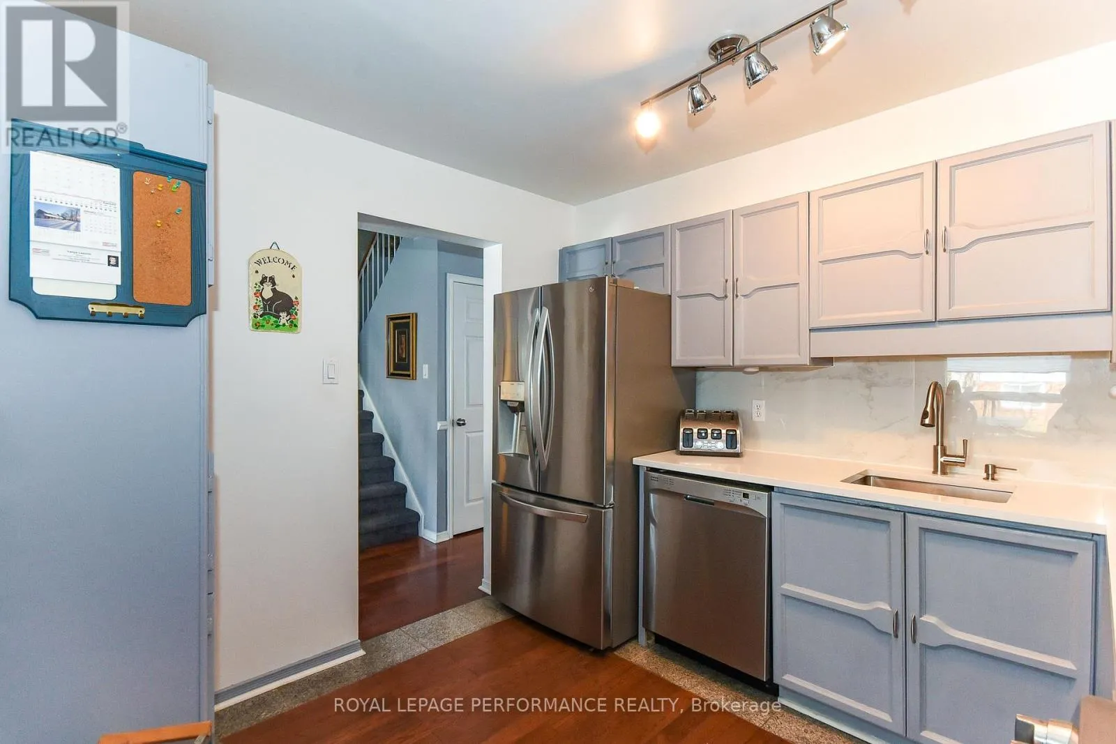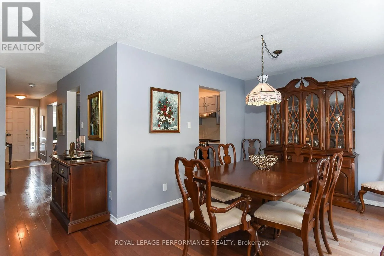 Cross Streets: Gillespie Crescent. ** Directions: Uplands Drive to Gillespie Crescent, to Versailles Private. Move -in ready executive townhouse with three bedrooms and three bathrooms in the desirable Chateaus of Hunt Club. Well-maintained and thoughtfully upgraded, this home offers a perfect blend of location, space, and comfort. The main level features a welcoming foyer with ceramic tiles and a functional family room with a bay window and built-in bookshelf. The spacious formal living and dining area includes a wood-burning fireplace, gleaming hardwood floors, and a patio door leading to a sun-filled backyard. The kitchen has been modernized with stainless steel appliances, quartz countertops, and a new backsplash. The look is complemented by a stylish first-floor powder room. The primary suite is exceptionally large, featuring a walk-in closet and a renovated ensuite with a shower, granite countertops, and heated floors. Two additional well-sized bedrooms and a second full bathroom with a bathtub and granite countertop provide ample space for family or guests. The lower level (4.21m X 12m) offers numerous possibilities for customization. The attached garage has direct access to the backyard. Great property for anyone looking for a stylish, low maintenance place without compromising the space. Nestled in a quiet, lovely park-like setting, close to all amenities. (id:27476)