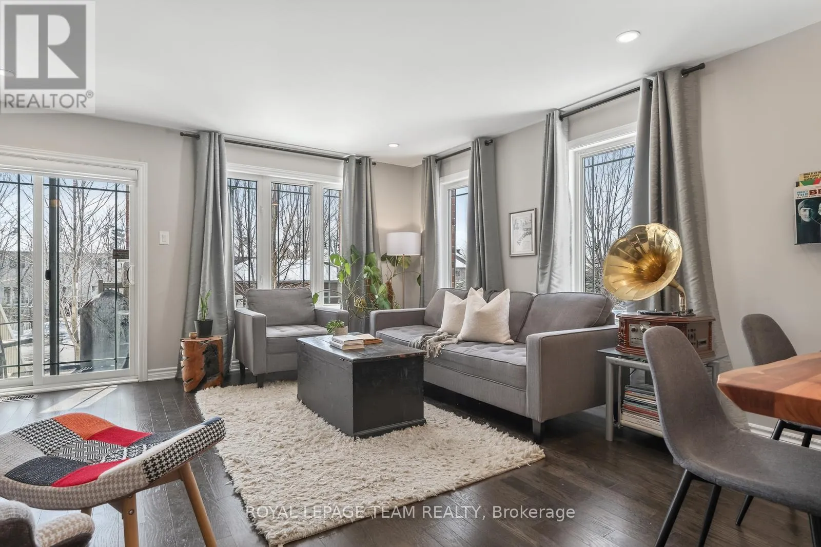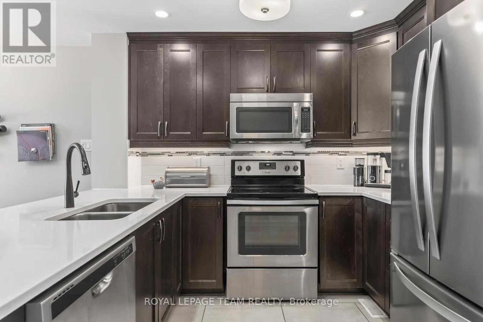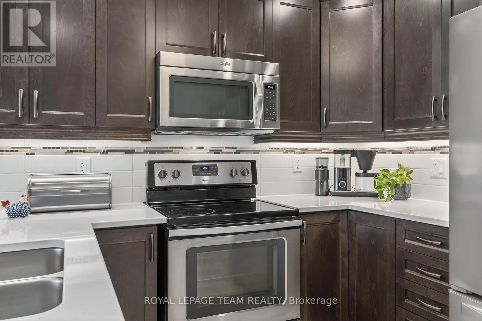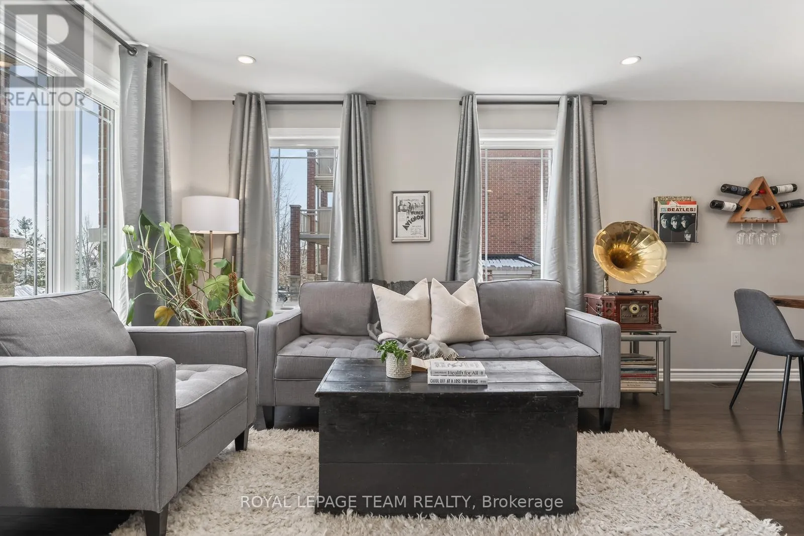 Cross Streets: Montreal Road and Aviation Parkway. ** Directions: From Montreal Rd, turn onto LeBoutillier Ave, turn onto Danaca Private. Welcome to 602 Danaca Private, a beautifully maintained end-unit offering exceptional natural light, modern finishes, and versatile living spaces. Built in 2017 and upgraded with the developer's premium options throughout, this bright unit features an inviting open-concept main floor with rich hardwood floors, large windows, and a stylish living area highlighted by a feature wall and access to a private balcony. The kitchen impresses with quartz countertops, stainless steel appliances, abundant cabinetry, and bar seating that is ideal for entertaining. A flexible front room offers the perfect space for a home office or studio. The bedroom level features a beautiful primary bedroom and a spacious guest suite, each with their own luxurious full ensuite, plus convenient laundry and excellent storage. End-unit exposure brings light from multiple sides. Parking included. Close to NCC trails, parks, transit, Montreal Road amenities, and just minutes to downtown. (id:27476)