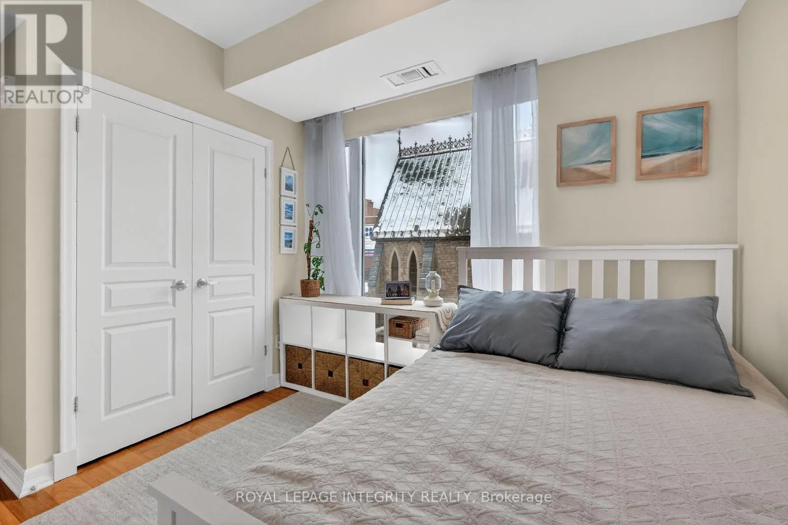 Cross Streets: Besserer St and King Edward St. ** Directions: Cumberland St or Waler St to Besserer St. Experience the peak of urban living in this stunning two-bedroom corner suite, where modern luxury meets the vibrant energy of downtown Ottawa. Bathed in natural light from expansive floor-to-ceiling windows, the open-concept layout is anchored by a gourmet kitchen featuring a central island and premium stainless steel appliances-a true centrepiece for entertaining. Rich hardwood flooring flows throughout the sun-drenched living area, leading to a balcony that offers a peaceful outdoor retreat overlooking the city. The primary bedroom serves as a sophisticated sanctuary with its own dedicated ensuite, while the second sizable bedroom and full guest bath offer versatility for a home office, guest room, or roommate. Beyond the unit, residents enjoy a resort-style lifestyle with meticulously maintained amenities, including an indoor heated pool, a fully equipped exercise center, and an elegant party room, all backed by the peace of mind that comes with professional on-site security. Perfectly positioned for professionals and students alike, you are just steps away from the University of Ottawa, trendy local cafes, and two LRT stations for unparalleled transit access. This turnkey residence represents the ultimate in downtown convenience, complete with secure underground parking and a private storage locker. Whether you are seeking a quiet retreat or a stylish hub in the heart of the city, this home delivers an exceptional urban experience. There will be an OH on March 29th, between 2 and 4 p.m. All offers require 48 hrs irrevocable. A status certificate has been ordered by the listing agent. (id:27476)