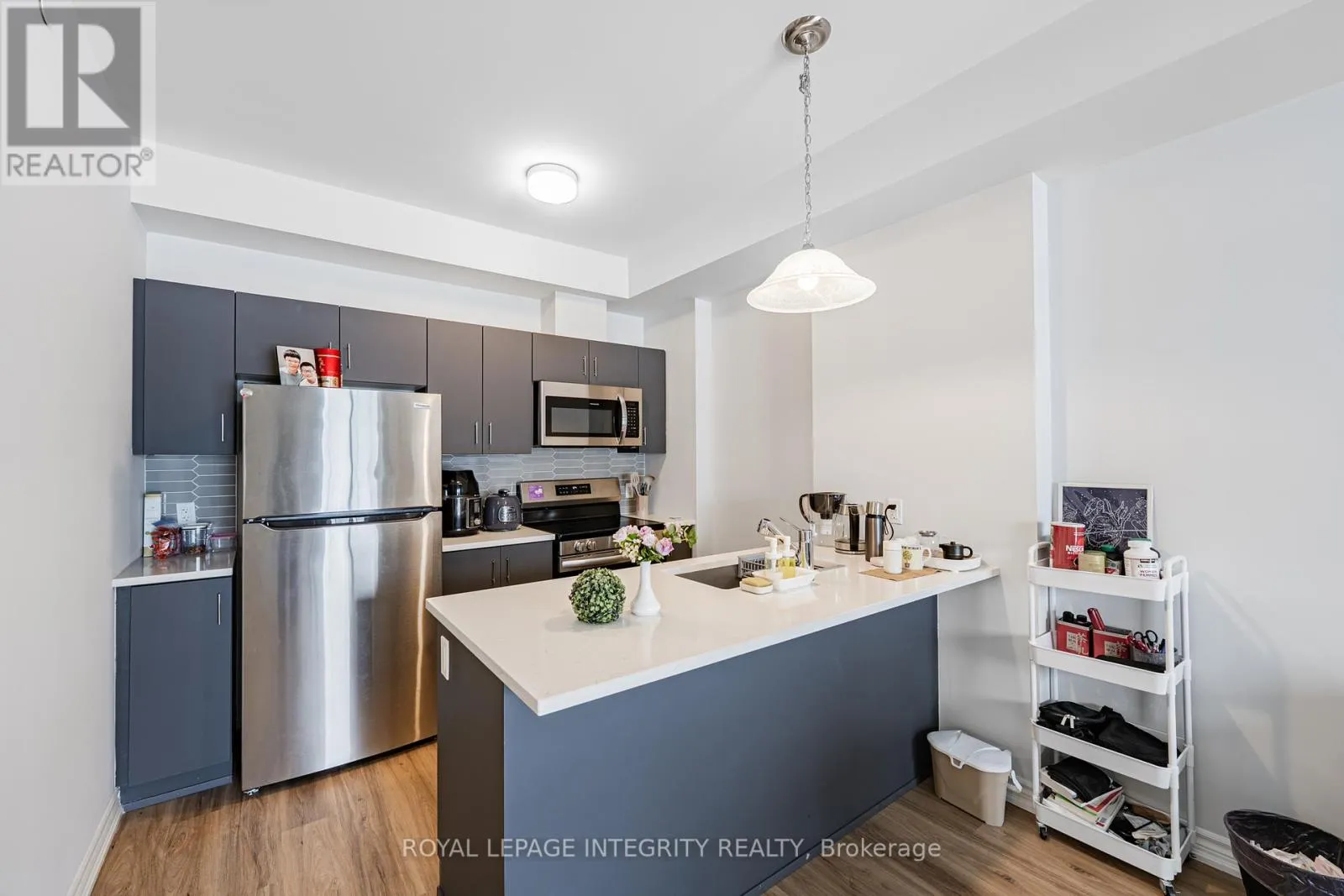 Heading Montreal Rd West, Turn left onto Codd's Rd. Then Turn right onto Hemlock Rd. 1350 is on your right hand. Welcome to this almost brand new 1-bedroom + den condo offering 730 sq. ft. of thoughtfully designed living space. Featuring a desirable south-facing balcony, this bright and airy unit is filled with natural sunlight throughout the day, thanks to its large windows in both the bedroom and living room. The modern interior showcases laminate flooring throughout, quartz countertops, stainless steel appliances, and the convenience of in-unit laundry. This unit also includes one underground parking space and a storage locker. Enjoy a highly convenient location just 16 minutes from downtown, with walking distance to public transit, schools, grocery stores, parks, and a hospital-perfect for comfortable urban living. This unit also features upgraded finishes, including vinyl tile flooring in the den (replacing carpet), upgraded kitchen sink, bathroom sink and faucet, enhanced kitchen countertops and backsplash, as well as added electrical outlets in the kitchen ceiling and bedroom ceiling for improved lighting functionality. (id:27476)