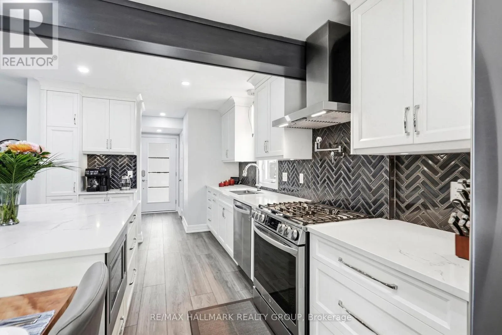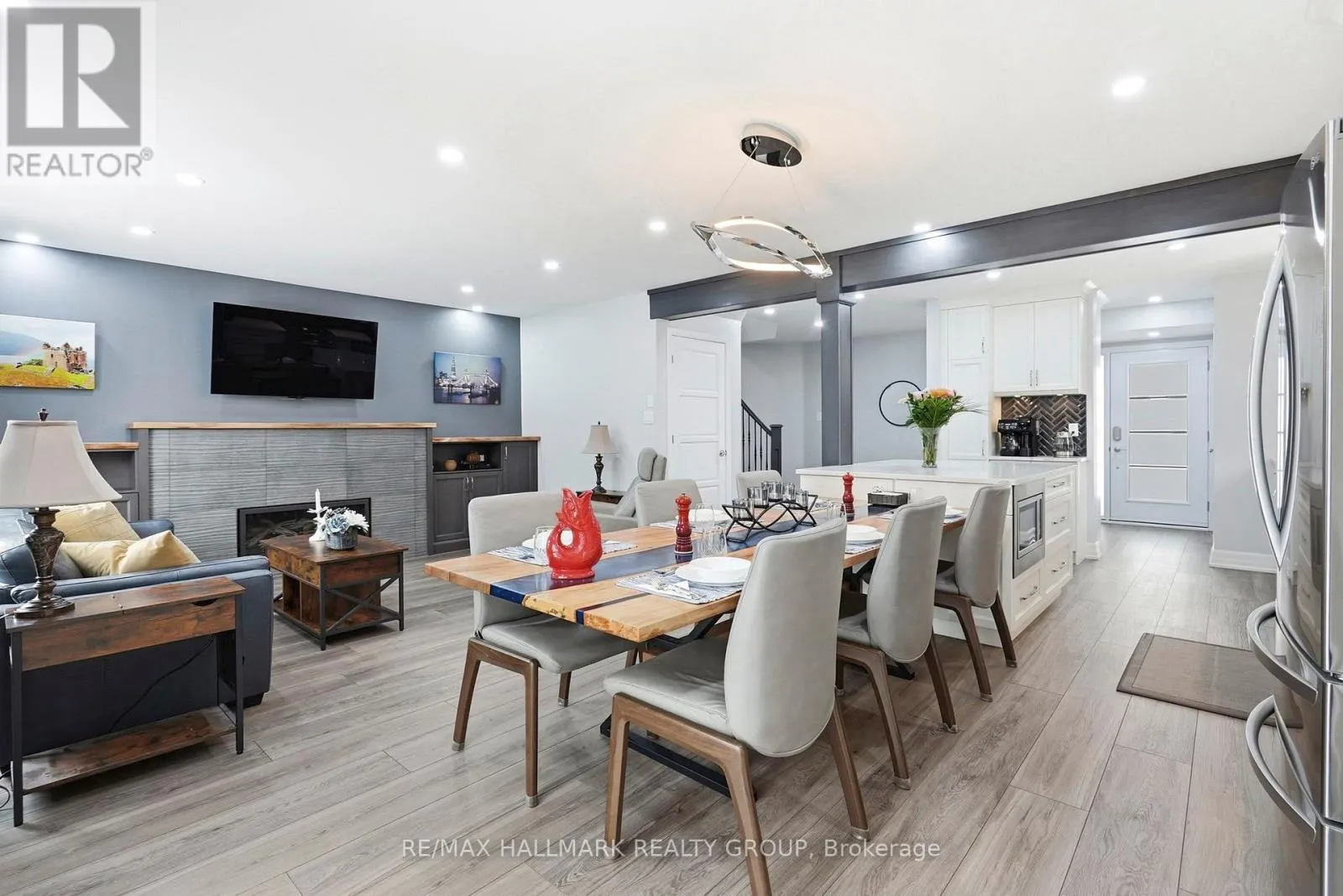 Cross Streets: Longfields & Mountshannon. ** Directions: Longfields to Mountshannon to Boulder Way. Beautifully renovated 2-storey detached home offering over 1,500 sq. ft on a quiet street in a fantastic family-friendly neighbourhood, close to all amenities. Thoughtfully updated on all levels, this home showcases quality finishes including colonial doors with brushed steel hardware and decorative baseboards throughout. The open-concept main floor features luxury vinyl tile flooring, a convenient powder room, and a spacious living and dining area highlighted by a cozy gas fireplace and patio doors leading to the backyard. The stunning renovated kitchen is designed for both everyday living and entertaining, complete with white shaker-style cabinetry, quartz countertops, herringbone backsplash, double undermount stainless steel sink with touch-stop faucet, pot filler over the gas stove, and a large centre island with built-in microwave and 20-amp outlets. Walls were thoughtfully removed to create a completely open-concept main floor, enhancing flow and connectivity throughout the space. A dedicated coffee station and wall of pantry storage with pull-out drawers provide exceptional functionality. Stainless steel appliances are included. A beautiful curved staircase with wood railings and black wrought-iron spindles leads to the second floor where you'll find a spacious primary bedroom with walk-in closet and a 3-piece ensuite, along with two additional bedrooms and a 4-piece family bathroom. The finished basement offers plush carpeting, a recreation room, den, 3-piece bathroom, laundry area, and ample storage space. Step outside to a private backyard retreat, fully fenced and perfect for entertaining, featuring a large multi-tiered deck surrounding an above-ground salt-water pool, hot tub, pergola, and two storage sheds. A move-in ready home combining stylish updates, functional living space, and an incredible backyard oasis in a prime location. 12 hours irrevocable. (id:27476)
