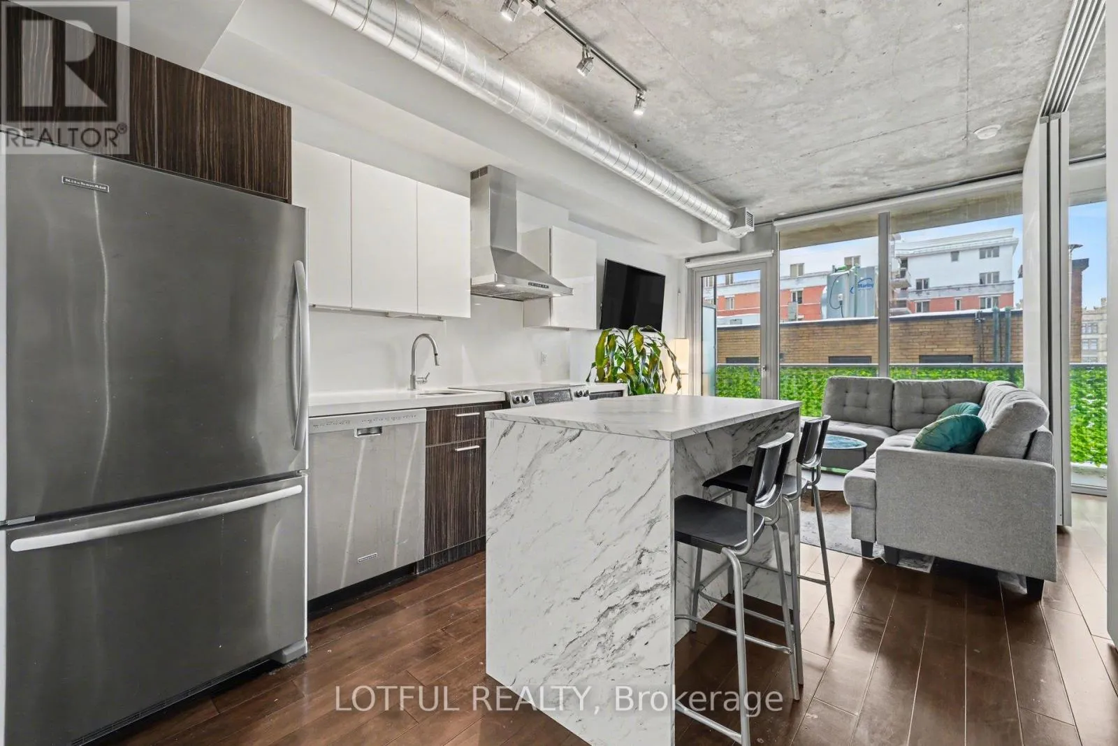 Located on Mcleod St, between Bank St and O'Connor St 1 bed + Den with underground parking, locker, and numerous upgrades included. This bright open-concept unit features floor-to-ceiling windows, hardwood flooring, and 9' ceilings with a modern industrial feel. Kitchen offers stainless steel appliances and ample storage. Sliding doors separate the den and bedroom, both with custom built-in beds. Upgraded 3-piece bathroom and convenient in-unit stacked washer/dryer. East-facing balcony with space for seating, perfect for morning sun. Building amenities include outdoor saltwater pool, patio with lounge area, fireplace and BBQ, gym, party room, and theatre. Excellent location near the Rideau Canal, museums, restaurants, and within walking distance to TD Place at Lansdowne. (id:27476)