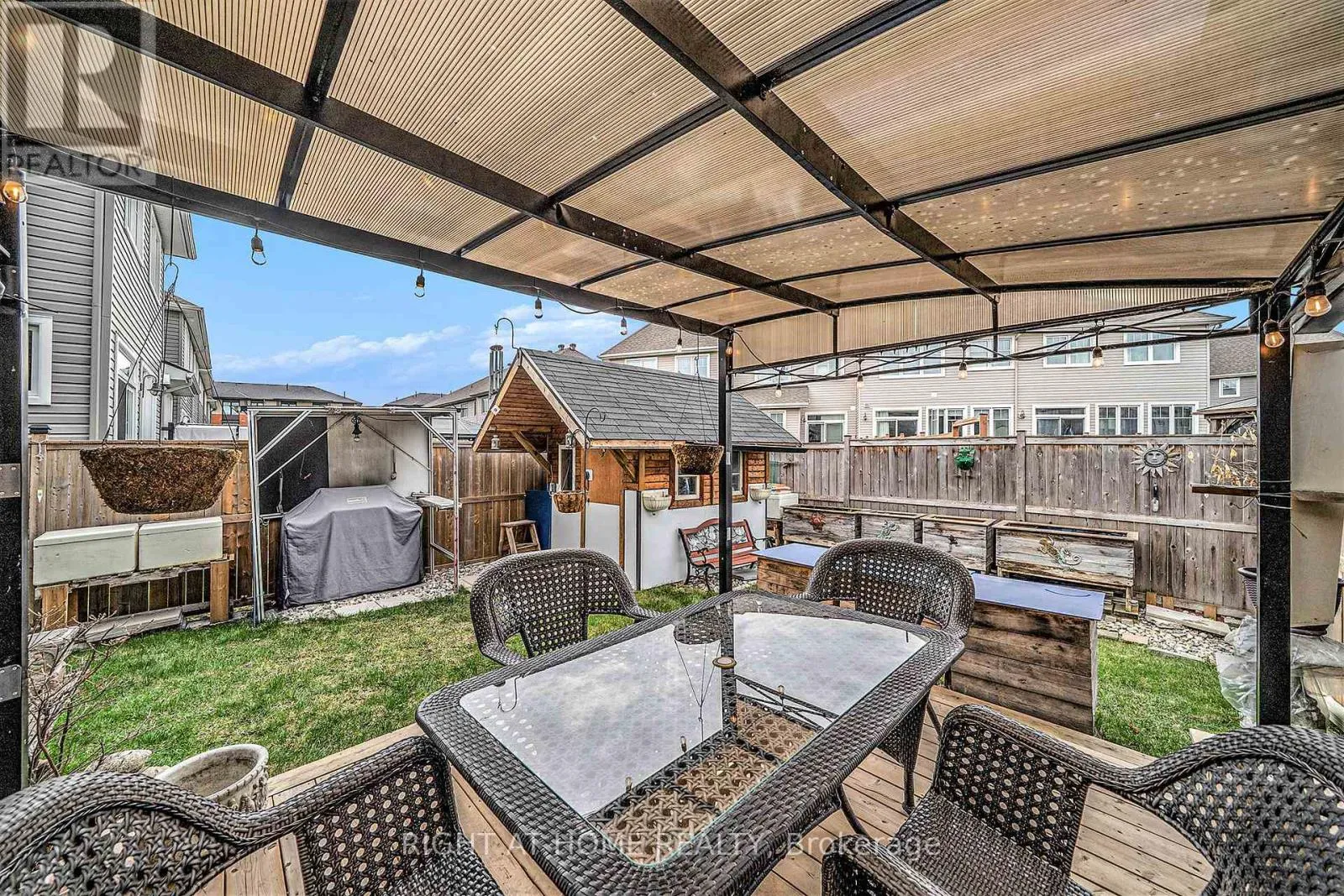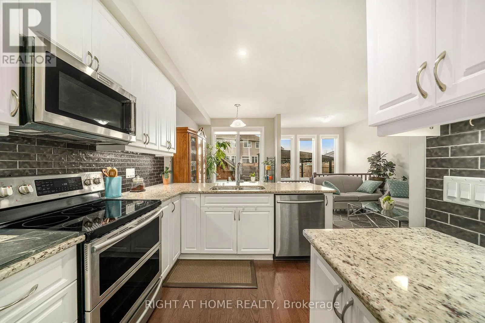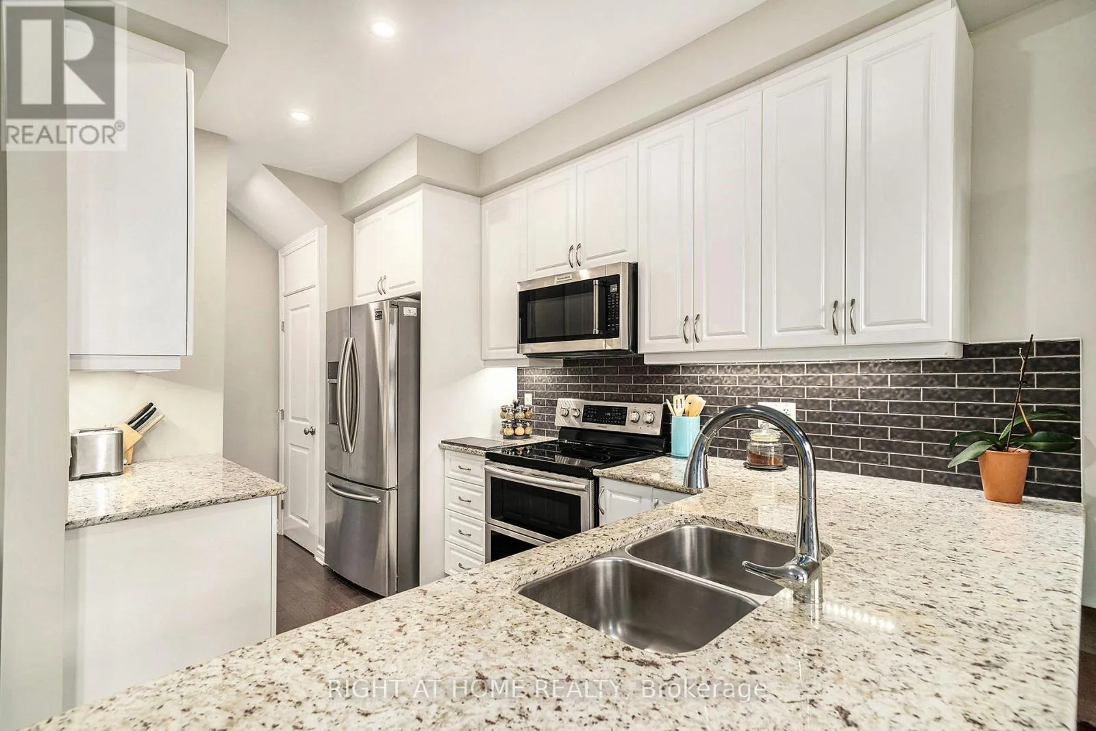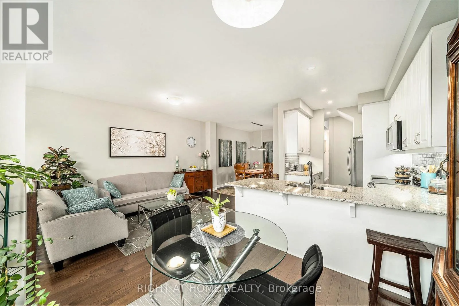 Cross Streets: cedar creek. ** Directions: hawkmere to labrador to sora. Welcome to this well design 3 bed 3 bath end unit townhome! the main floor offers an inviting foyer, spacious living, dinning areas, great kitchen with granite, pantry, backsplash, good counter/cabinet space, breakfast nook, 9ft ceilings and a powder room. The 2nd level boasts a convenient laundry area, main bath, 2 bed, primary bed with sitting/lounging area and en suite bath. Both levels offer hardwood and tile. The basement provides a rec room with a fireplace and loads of storage space. Landscaped and fenced backyard, convenient location, well maintained and ready for the next occupants. (id:27476)