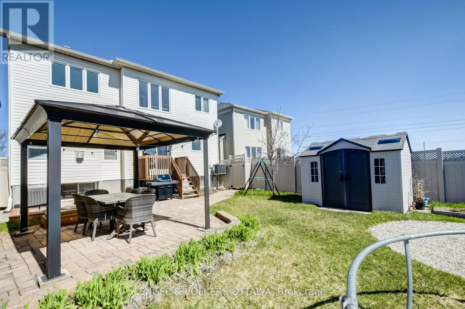 Cross Streets: Forestbrook Street. ** Directions: March Rd. to Terry Fox. Turn onto Second Line. Right onto Forestbrook and then left onto Abbeydale Circle. Set on a quiet, family-friendly street in Kanata North, literally steps to trails, parks, and transit, this is a sought after location that makes day-to-day living easy. The layout works. A welcoming foyer opens into a bright two-storey living room, with a defined dining space that still feels connected, offering abundant natural light. This floorplan is open where you want it to be, without losing that sense of structure. The kitchen is crisp and functional with timeless white cabinetry, stainless steel appliances, and a modern backsplash. It connects seamlessly to the eat-in area overlooking the backyard and family room, where the fireplace creates a comfortable place to land at the end of the day. Just off the kitchen is a mudroom with garage access, laundry, and extra pantry storage, practical features you will appreciate and use every day. Patio doors lead to a fully fenced, oversized backyard with room to entertain, relax, and enjoy the space. Whether you are looking for sun on the patio or shade under the gazebo, you will enjoy the southwest exposure. Upstairs, three well-sized bedrooms including a spacious primary suite with a walk-in closet and an ensuite featuring a soaker tub and a separate, updated shower. The finished basement adds real flexibility with a fourth bedroom, full bathroom, and a large open area that can adapt to how you live, movie nights, workspace, kids' zone, or all three. Finished with neutral tones, custom blinds, and clear pride of ownership throughout. A solid home, in a strong location, with a layout that just makes sense. (id:27476)
