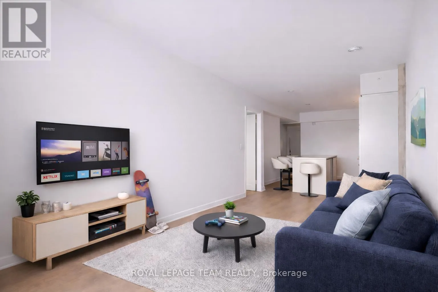 Take Waller St. to Daly Ave. Welcome to Suite 1503 at ArtHaus, 20 Daly Avenue, in the heart of Sandy Hill. This approximately 656-square-foot condo (per MPAC) with parking is a serene sanctuary perched above Le Germain Hotel. Situated on the quiet Arts Court side of the building. Facing west, this suite offers an unparalleled blend of comfort & elegance. Step into a modern space thoughtfully designed for both functionality & style. The contemporary living area offers panoramic views of the core. The spacious bedroom provides a delightful view of Parliament Hill a rare & stunning feature to wake up to. The kitchen & bathroom are outfitted w contemporary finishes, ensuring both style & ease of living. Engineered hardwood throughout & meticulous attention to detail, this suite is the epitome of urban luxury. Residents enjoy the exceptional maintenance of this low-density building, including the unique perk of having your door cleaned weekly. Elevators are rarely shared, adding to the sense of exclusivity & privacy. ArtHaus is a testament to modern architectural design, seamlessly integrating residential, cultural, & lifestyle. Residents have access to the Firestone Lounge, a sophisticated party room, & a fully equipped gym both conveniently located on the same floor as Suite 1503, yet thoughtfully positioned for maximum tranquility. On the ground floor, a delightful coffee shop, & direct indoor access to the Ottawa Art Gallery. These features make ArtHaus not just a residence but a cultural hub. ArtHaus offers unparalleled convenience. uOttawa is mere steps away, making it ideal for students, faculty, & staff. The Rideau Centre & vibrant Lower Town are right at your doorstep, offering shopping, dining, & entertainment options. For commuters, access to the 417 & King Edward Avenue ensures seamless travel east, west, or north. A modern development nearby will only enhance the already breathtaking panorama that unfolds before you. (id:27476)