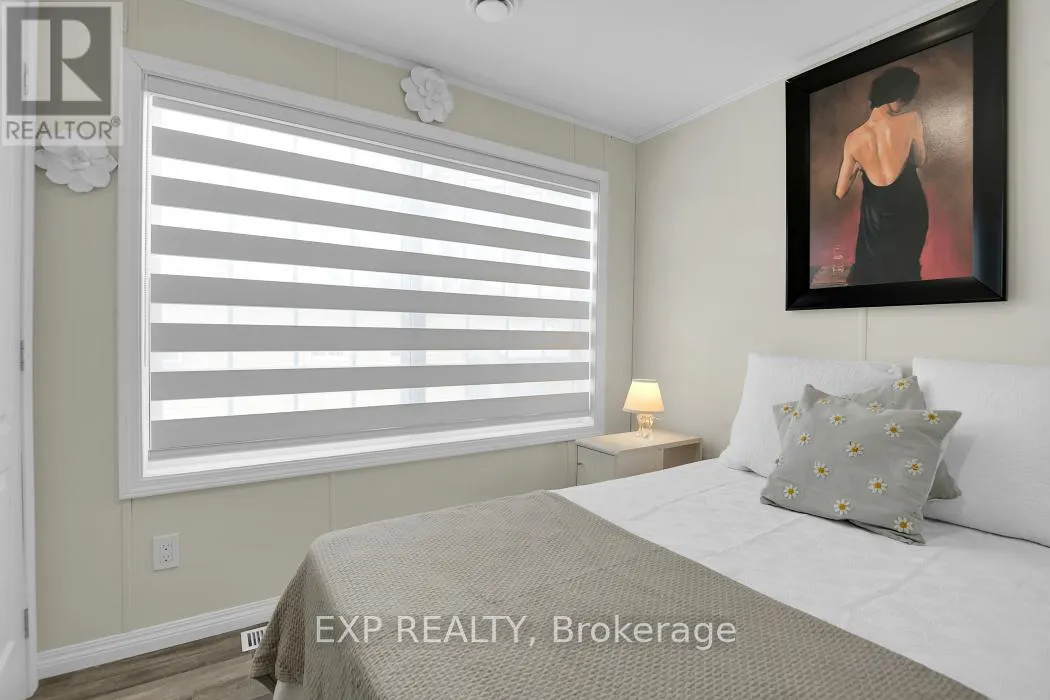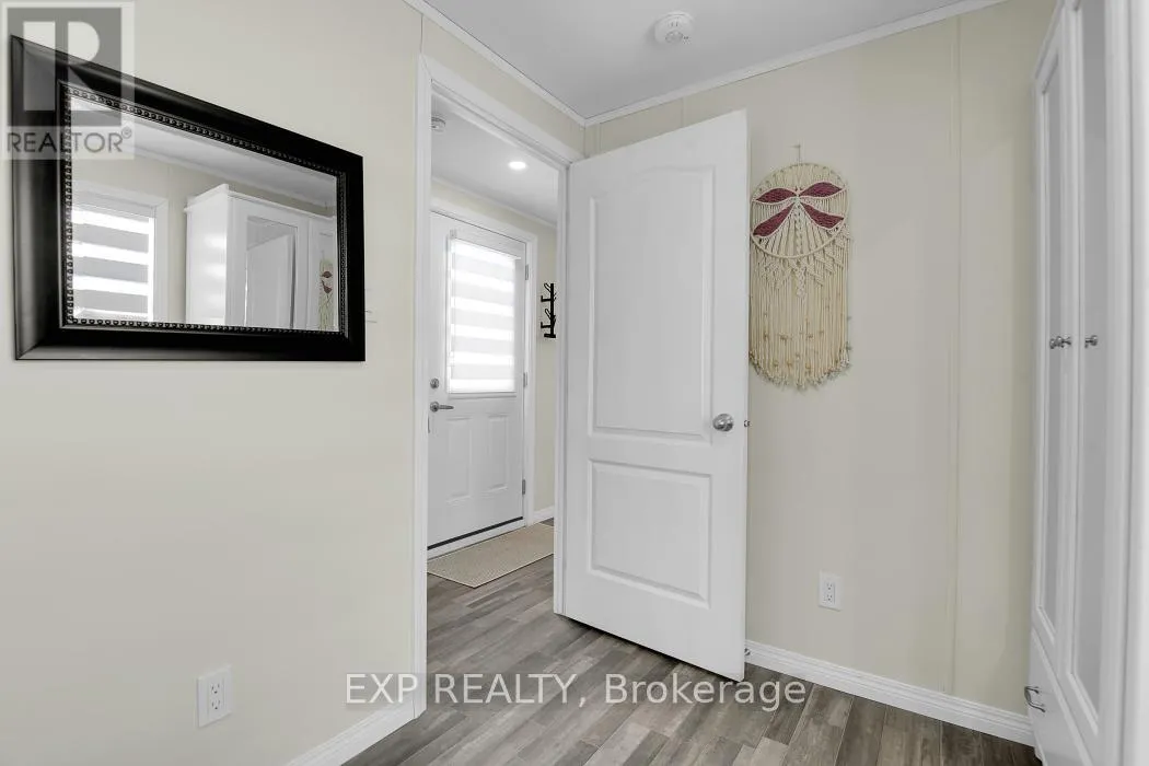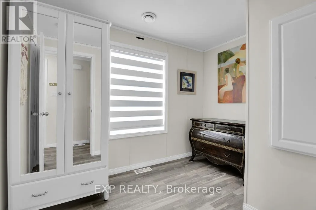 Cross Streets: Robertson x Vanier. ** Directions: Robertson Rd to Vanier Rd, Turn right onto Bonner St. LIKE NEW CONDITION - BUILT 2022, FEELS LIKE A NEW CONSTRUCTION WHILE OFFERING EASY, AFFORDABLE, LOW-MAINTENANCE LIVING. Discover the perfect blend of comfort, practicality, and value with this Canadian-built mobile home, ideal for first-time buyers or downsizers looking for all the conveniences of a newer home without the high price tag, with the added benefit of single-level, bungalow-style living for maximum convenience. Located in the convenient Bellwood community, you're just minutes from shopping and transit, making everyday living easy and accessible. Inside, enjoy a bright open-concept layout filled with natural light, enhanced by newly installed LED pot lights for modern lighting throughout, along with custom high-quality blinds fitted on all windows for optimal convenience and privacy. The eat-in kitchen features upgraded wood cabinetry and a sliding patio door leading to a spacious deck spanning the entire length of the home -perfect for relaxing and entertaining. The versatile second bedroom works well for guests or a home office, while the primary bedroom offers plenty of natural light. A well-appointed full bathroom and convenient laundry nook add to the home's functionality. Monthly fees of $743 cover land lease, property taxes, and common area maintenance, making this an excellent option for those seeking simple, worry-free living. Whether you're entering the market or looking to downsize, this home delivers modern comfort at an unbeatable value - inquire to book your showing today! (id:27476)