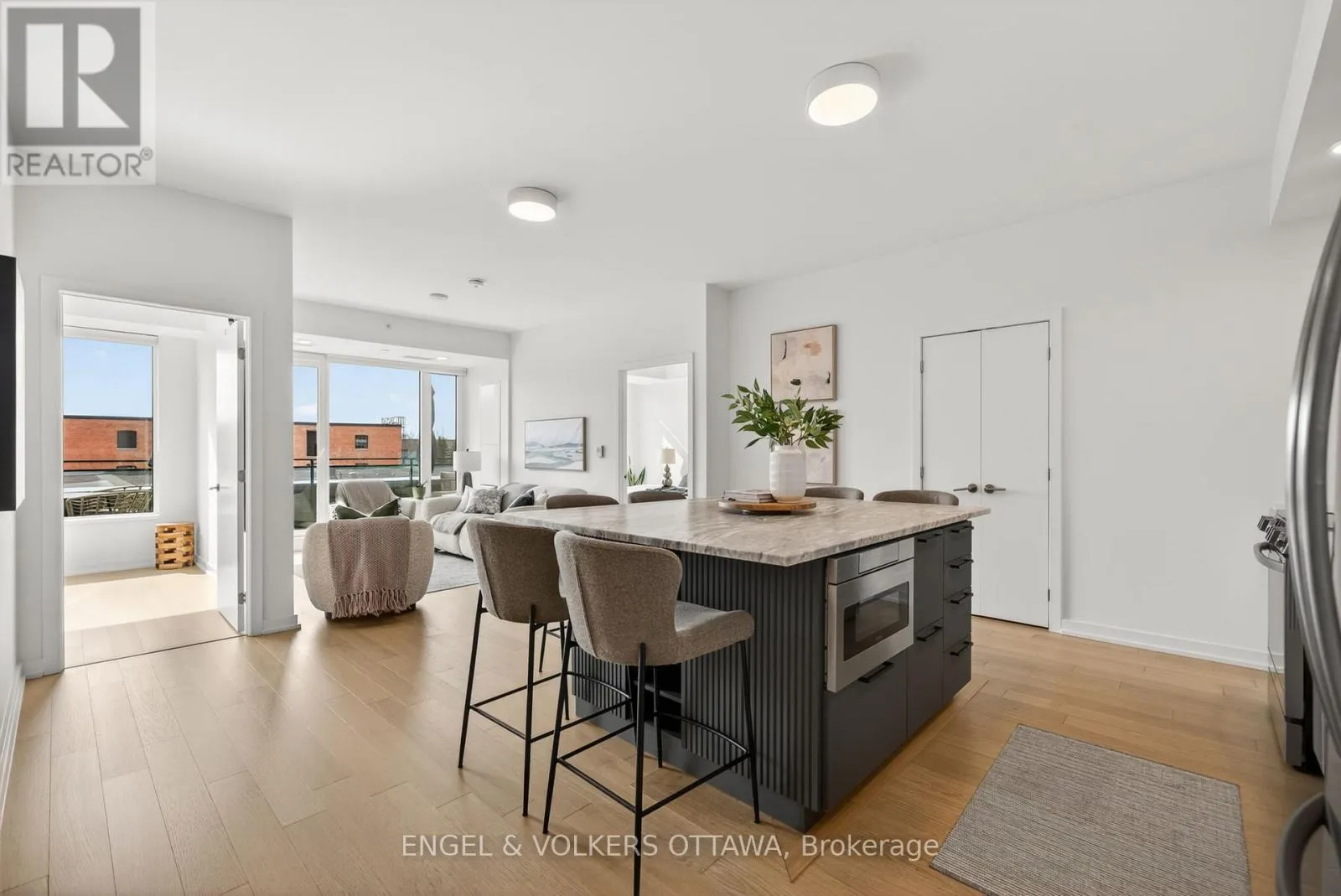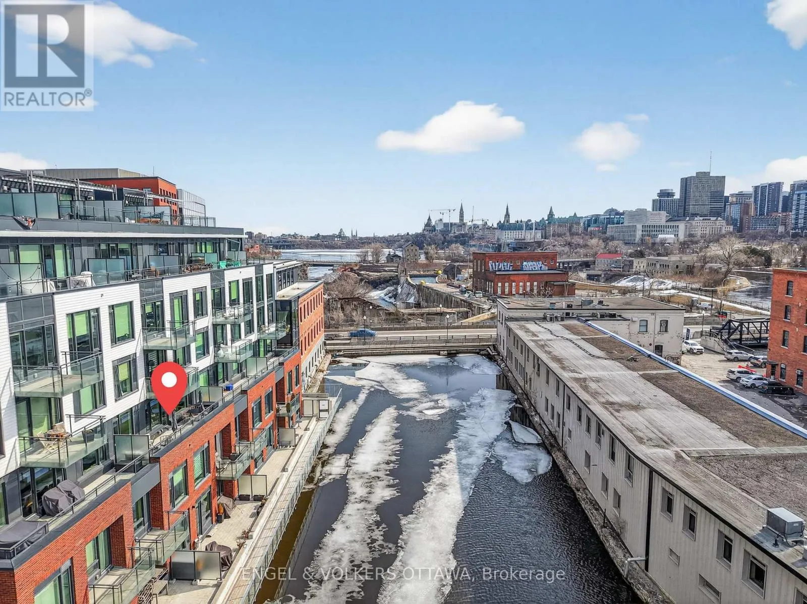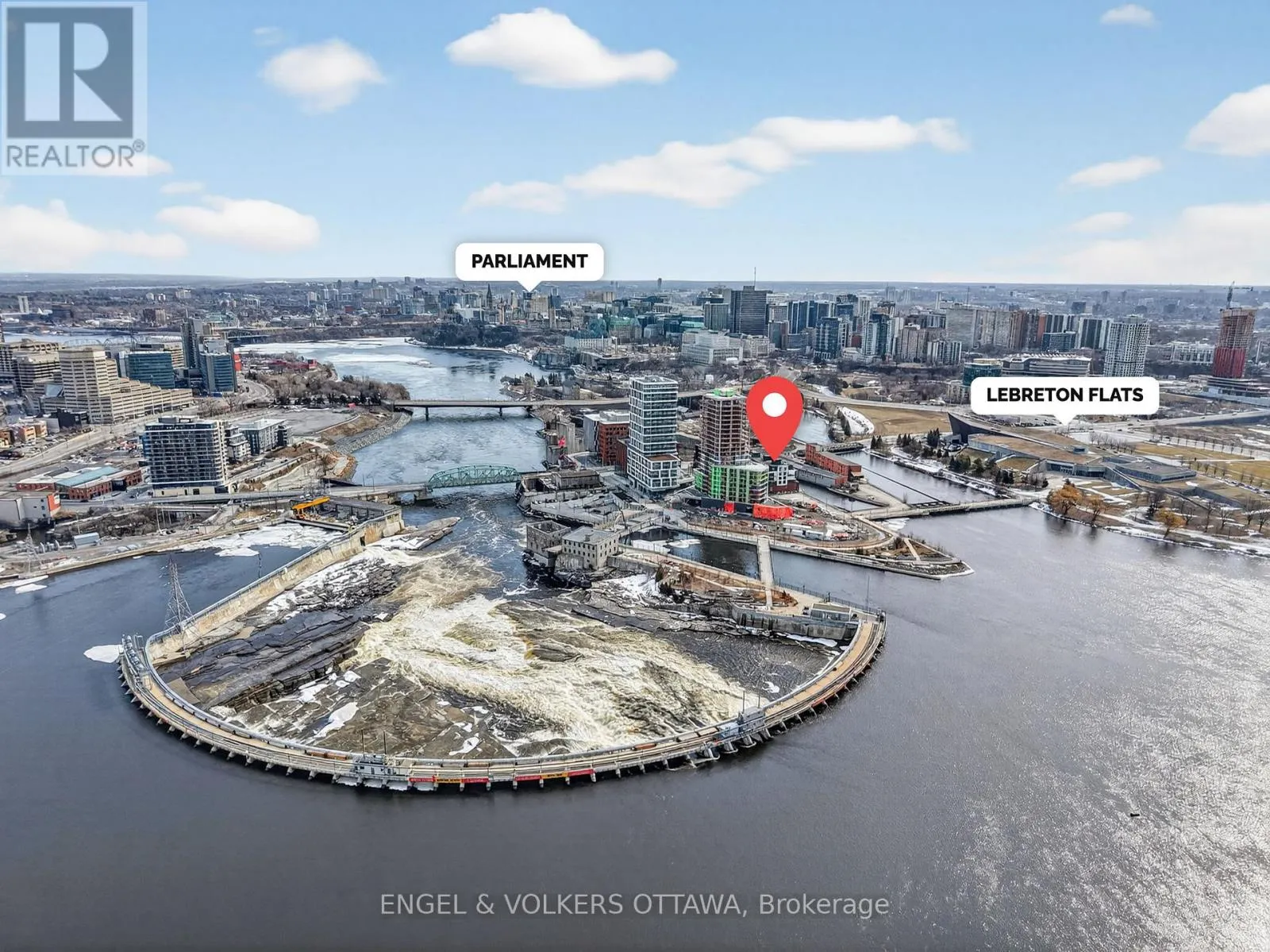Cross Streets: Chaudiere Crossing & Chaudiere Private. ** Directions: From Chaudiere Crossing, turn onto Chaudiere Private. Experience luxurious island living in this beautiful condo in a highly energy-efficient LEED-certified building with views of Parliament Hill & waterfront views of the Ottawa River. The unit features a bright, open concept main living area with 9' ceilings and expansive south-facing windows that fill the space with natural light. The living room flows seamlessly to the balcony, offering a generous outdoor space ideal for both relaxation & entertaining with waterfront views. The kitchen is both functional and stylish, complete with quartz countertops, white cabinetry, stainless steel appliances and a large island with a built-in wine rack and plenty of room for seating, making it great for hosting. The primary bedroom is spacious & features large windows, newly installed custom closets and an ensuite with heated floors and a walk-in shower. A second room is great as a home office or guest bedroom, and it also benefits from excellent natural light. The second full bathroom boasts stunning sleek finishes with a tub/shower combo. This apartment includes in-unit laundry, a spacious storage locker, and an underground garage parking space in an excellent location right by the elevator. Residents of the Kanaal building enjoy premium on-site amenities, including a fitness room located on the same floor as the unit, a library, a pet wash station and secure bicycle storage. Perfectly positioned, this location offers the best of downtown living in a community built for what's next. Just steps to Pimisi LRT, you're seamlessly connected across the city, with bike paths and scenic waterfront trails right outside your door. Set along the Ottawa River & minutes from the Canadian War Museum, the new Ottawa Public Library and neighbourhoods like Hintonburg, Little Italy & more. With LeBreton Flats continuing to evolve, including plans for the likely future home of the Ottawa Senators, this is a rare opportunity to be part of one of the city's most exciting and transforming areas. (id:27476)