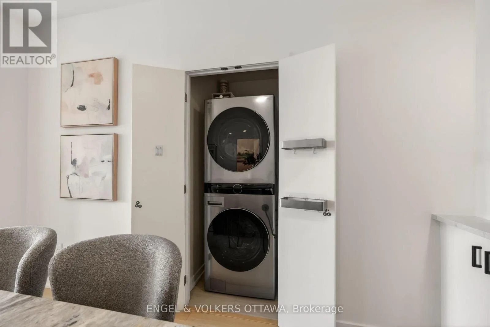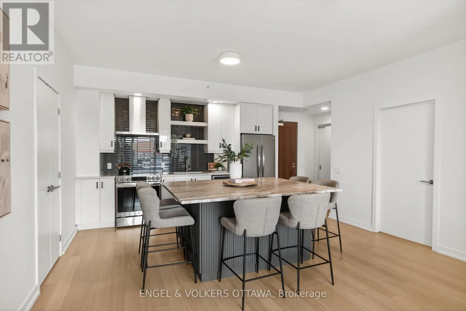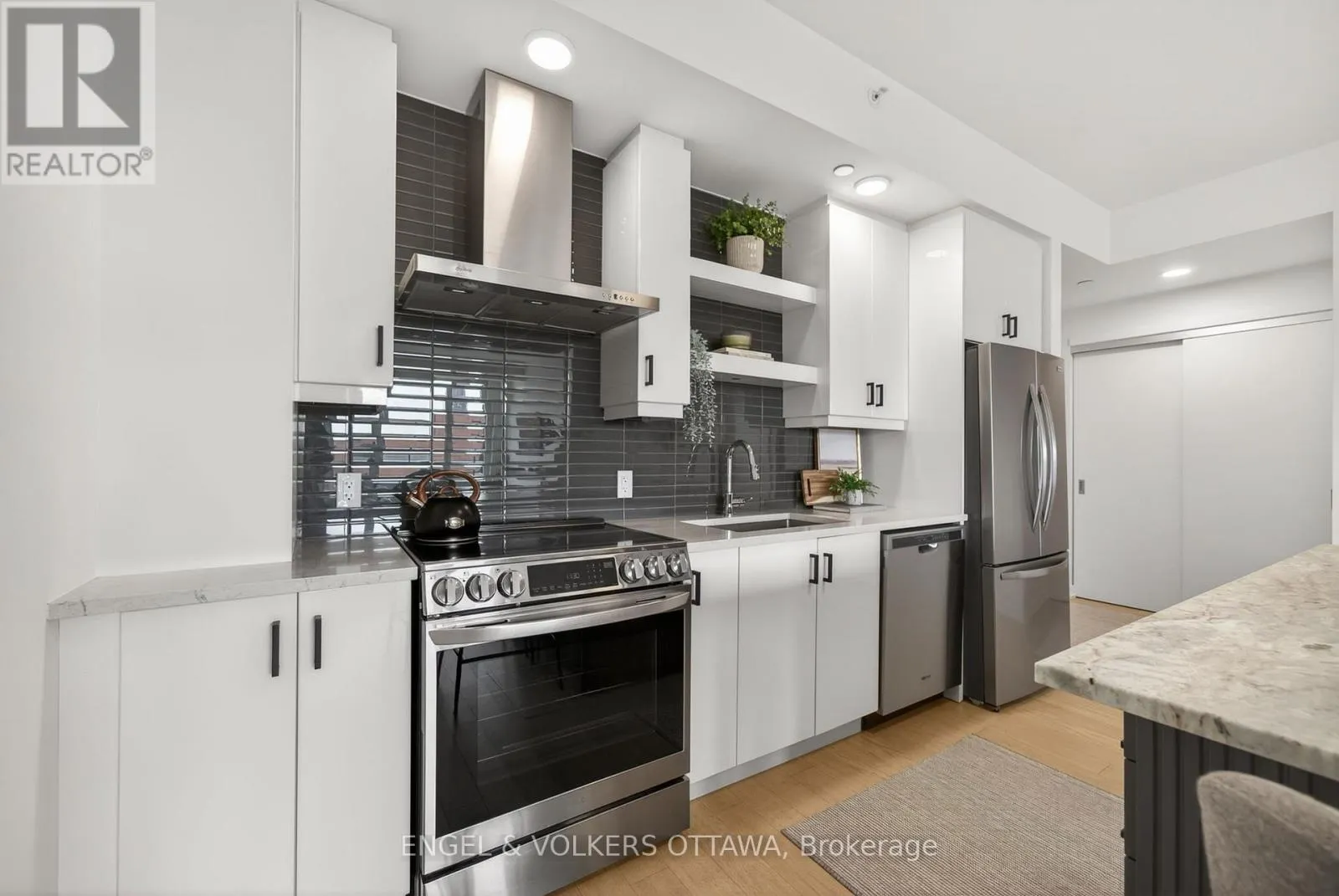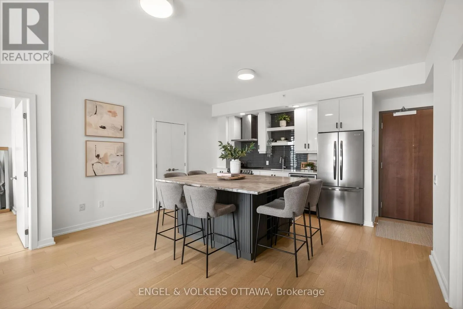 Cross Streets: Chaudiere Crossing & Chaudiere Private. ** Directions: From Chaudiere Crossing, turn onto Chaudiere Private. Experience luxurious island living in this beautiful condo in a highly energy-efficient LEED-certified building with views of Parliament Hill & waterfront views of the Ottawa River. The unit features a bright, open concept main living area with 9' ceilings and expansive south-facing windows that fill the space with natural light. The living room flows seamlessly to the balcony, offering a generous outdoor space ideal for both relaxation & entertaining with waterfront views. The kitchen is both functional and stylish, complete with quartz countertops, white cabinetry, stainless steel appliances and a large island with a built-in wine rack and plenty of room for seating, making it great for hosting. The primary bedroom is spacious & features large windows, newly installed custom closets and an ensuite with heated floors and a walk-in shower. A second room is great as a home office or guest bedroom, and it also benefits from excellent natural light. The second full bathroom boasts stunning sleek finishes with a tub/shower combo. This apartment includes in-unit laundry, a spacious storage locker, and an underground garage parking space in an excellent location right by the elevator. Residents of the Kanaal building enjoy premium on-site amenities, including a fitness room located on the same floor as the unit, a library, a pet wash station and secure bicycle storage. Perfectly positioned, this location offers the best of downtown living in a community built for what's next. Just steps to Pimisi LRT, you're seamlessly connected across the city, with bike paths and scenic waterfront trails right outside your door. Set along the Ottawa River & minutes from the Canadian War Museum, the new Ottawa Public Library and neighbourhoods like Hintonburg, Little Italy & more. With LeBreton Flats continuing to evolve, including plans for the likely future home of the Ottawa Senators, this is a rare opportunity to be part of one of the city's most exciting and transforming areas. (id:27476)
