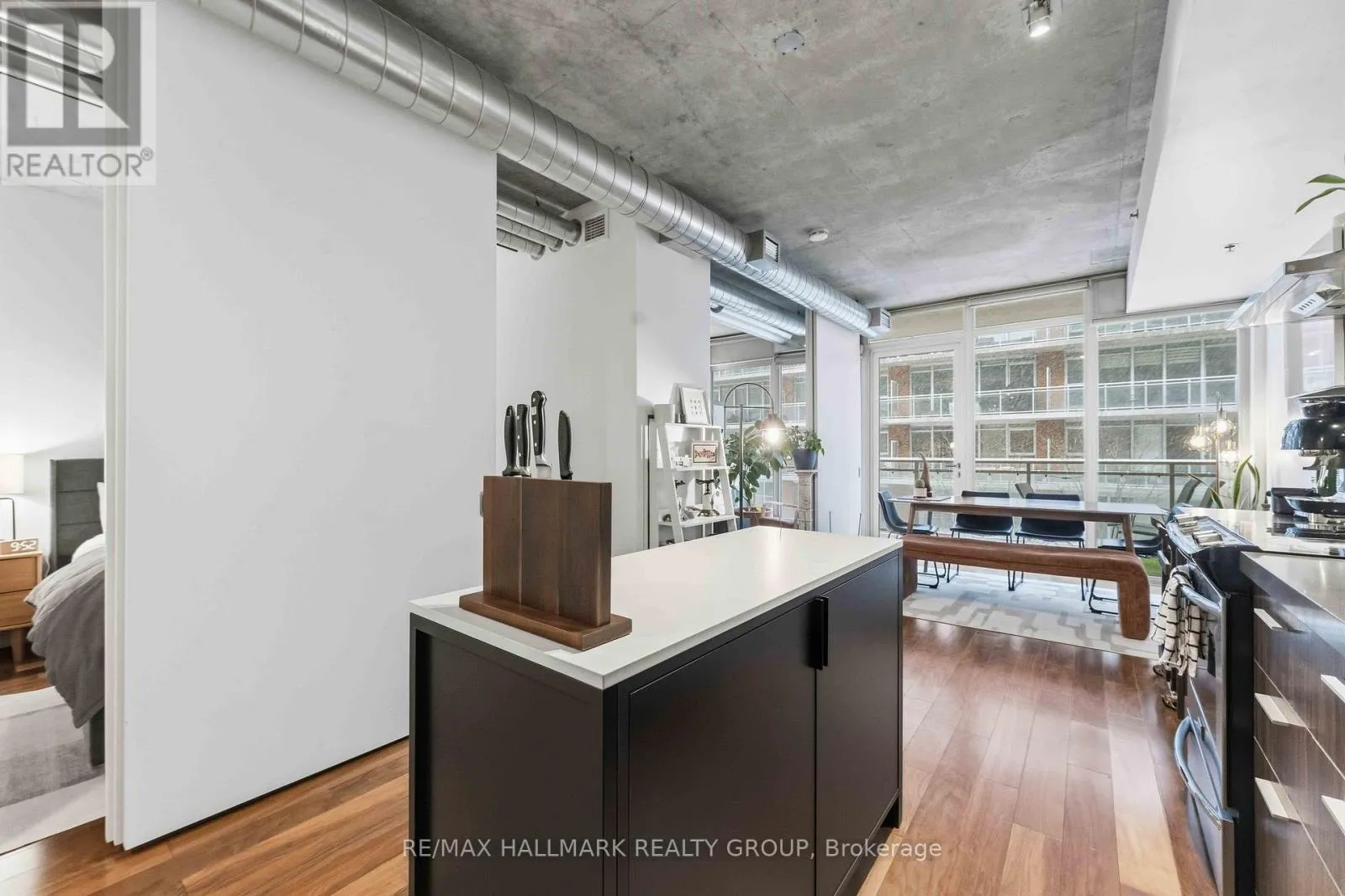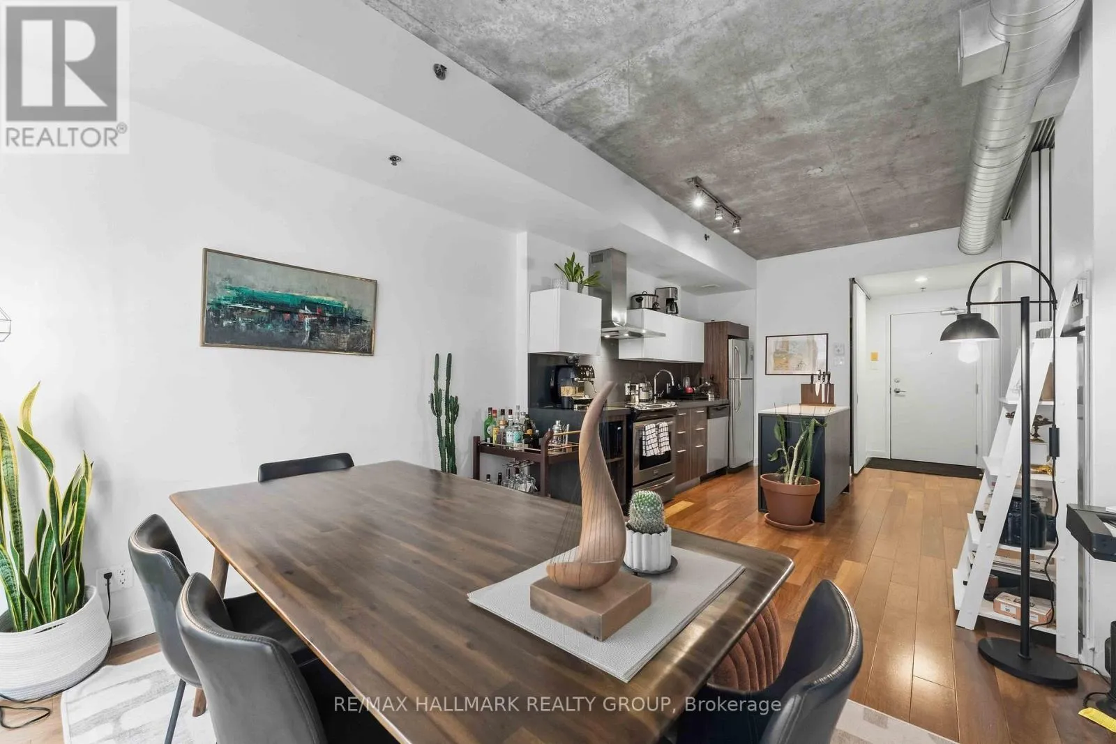 Bank Street | McLeod Street Welcome to Unit 313 at 360 McLeod Street - a stylish and functional 1 bedroom + den condo perfectly located in the heart of Centretown. This thoughtfully designed unit offers an open-concept layout with modern finishes throughout. The sleek kitchen features contemporary cabinetry, stone countertops, and stainless steel appliances, seamlessly flowing into the bright living and dining area - ideal for both everyday living and entertaining. The primary bedroom provides a comfortable retreat, while the versatile den is perfect for a home office, guest space, or cozy reading nook. Enjoy the convenience of in-unit laundry. Step outside to your private balcony - the perfect spot to unwind and take in the vibrant downtown surroundings. Located just steps from shops, restaurants, cafes, parks, and transit, this unbeatable location offers the ultimate urban lifestyle. Condo Fees include heat, water, central a/c, and building insurance. Currently tenanted, with possession available after June 1 - making it a great opportunity for both investors and future homeowners alike. (id:27476)