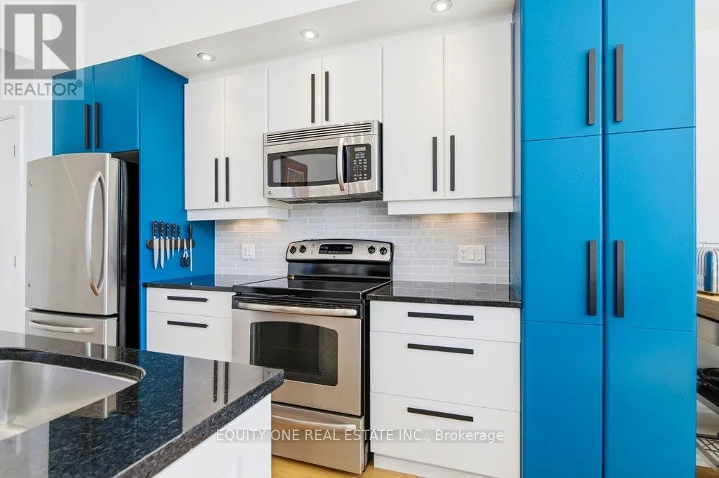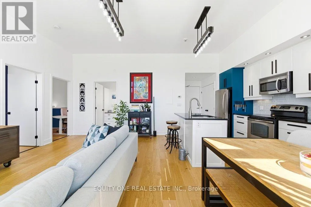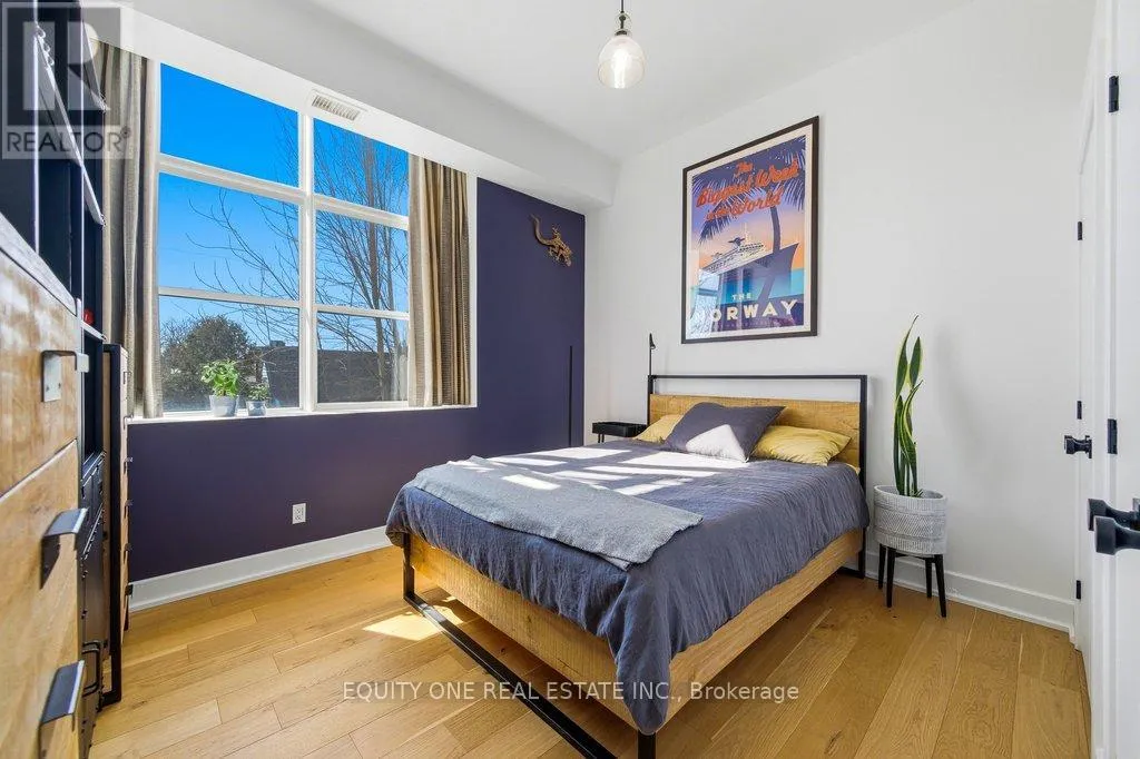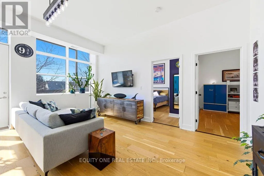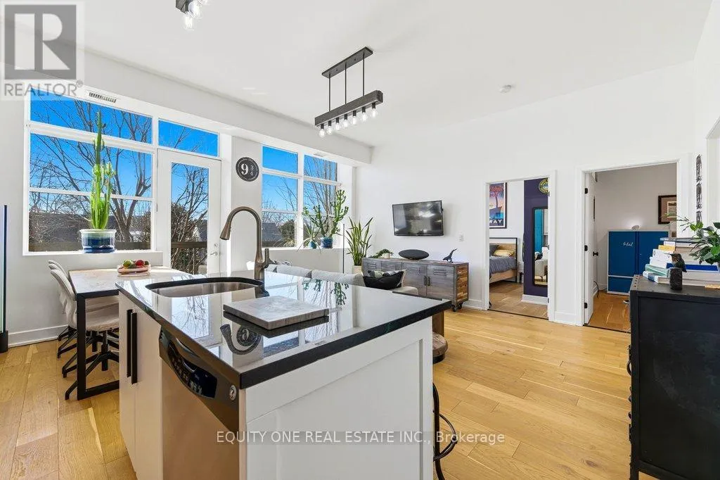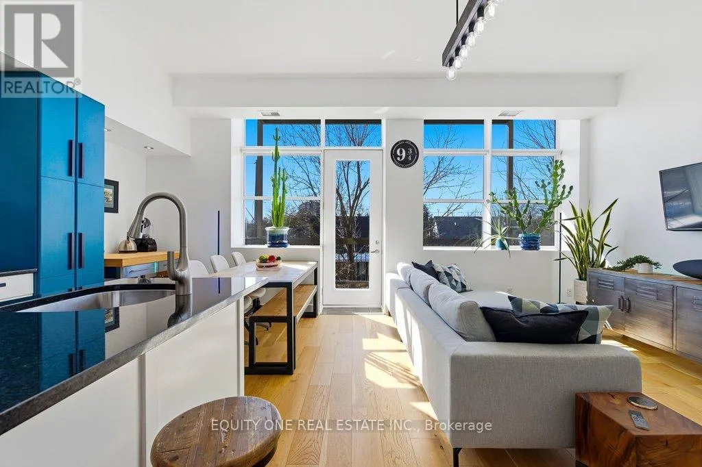 St Denis & Granville Imagine waking up to soft natural light pouring through oversized south-facing windows, with mature trees just beyond your view-offering both privacy and a peaceful, green backdrop in the heart of the city. Welcome to this beautifully designed 1-bedroom + den condo in a unique boutique building, where modern comfort meets quiet, refined living. LEED Silver certified building, ideally located in a quiet, tree-lined residential pocket just minutes from downtown Ottawa. Originally redeveloped from Ãcole Cadieux, this boutique building offers modern living with low operating costs and approximately 855 sq ft of thoughtfully designed space. Soaring 10'4" ceilings and expansive south-facing windows flood the home with natural light year-round, while mature trees provide privacy and seasonal comfort. The open-concept living, dining, and kitchen area features granite countertops, engineered French oak hardwood flooring, and updated LED lighting throughout.The spacious primary bedroom includes double closets and custom window coverings, while the versatile den-enhanced with internal glazing-makes an ideal home office or guest space. The modern entry showcases porcelain tile, ample storage, in-unit laundry, and a clean, functional layout. Step outside to your oversized 6' x 18' private balcony with retractable screen door -perfect for relaxing or entertaining-with durable construction and BBQs permitted. Additional highlights include a deeded parking space in a private courtyard and a secure storage locker. Enjoy a prime central location just 4 km to Parliament Hill, steps to the Rideau River pathways, and close to Beechwood Village shops, cafés, and amenities. A rare opportunity to own a bright, modern condo in a quiet yet connected neighbourhood! (id:27476)