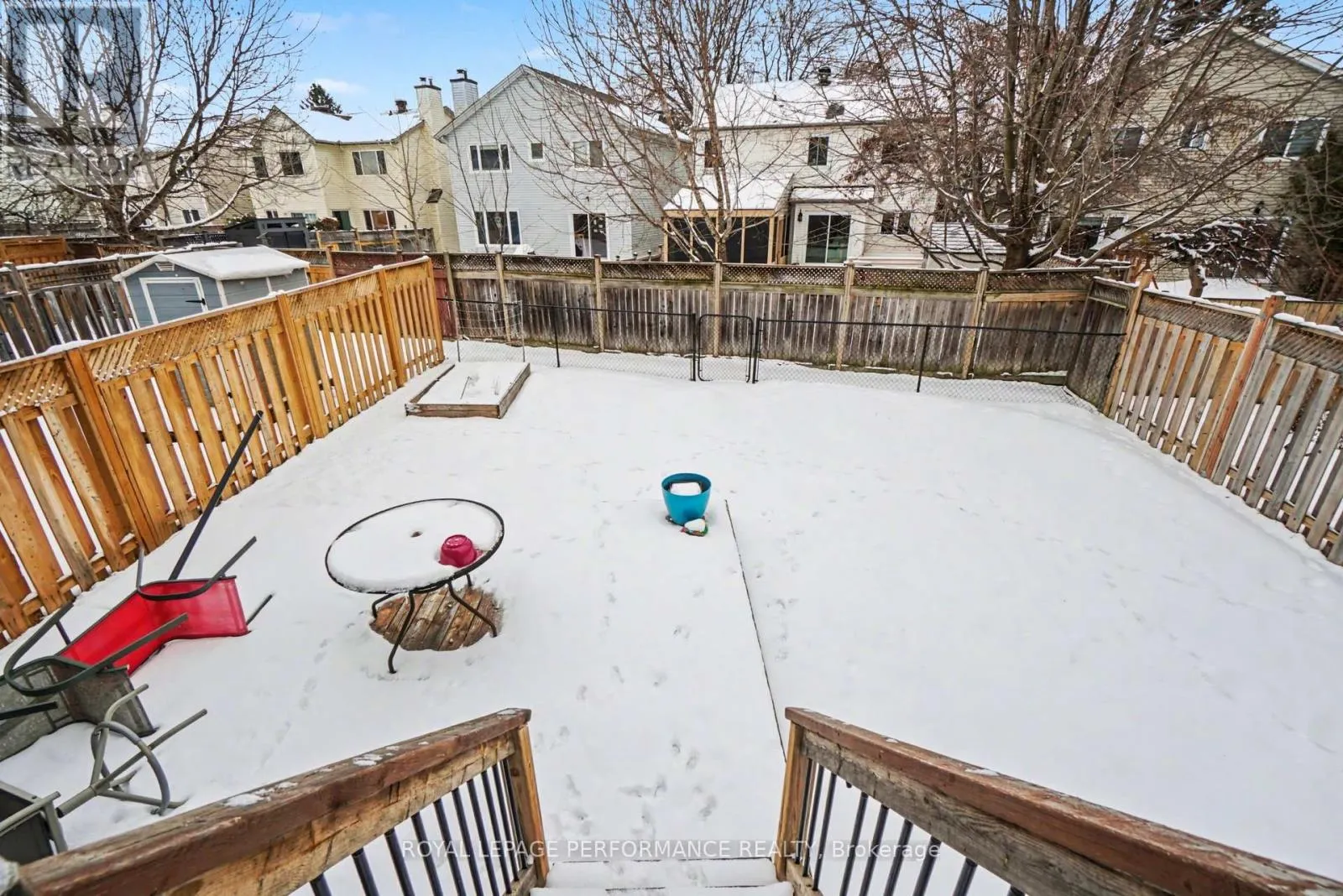 Cross Streets: Charlemagne Blvd & Tenth line Rd. ** Directions: Going North on Trim road, turn left onto watters road, right on Montcrest than left on Princess louise. Turn right on Brome cr and right again on Beaucourt Pl. Bright and inviting 3 bed / 3 bath end-unit freehold townhome tucked away on a quiet, family-friendly cul-de-sac in Fallingbrook - this one truly checks all the boxes. The main level features an open-concept layout with an updated kitchen, stainless steel appliances, large windows, a cozy wood-burning fireplace, and patio doors leading outside. Step into the real showstopper: an exceptional, fully fenced huge backyard; a rare find for a townhome and perfect for kids, pets, entertaining, gardening, or simply enjoying extra outdoor space. Upstairs you'll find all three bedrooms, including a spacious primary suite with a walk-in closet and private ensuite. The split level design provides useful & meaningful separation between bedrooms and living space. The finished lower level adds even more flexibility with a generous family room with a large storage room and bonus workshop space. (id:27476)