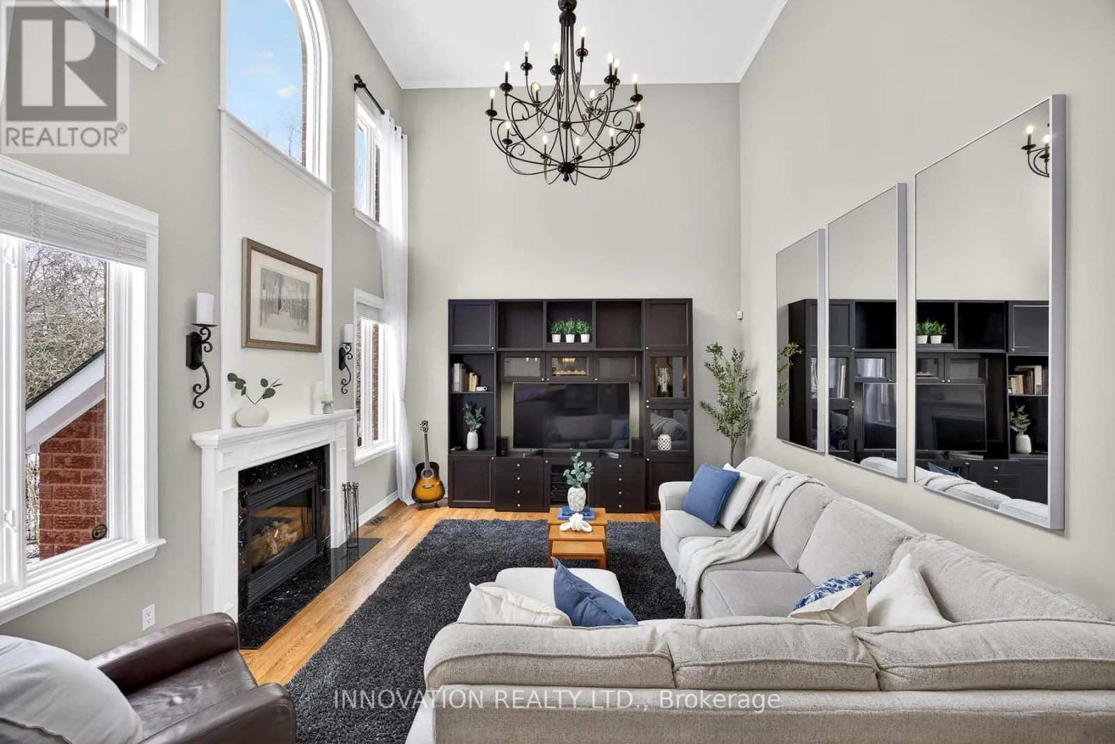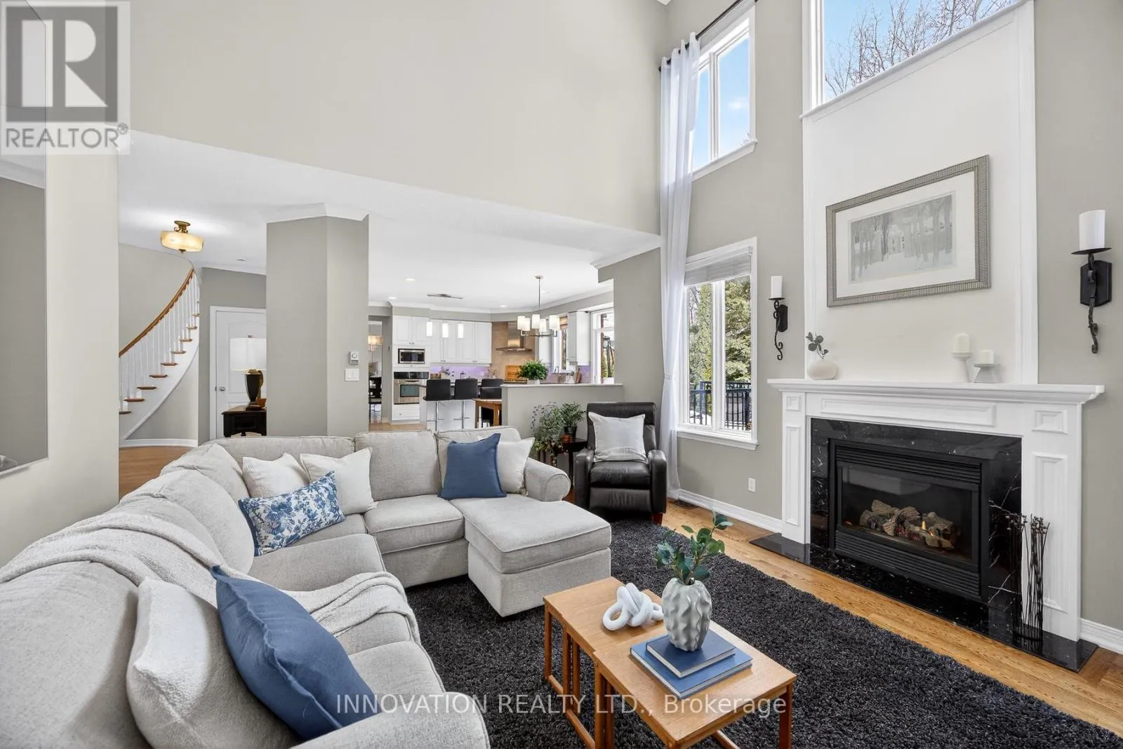 Cross Streets: Walden Drive and Charlesworth Court. ** Directions: Kanata Avenue to Walden Drive. Left onto Charlesworth Court. Backing onto the Beaver Pond Trails, this stately family home sits on a mature, oversized lot in the heart of Kanata Lakes. The "WOW" factor begins at the curb, where a long, sweeping driveway leads to a masterfully designed exterior featuring professional landscaping and elegant hardscaping. Experience immediate grandeur from the moment you enter the sun-drenched two-story foyer. Architecturally enhanced with a unique 3-foot extension, the main level features an expanded chef's kitchen with granite counters, gas cooktop, and a movable island. The open-concept living/dining area boasts designer millwork and a modern stone fireplace. Relax in the dramatic sunken family room with soaring ceilings or work from the private main-floor den. Retreat to a massive Primary suite featuring a gas fireplace, custom walk-in closet, and an enlarged 5-piece ensuite,(another welcome plus from that 3 ft extension!). Three additional spacious bedrooms (one with private ensuite) complete the upper level. The finished lower level currently offers a media room, family room, gym, and guest suite with full bath-but with two potential conforming bedrooms, multi-generational living is easily possible! Step outside to your private backyard oasis, an expansive retreat that feels worlds away. The massive private lot features a sprawling deck with various entertaining areas, perfect for BBQ's or a quiet evening for 2 (or 20 if you prefer), with plenty of lush green space for play or a future pool, all while offering direct access to nature trails. Walk to top-rated schools across multiple boards, and access restaurants, music schools, parks, and shopping within minutes! (id:27476)