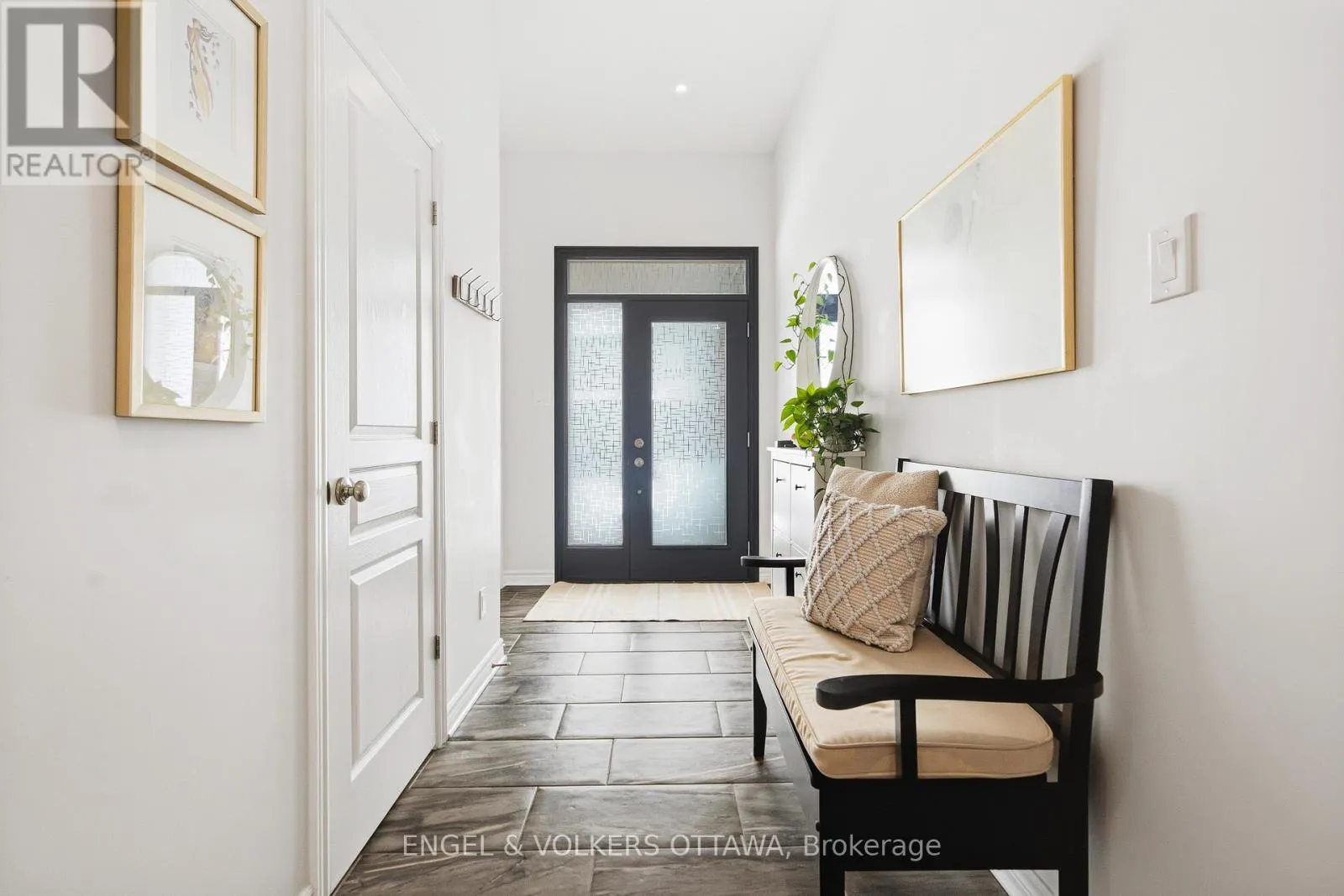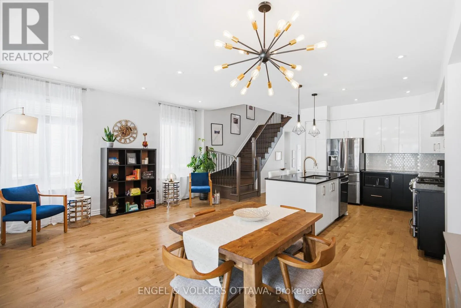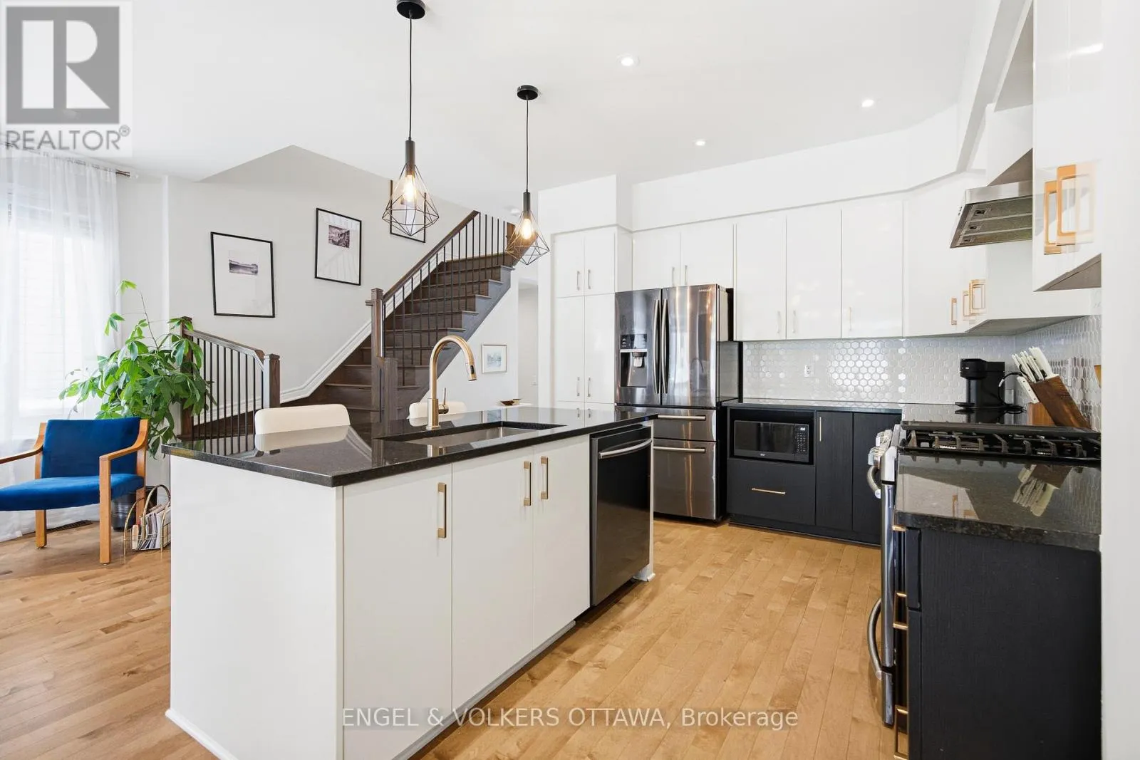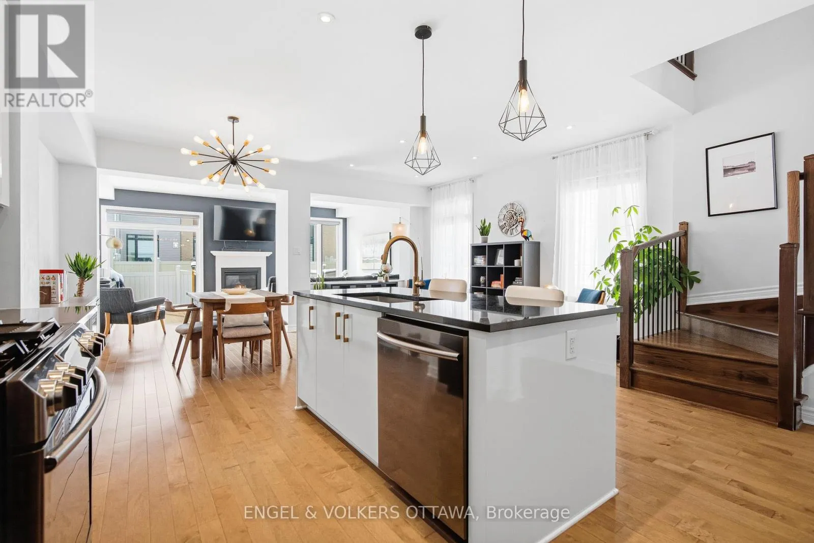 Cross Streets: Terry Fox Drive to Abbott Street East. ** Directions: Terry Fox Drive to Abbott Street East. Right onto Twist Way. Welcome to Richcraft's largest townhome model, featuring hardwood on both the main and second levels, 3 bedrooms plus den upstairs, and a private driveway with interlock for side by side parking. Step inside from the covered porch into a bright, open concept main floor with high ceilings and large windows that fill the space with natural light. The two-toned kitchen features quartz countertops, black stainless-steel appliances, a gas range, pendant lighting, which flows seamlessly into the dining area and living room where a gas fireplace adds warmth and character. A patio door leads to the fully fenced backyard with widened back steps leading to the interlock patio, designed for easy, low maintenance outdoor living. Upstairs, the spacious primary bedroom includes a walk-in closet and a 4-piece ensuite. Two additional bedrooms, a full bathroom, a versatile den, and second floor laundry completes the level. The finished basement extends your living space with a recreation room and additional storage. Ideally located close to parks, schools, shopping, and transit, this home offers a great balance of space, function, and convenience. (id:27476)