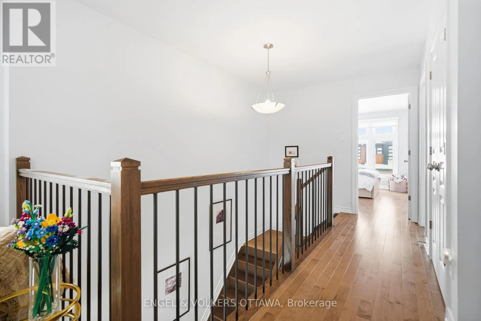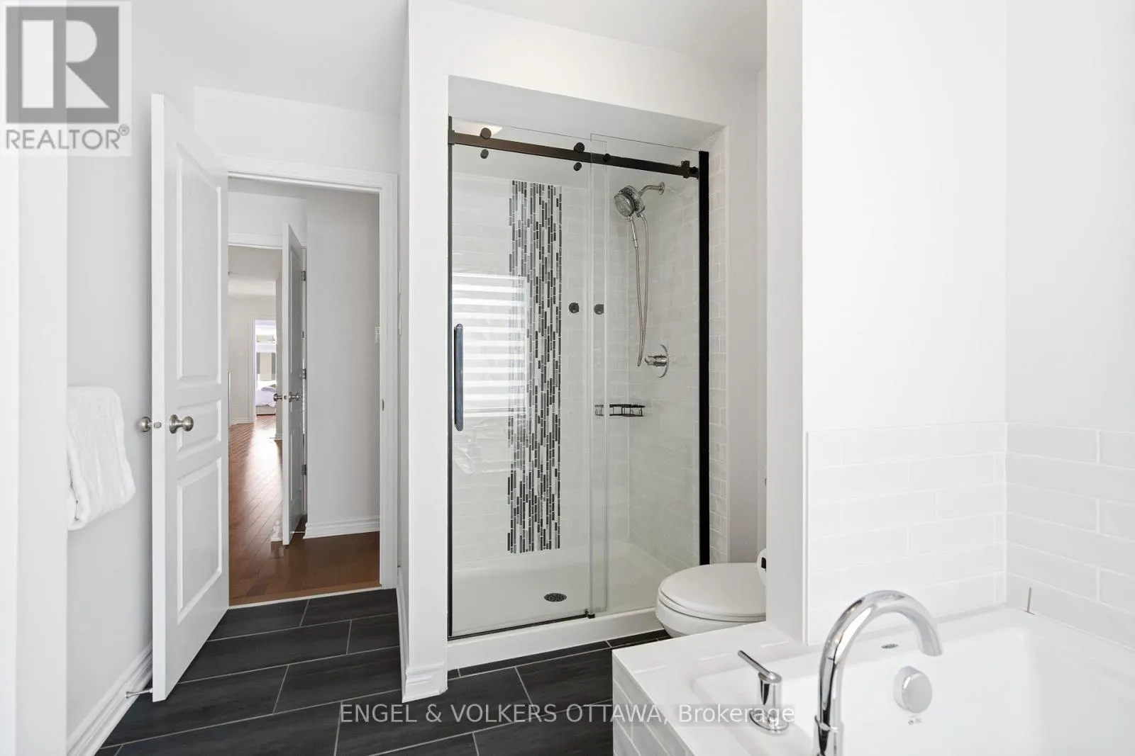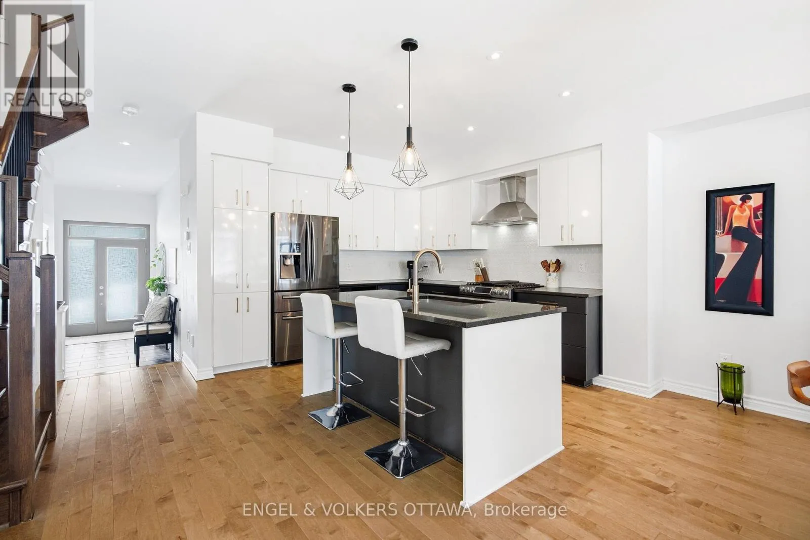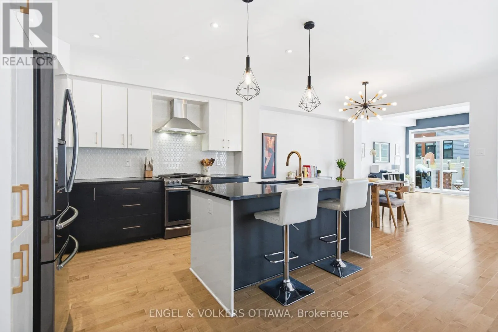 Cross Streets: Terry Fox Drive to Abbott Street East. ** Directions: Terry Fox Drive to Abbott Street East. Right onto Twist Way. Welcome to Richcraft's largest townhome model, featuring hardwood on both the main and second levels, 3 bedrooms plus den upstairs, and a private driveway with interlock for side by side parking. Step inside from the covered porch into a bright, open concept main floor with high ceilings and large windows that fill the space with natural light. The two-toned kitchen features quartz countertops, black stainless-steel appliances, a gas range, pendant lighting, which flows seamlessly into the dining area and living room where a gas fireplace adds warmth and character. A patio door leads to the fully fenced backyard with widened back steps leading to the interlock patio, designed for easy, low maintenance outdoor living. Upstairs, the spacious primary bedroom includes a walk-in closet and a 4-piece ensuite. Two additional bedrooms, a full bathroom, a versatile den, and second floor laundry completes the level. The finished basement extends your living space with a recreation room and additional storage. Ideally located close to parks, schools, shopping, and transit, this home offers a great balance of space, function, and convenience. (id:27476)