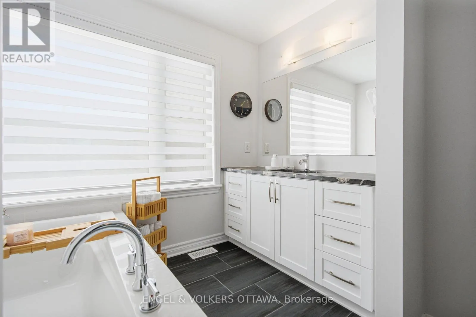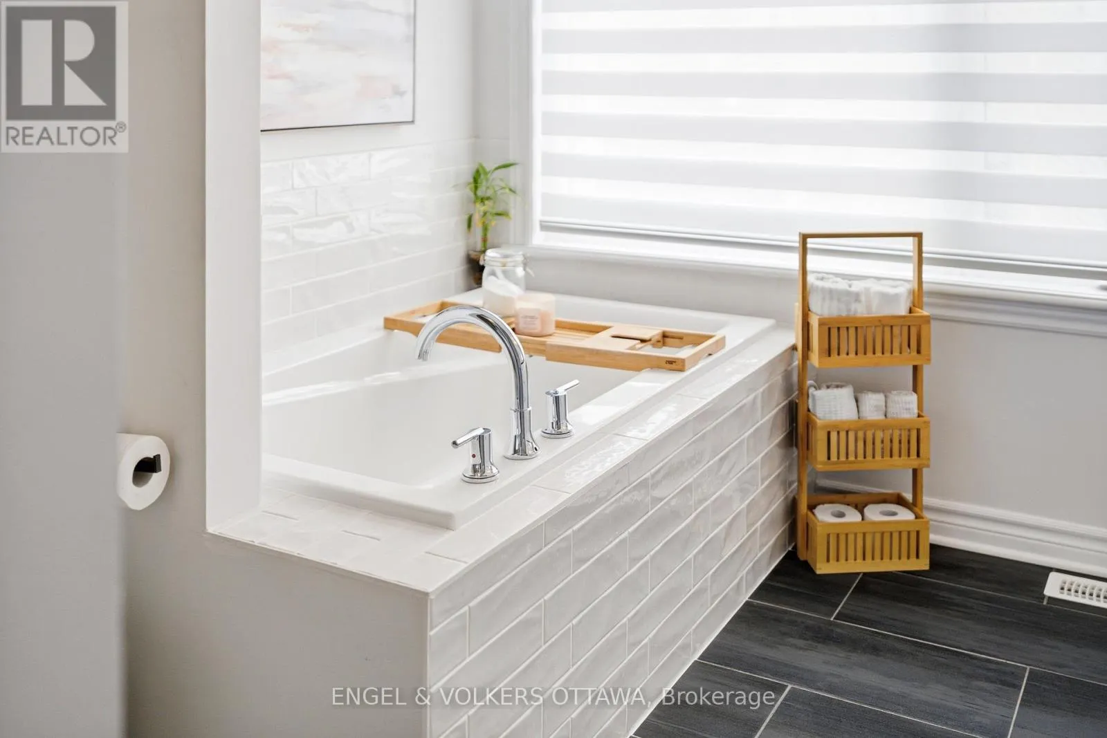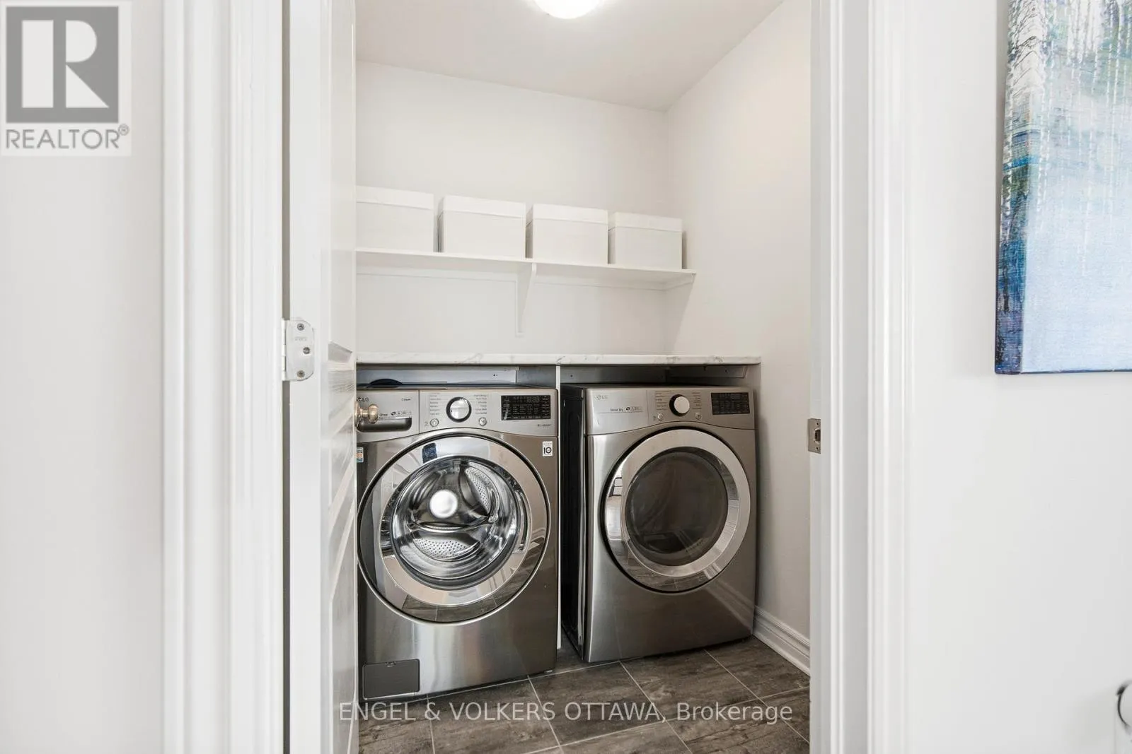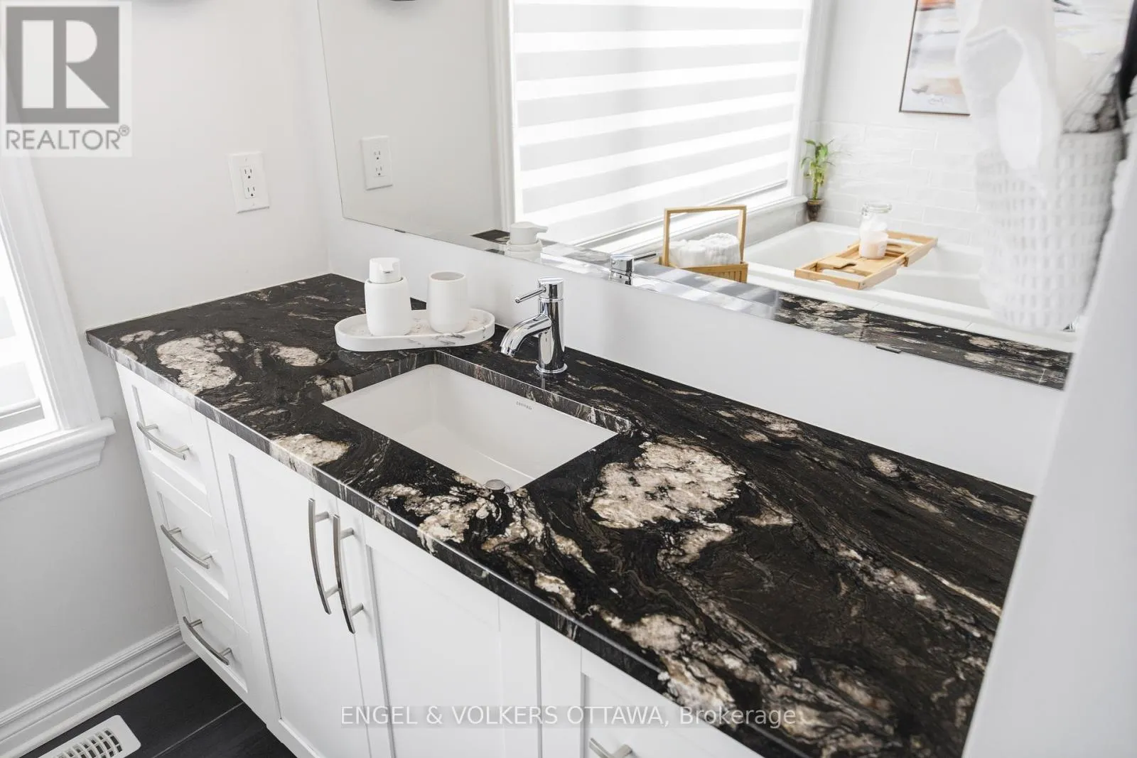 Cross Streets: Terry Fox Drive to Abbott Street East. ** Directions: Terry Fox Drive to Abbott Street East. Right onto Twist Way. Welcome to Richcraft's largest townhome model, featuring hardwood on both the main and second levels, 3 bedrooms plus den upstairs, and a private driveway with interlock for side by side parking. Step inside from the covered porch into a bright, open concept main floor with high ceilings and large windows that fill the space with natural light. The two-toned kitchen features quartz countertops, black stainless-steel appliances, a gas range, pendant lighting, which flows seamlessly into the dining area and living room where a gas fireplace adds warmth and character. A patio door leads to the fully fenced backyard with widened back steps leading to the interlock patio, designed for easy, low maintenance outdoor living. Upstairs, the spacious primary bedroom includes a walk-in closet and a 4-piece ensuite. Two additional bedrooms, a full bathroom, a versatile den, and second floor laundry completes the level. The finished basement extends your living space with a recreation room and additional storage. Ideally located close to parks, schools, shopping, and transit, this home offers a great balance of space, function, and convenience. (id:27476)