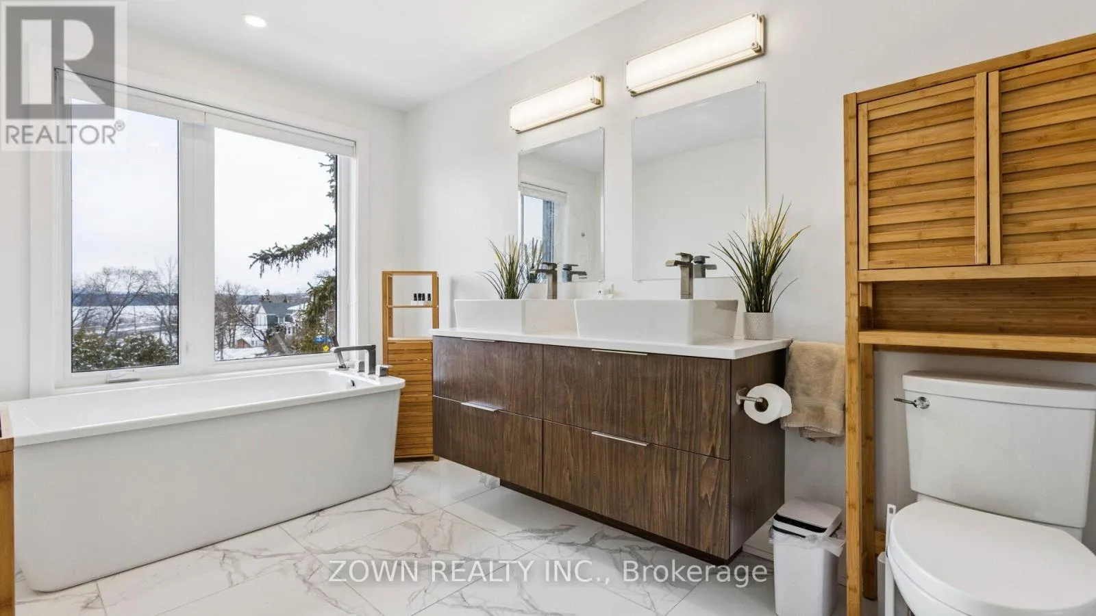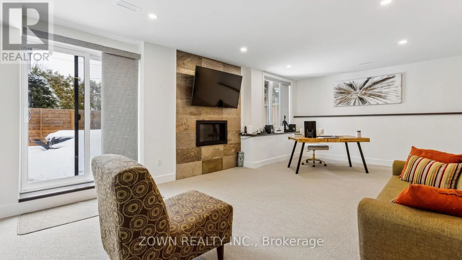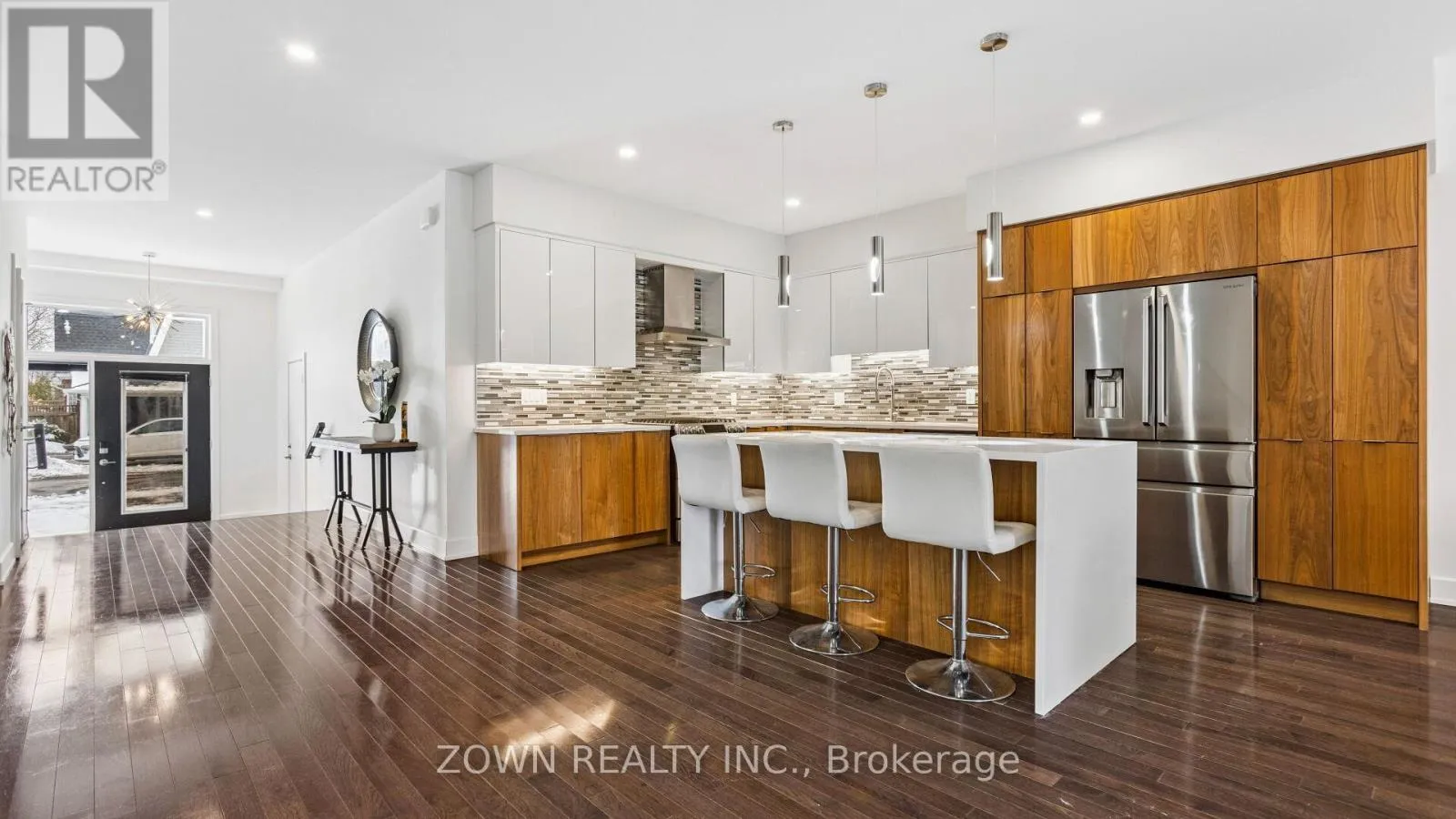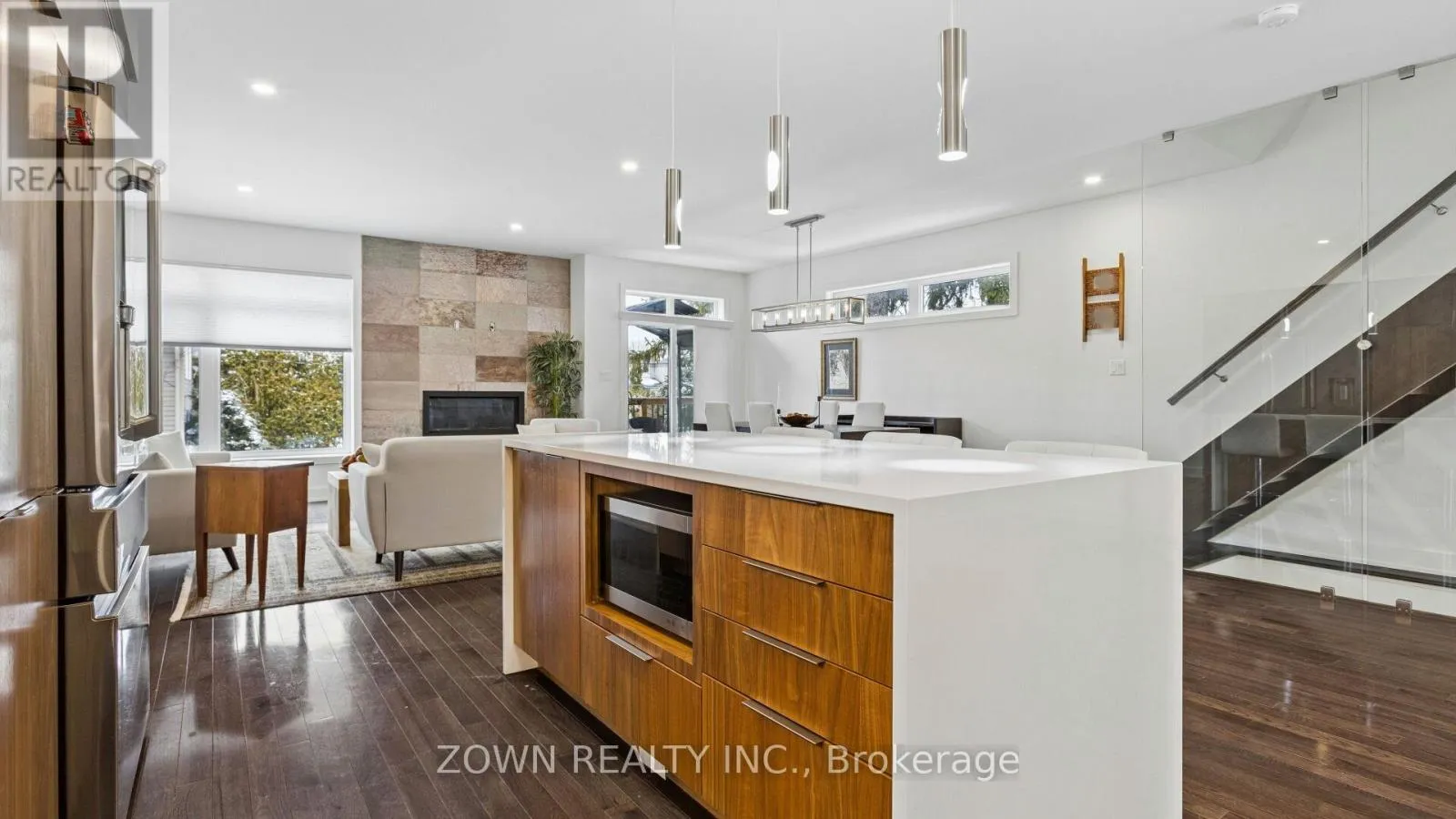 Woodroffe It's a corner lot in a quiet, mature area, with access to the Parkway, walk trails etc at 1 minute walking distance. The new line of the subway will be ready soon and it's also at 1 minute distance on Richmond road. This two story home features an open concept space on the first floor, with a large entrance, guest bathroom, kitchen, living room and dining room with fireplace and a small terrace with a staircase down to the side-yard. The second floor has an oversized master bedroom with an oversized walk-in closet and a huge ensuite bathroom with a large shower and separate bathtub, and heated floors. Two other rooms of great size and a main bathroom, also very comfortable with two sinks, shower and separate bathtub. The laundry space is also on the second floor. Fully finished basement, with a 4th room, family room with fireplace, and a full bathroom with heated floors. There is also a good storage room. Separate exit to the backyard. In the backyard there is a swim spa with a beautiful deck all around in composite wood. It also features a nice area with pavers, perfect to set up an outdoor kitchen and/or BBQ. (id:27476)
