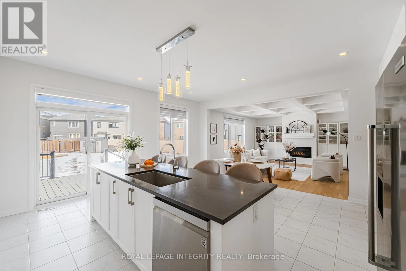 Campeau Drive to Winterest Road to Parabolica Way Welcome to this beautifully upgraded home in the highly sought-after Kanata Lakes Arcadia community, offering over 4,000 sq.ft. of living space with a functional and well-designed layout. Featuring 5 bedrooms and 5 bathrooms, this home is ideal for growing families.The main floor features a dedicated den with French doors, a formal dining room connected to the kitchen, and a bright open-concept living area overlooking the backyard. The kitchen is thoughtfully upgraded with high-end appliances and modern finishes, ideal for both everyday living and entertaining.Just a few steps up, the impressive sunken family room boasts a stunning 12-ft ceiling, large windows, and access to a private balcony, creating a bright and inviting space filled with natural light.Upstairs offers 4 spacious bedrooms and 3 full bathrooms, including 2 ensuites and a convenient Jack & Jill layout, along with a second-floor laundry room. The entire home features 9-ft ceilings on the second level and a carpet-free interior throughout.The fully finished basement adds an additional bedroom, bathroom, walk-in closet, and a large recreation area, perfect for extended family or guests.It also features an electric fireplace, oversized windows that bring in abundant natural light, and a separate washer and dryer set, offering excellent flexibility and the potential to function as an independent in-law or secondary living suite. Situated on a rare oversized pie-shaped lot, this home offers a fully fenced backyard with southwest exposure, providing exceptional natural light throughout the day. The outdoor space features a two-tier deck, plus a separate deck with gazebo, creating multiple areas for outdoor entertaining and relaxation.Located in a top school zone, close to parks, shopping, and Kanata Tech Park. (id:27476)